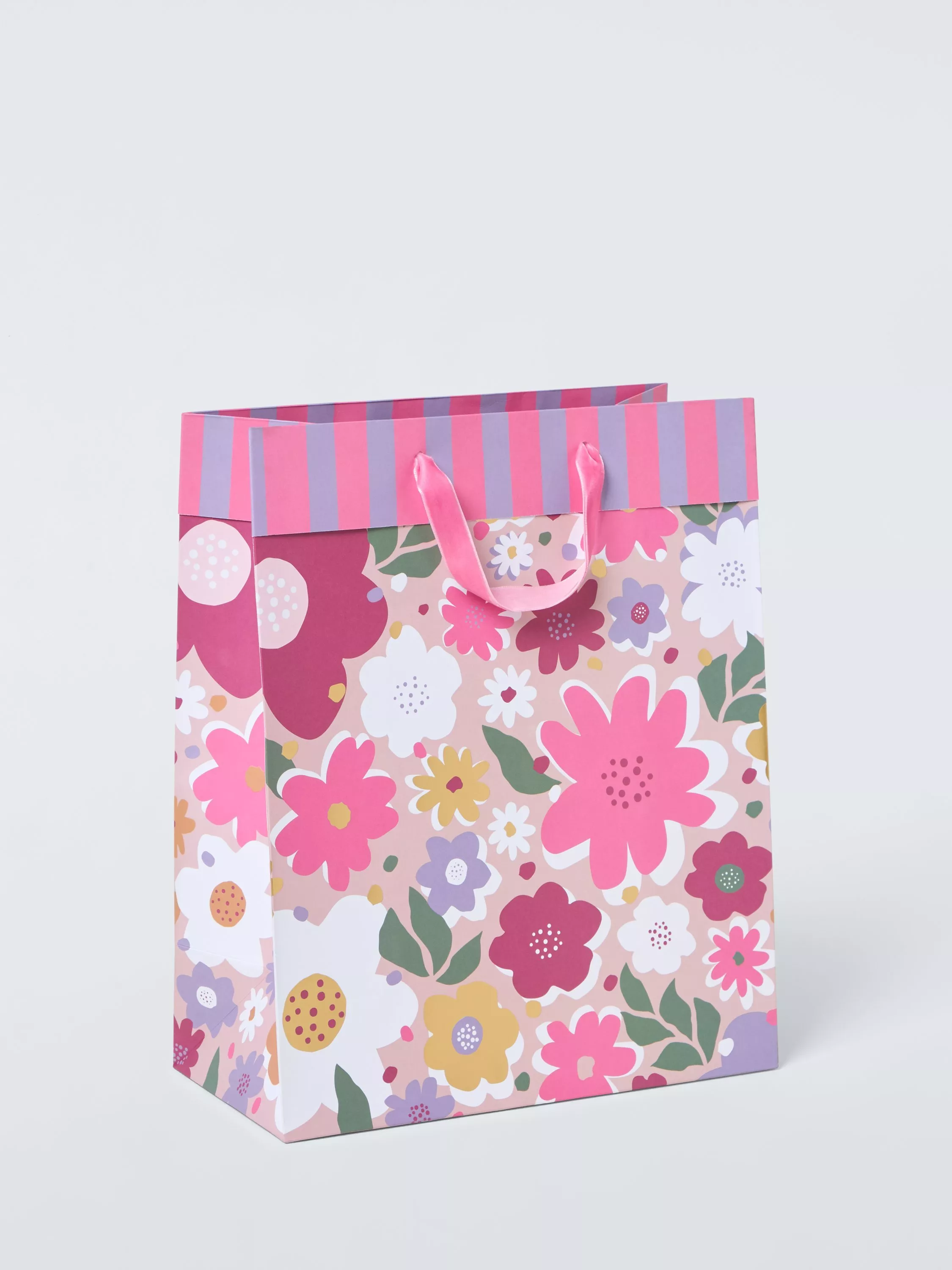 Floral gift bag with gold foil accents, gift tag and cut out handles.