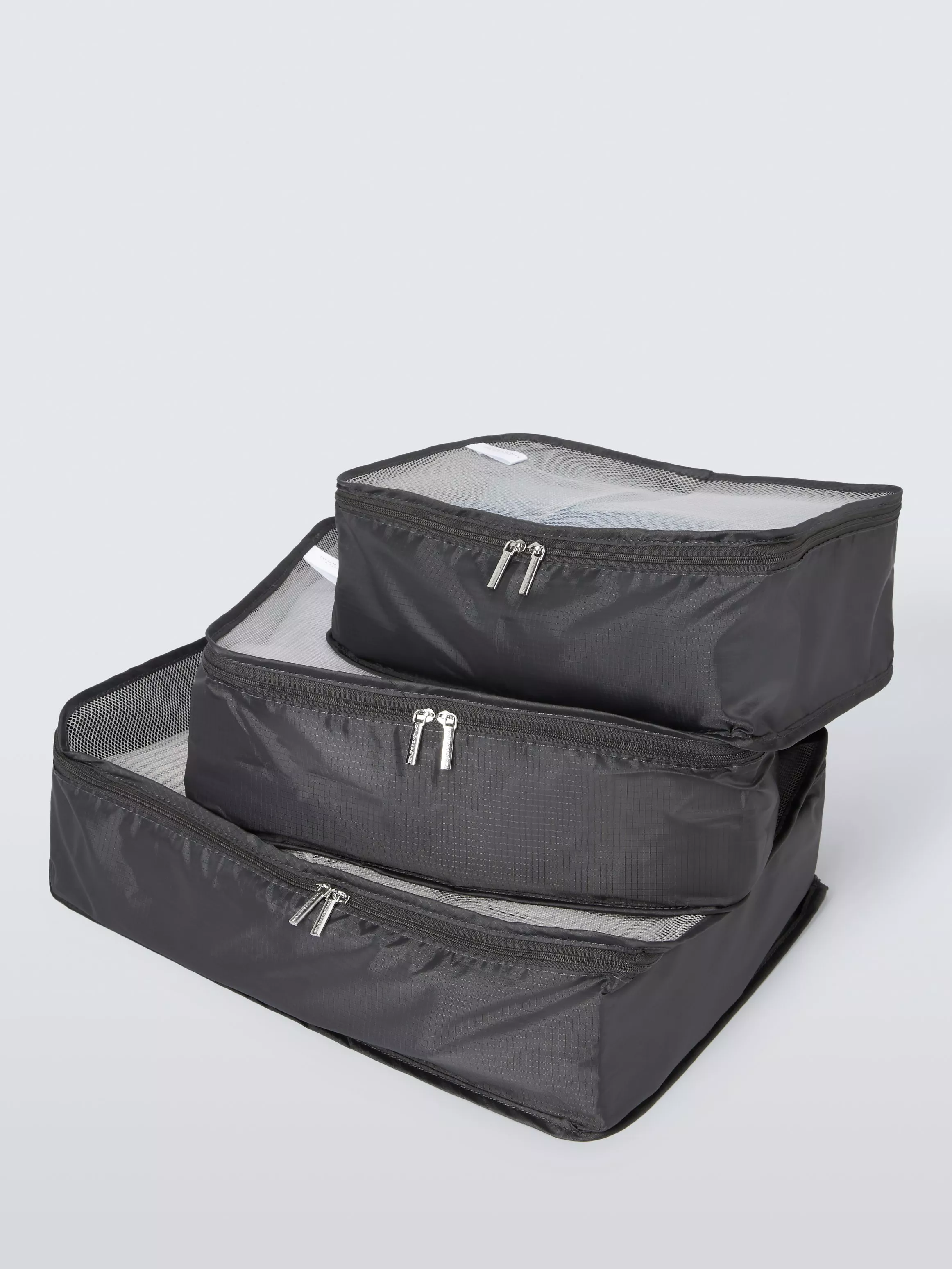 Lightweight and designed with carry handles, these three suitcase packing cubes are foldable and take up very little storage space. Made with smooth zippers and window mesh for a quick glance at what's inside.