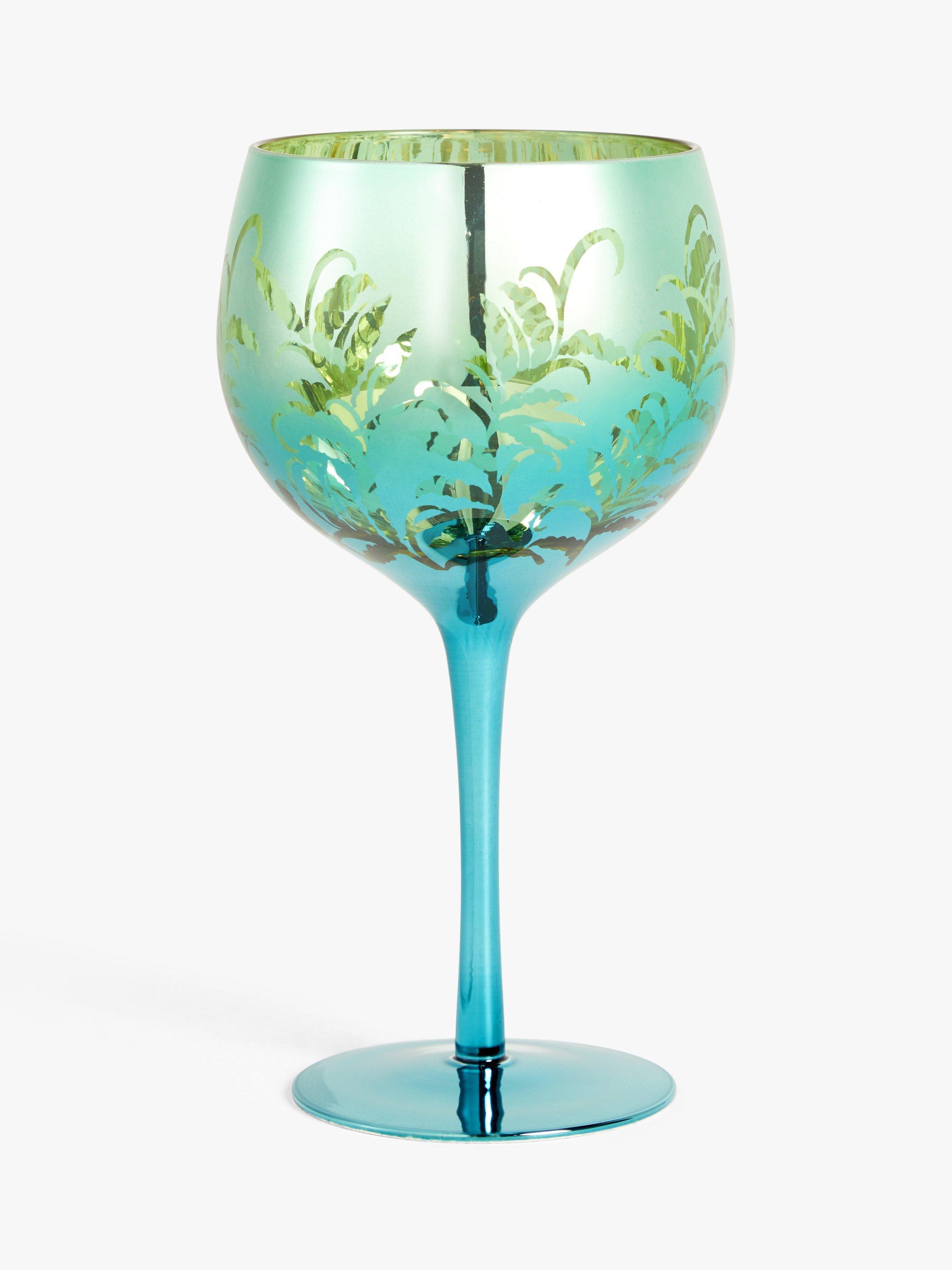 John LewisForest Leaf Pattern Metallic Gin Glass, 700ml, Green
