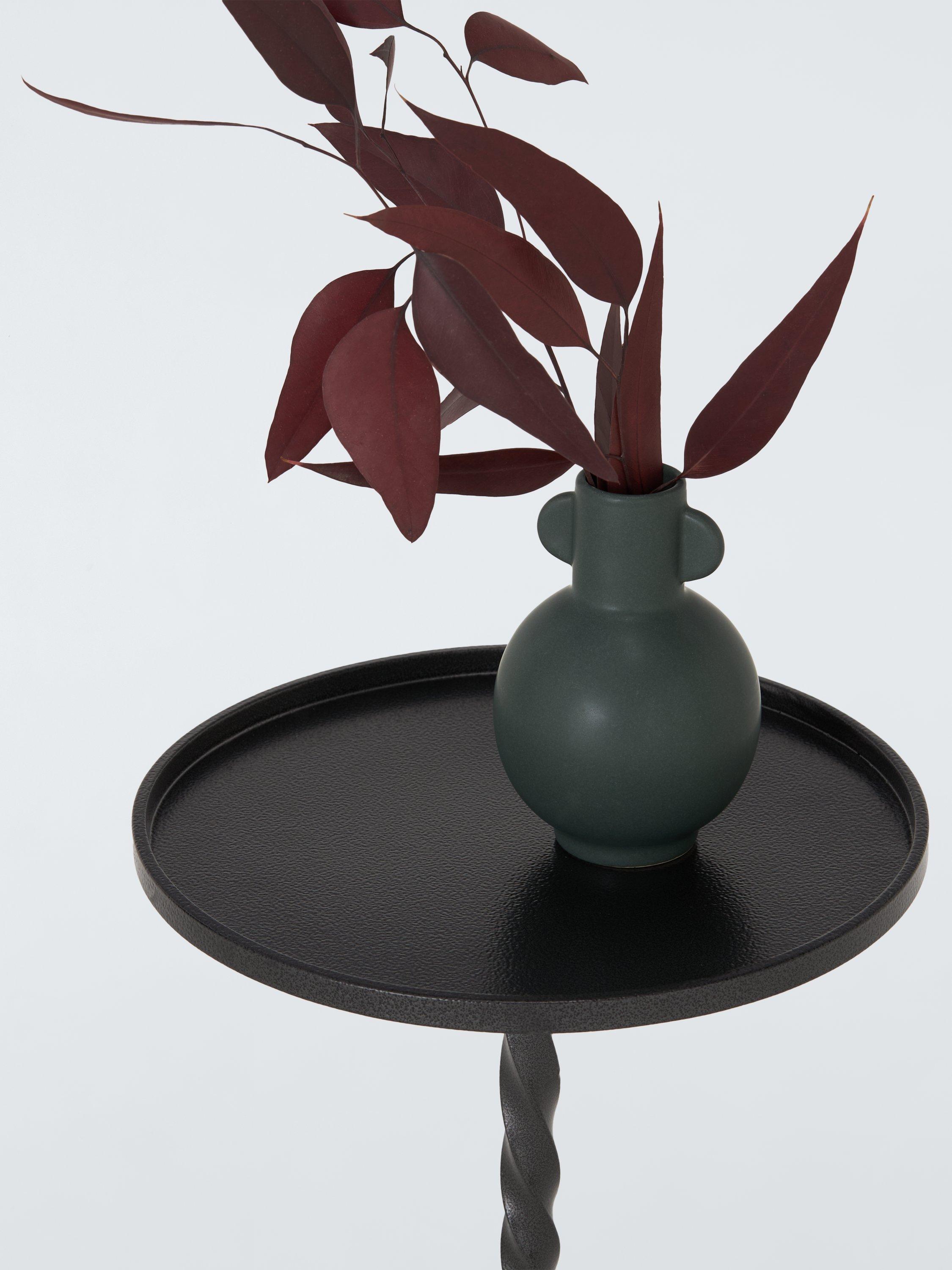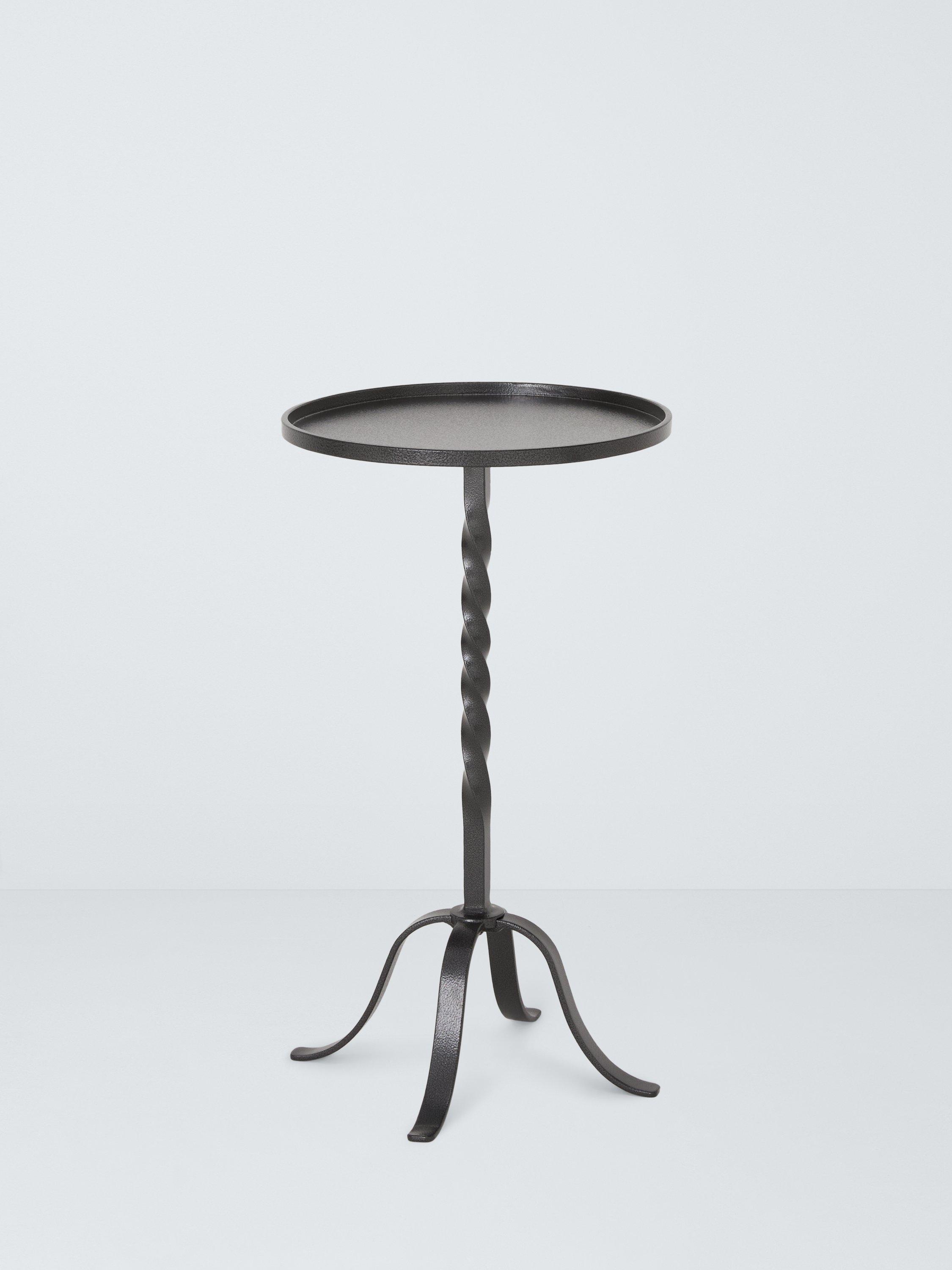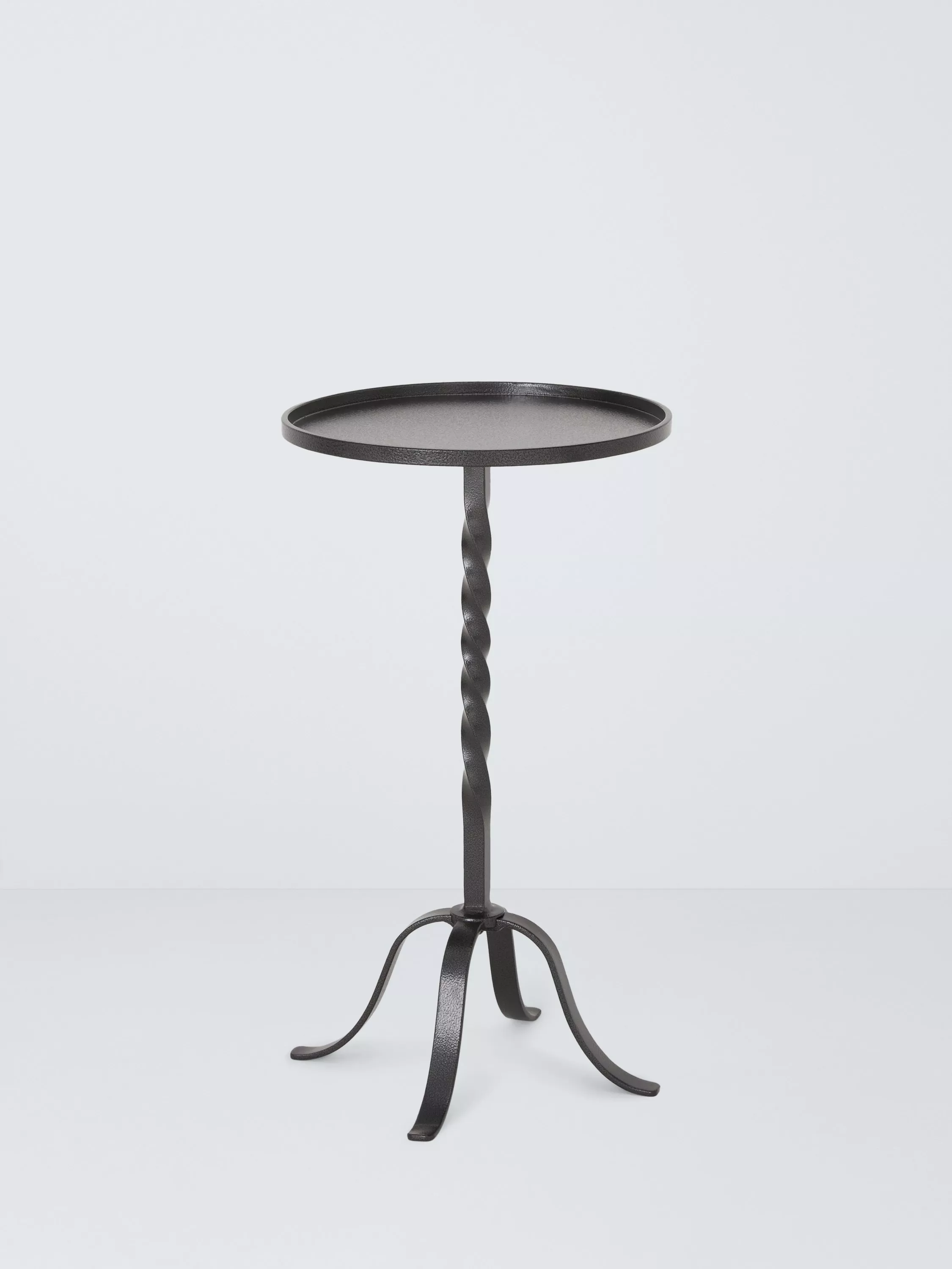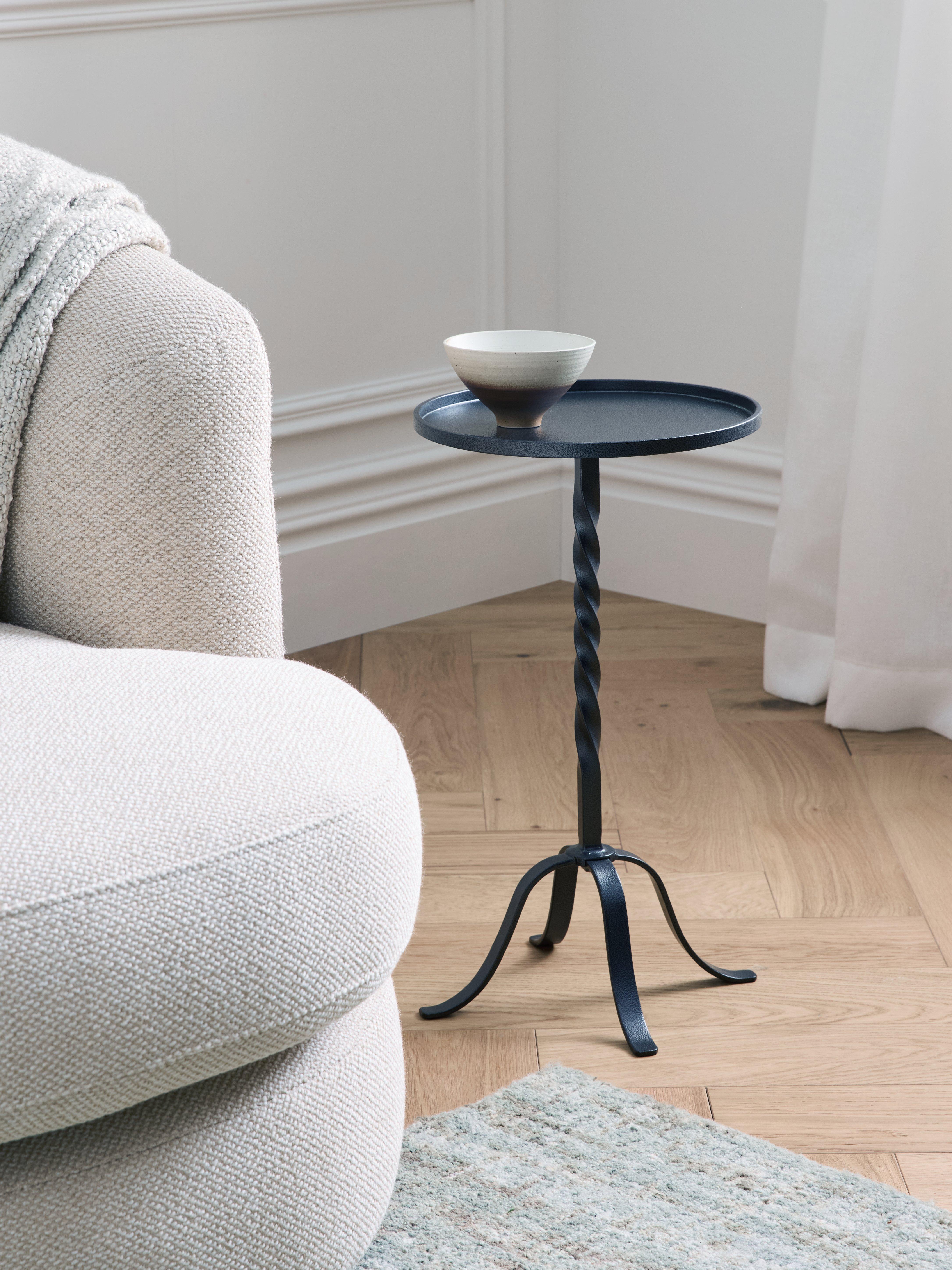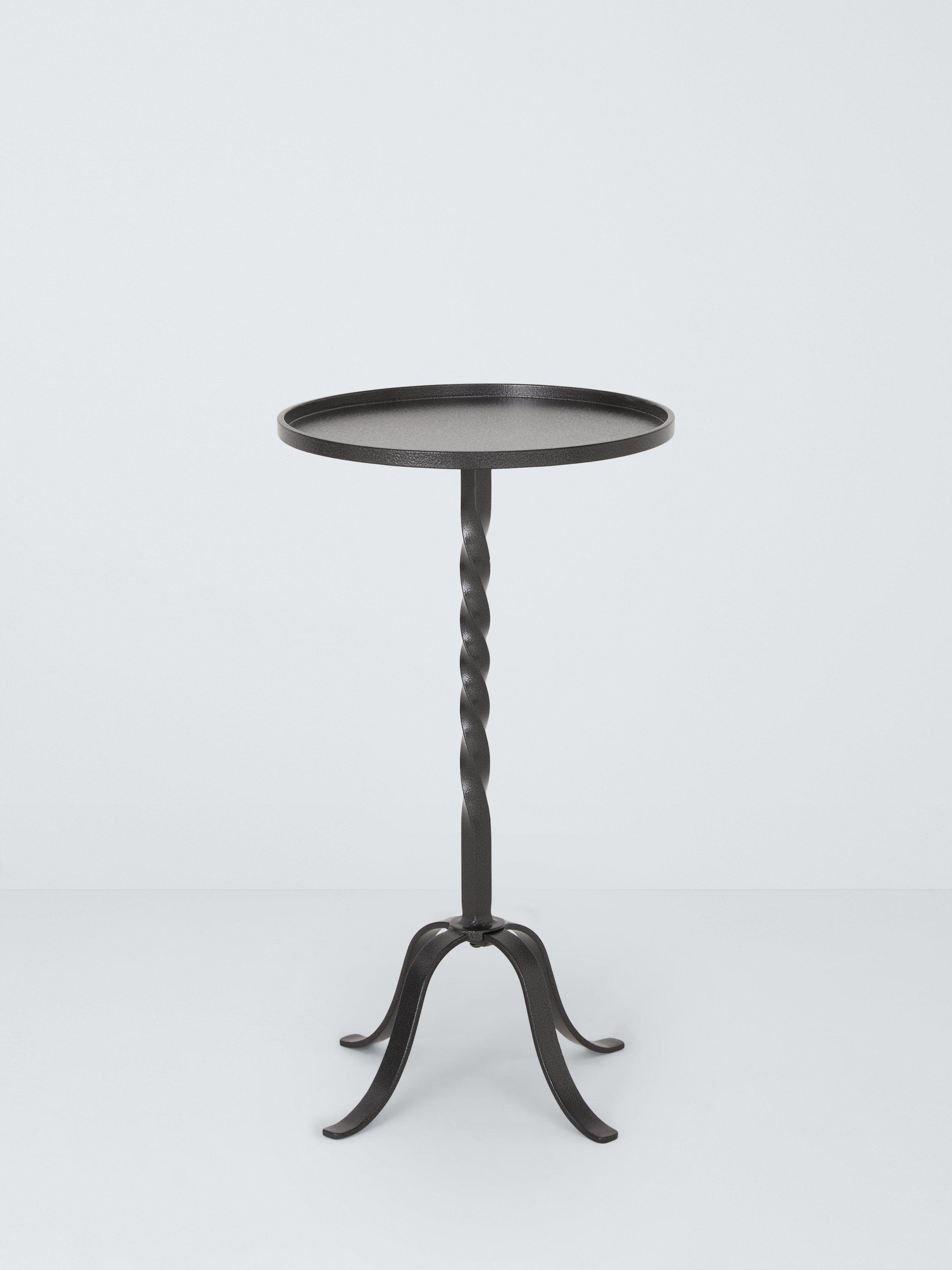Our Forge range blends timeless design and expert craftsmanship. We've built this side table from robust powder-coated steel with a twisted frame and shapely round legs. With a textured finish that references classic hammered and hand-forged ironmongery, it's the perfect size for your reading nook, and styled with a table lamp.