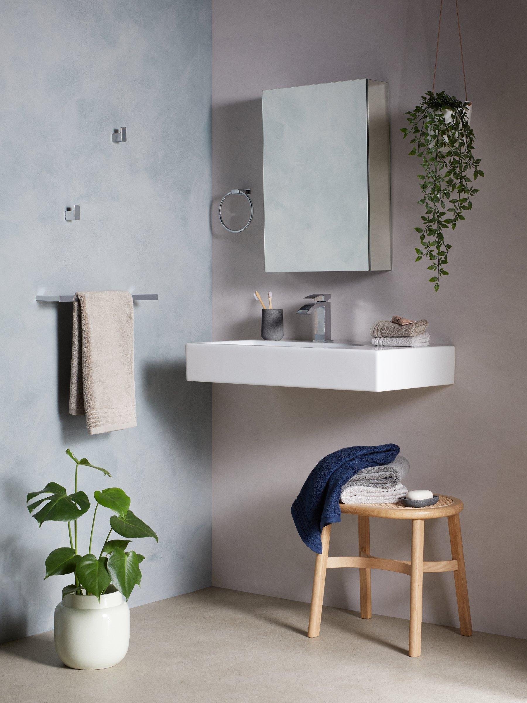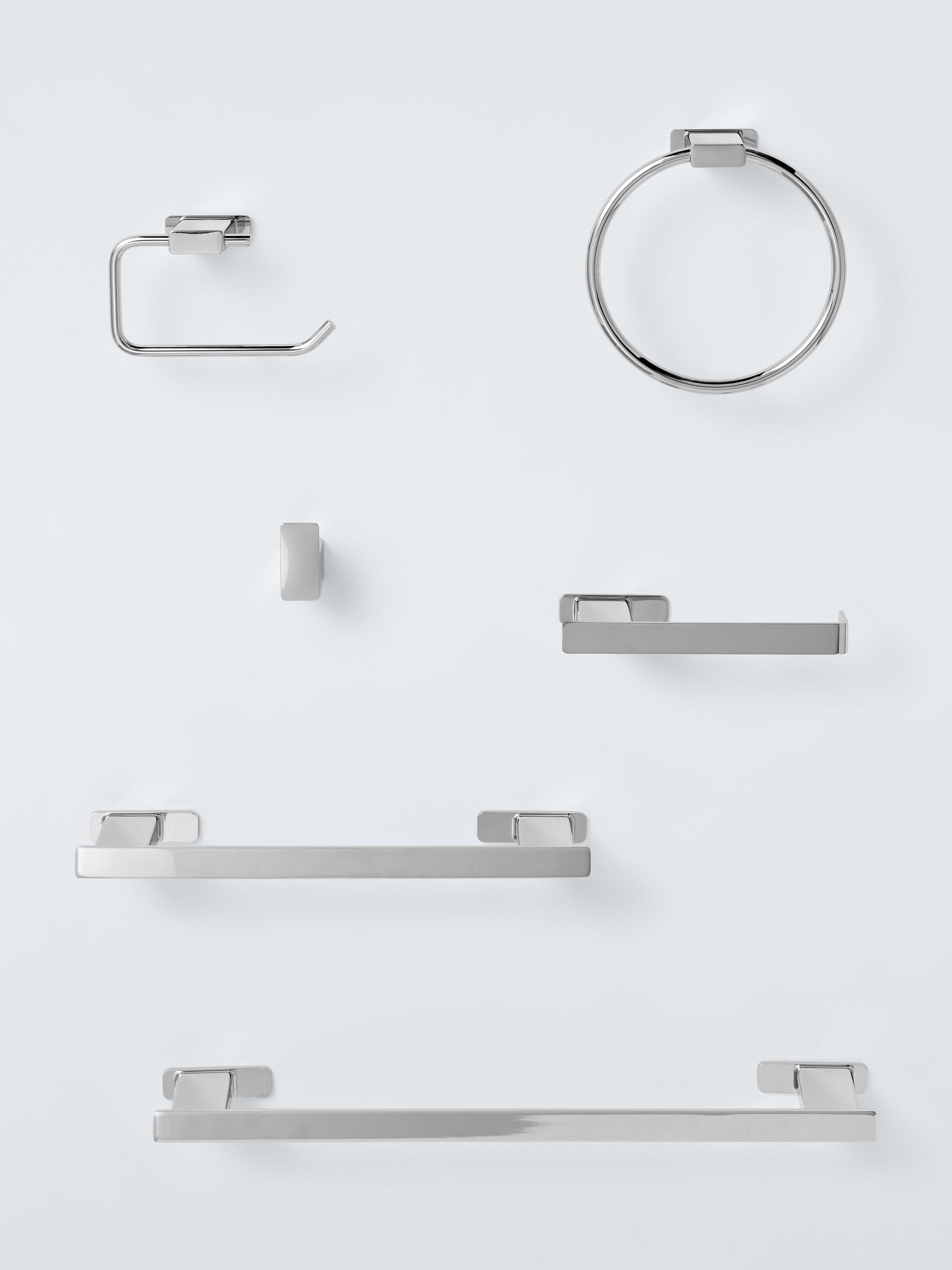A single robe hook made from plastic but with a painted finish that gives the illusion of polished steel.