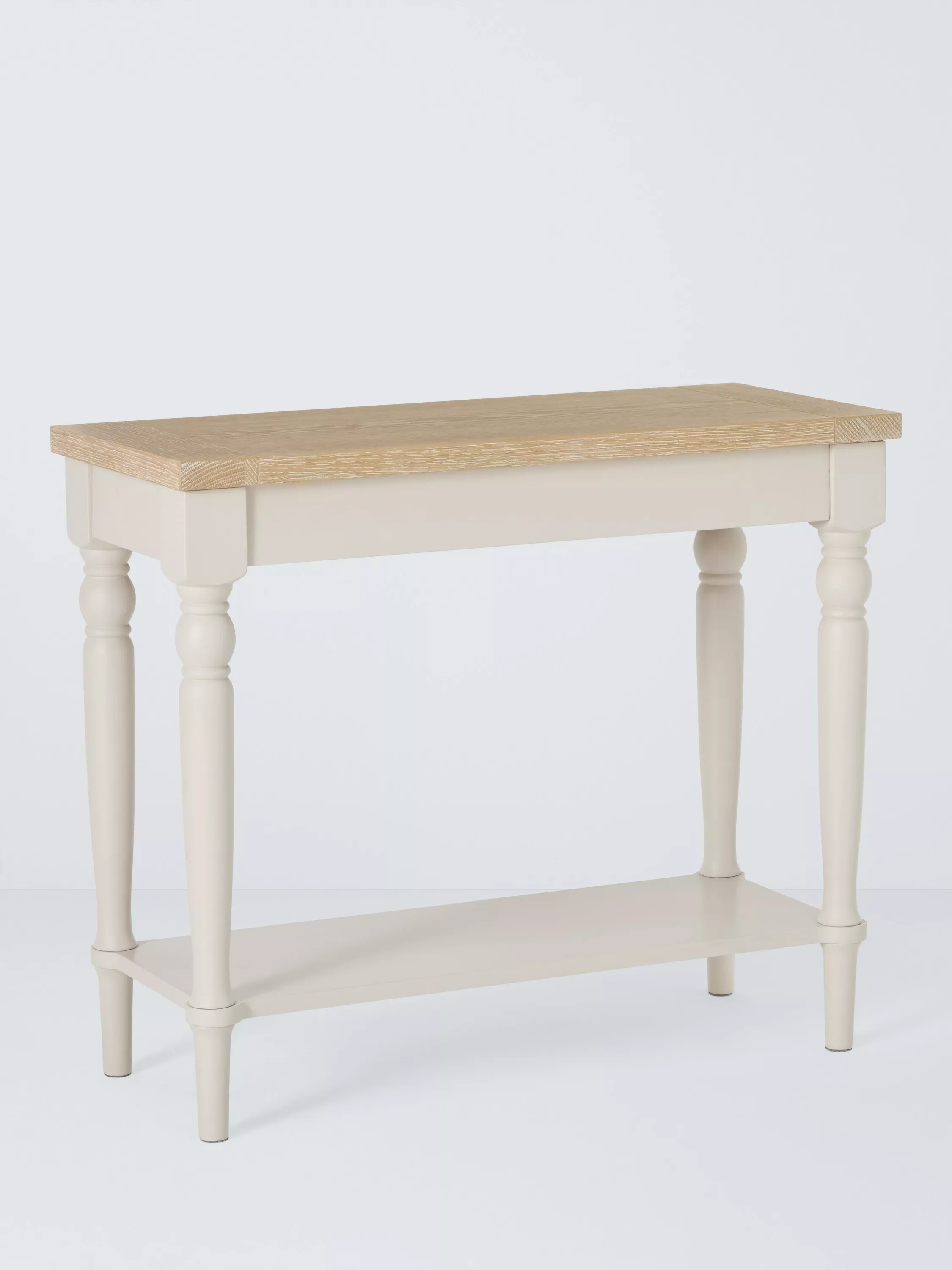 The hardwearing paint finish is beautifully complemented by aged brass effect handles and barrel hinges and coordinates well with other soft tones, as well as natural materials such as wicker and linen.