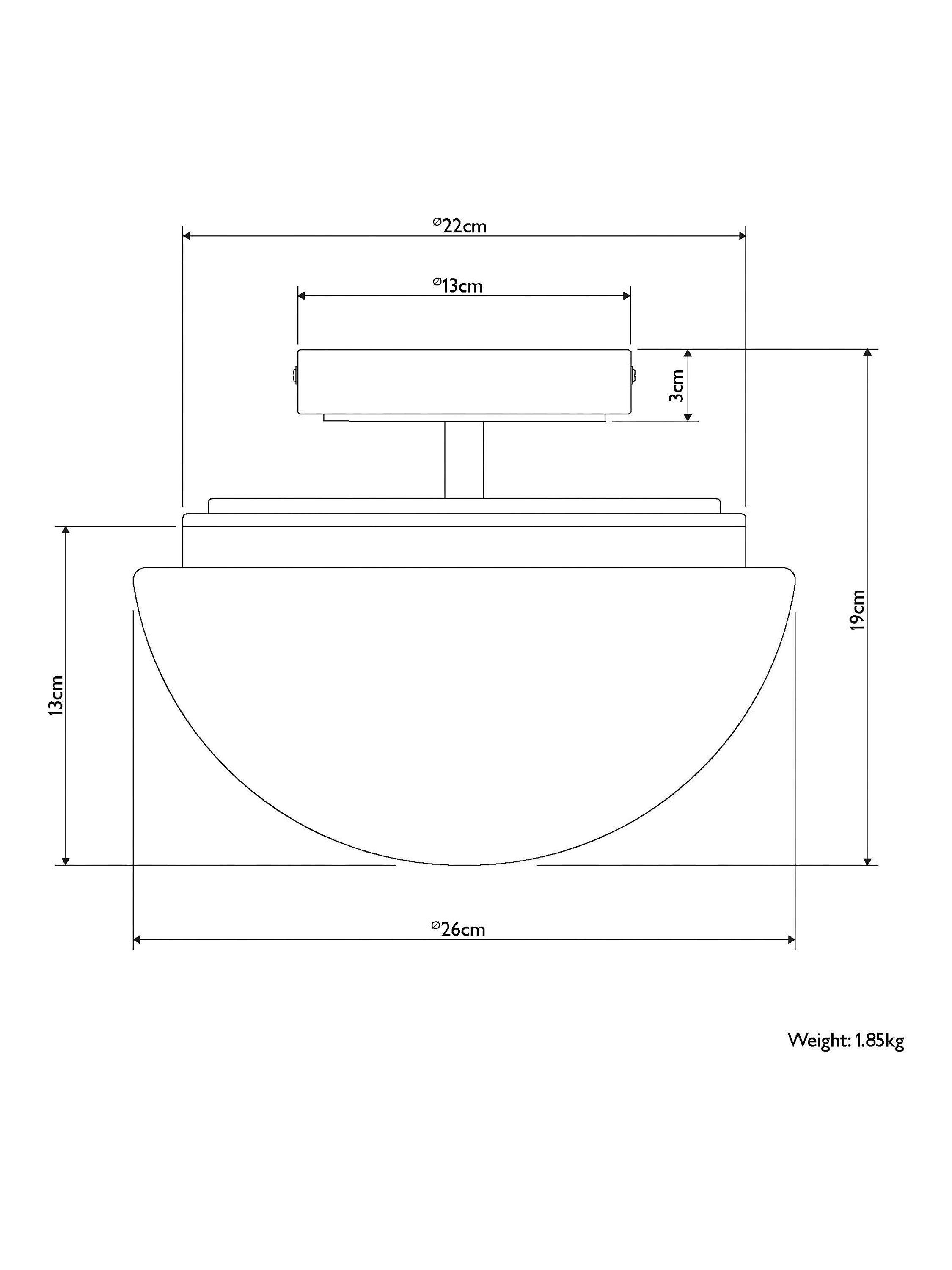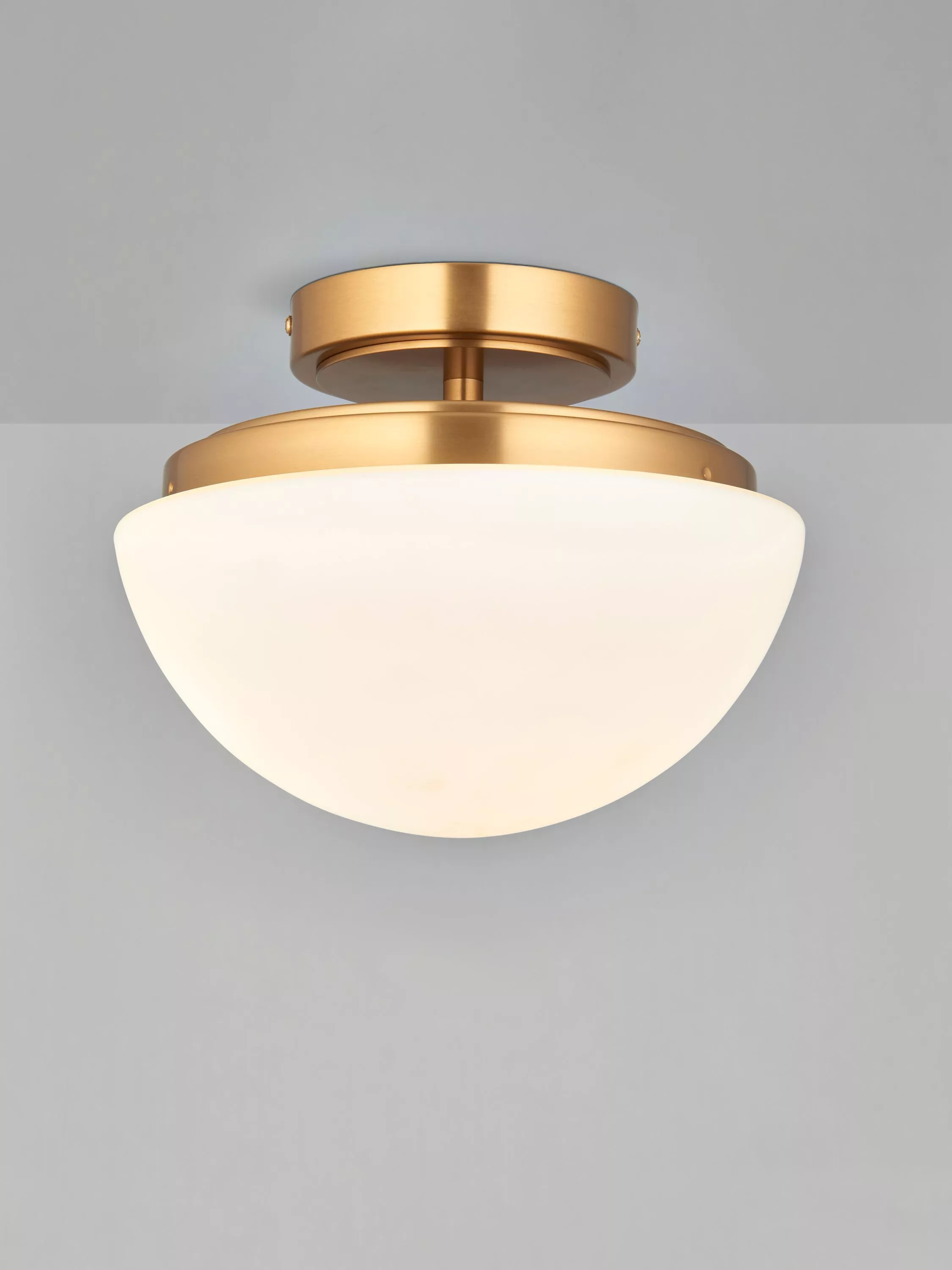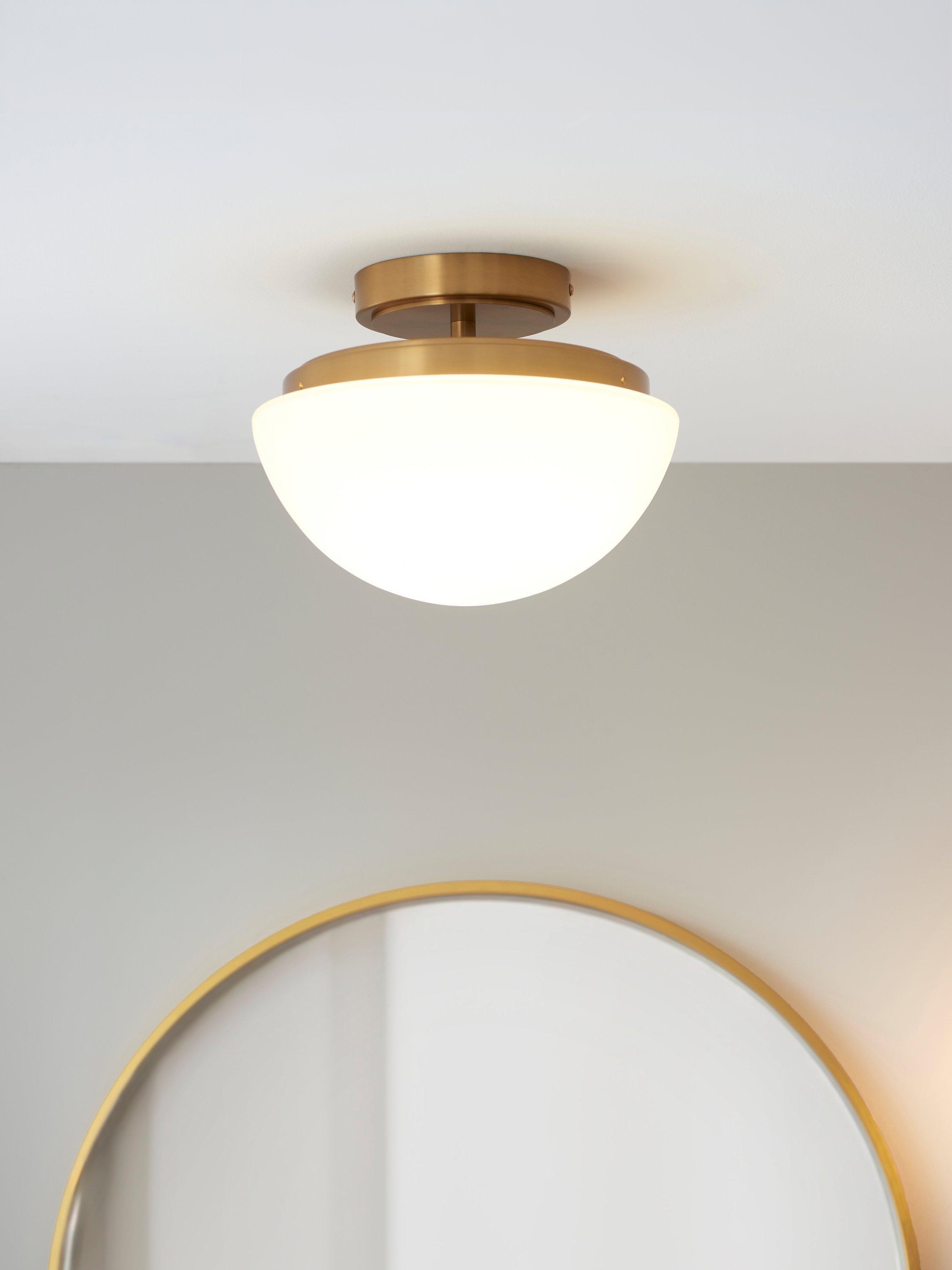 John LewisFredriksberg Opal Glass Shade Semi Flush Bathroom Ceiling Light, Brass