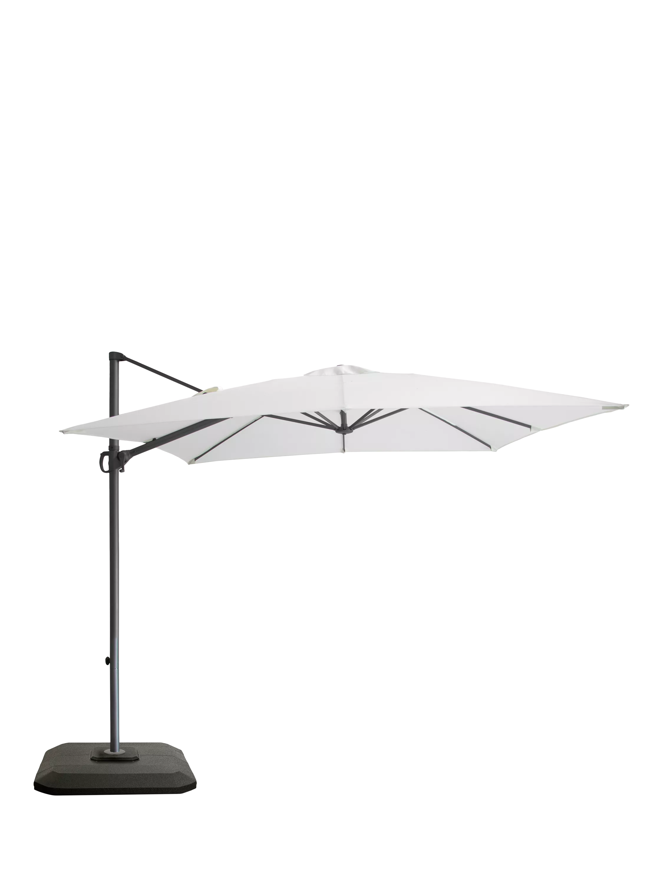 Operated by an easy wind-up mechanism, this freestanding garden parasol has a durable aluminium frame and a shower-resistant canopy offering UV50+ sun protection.