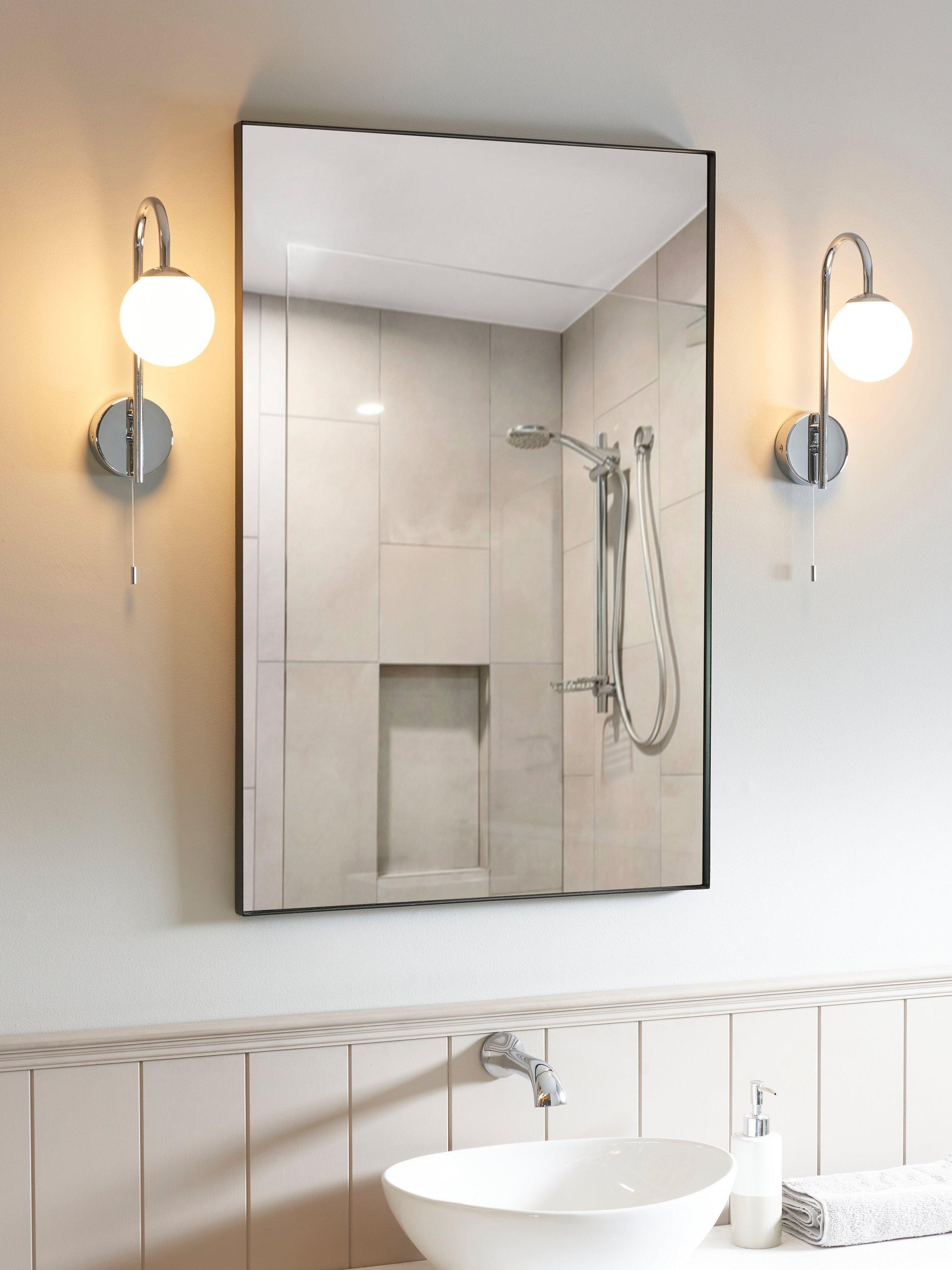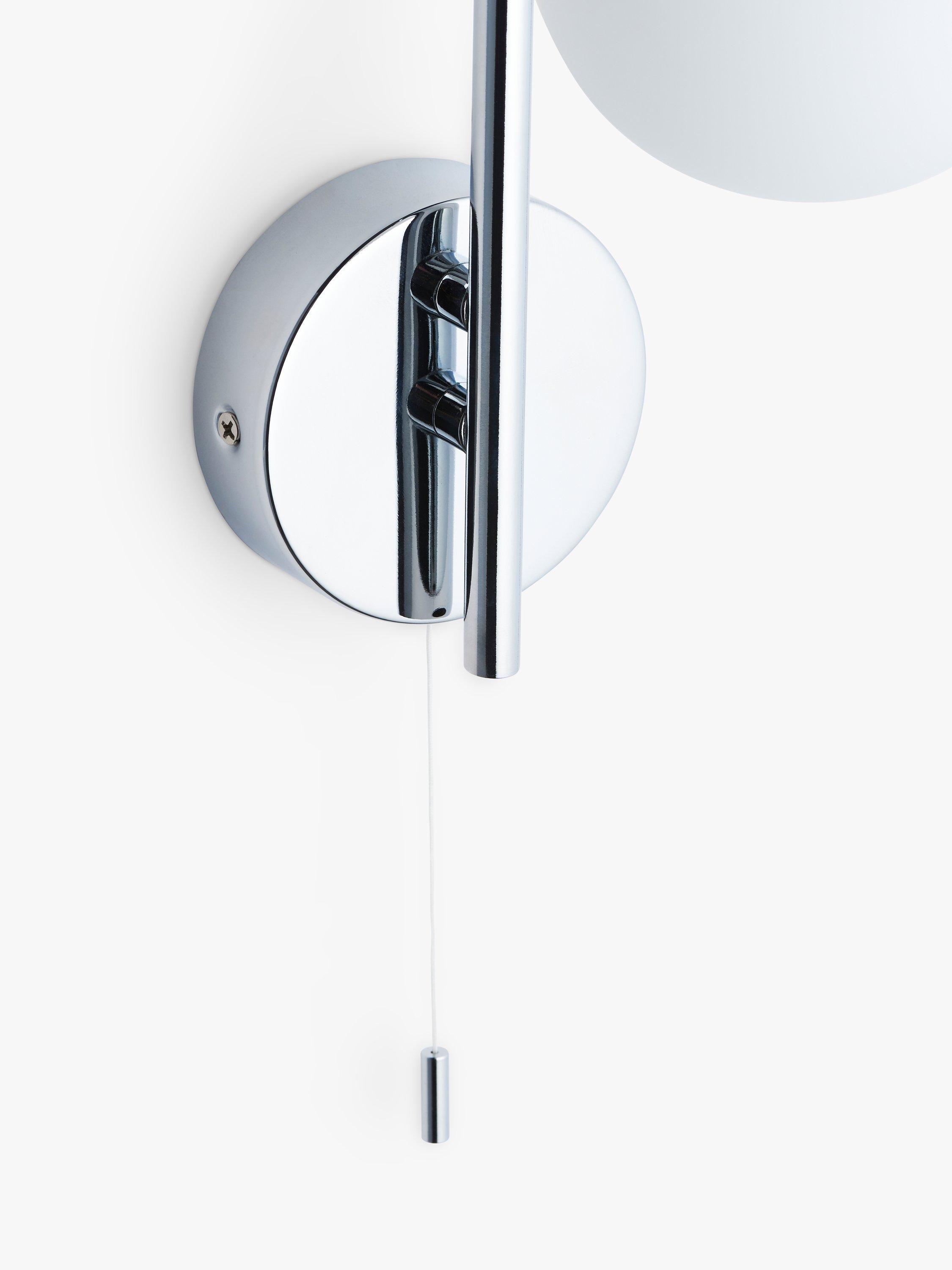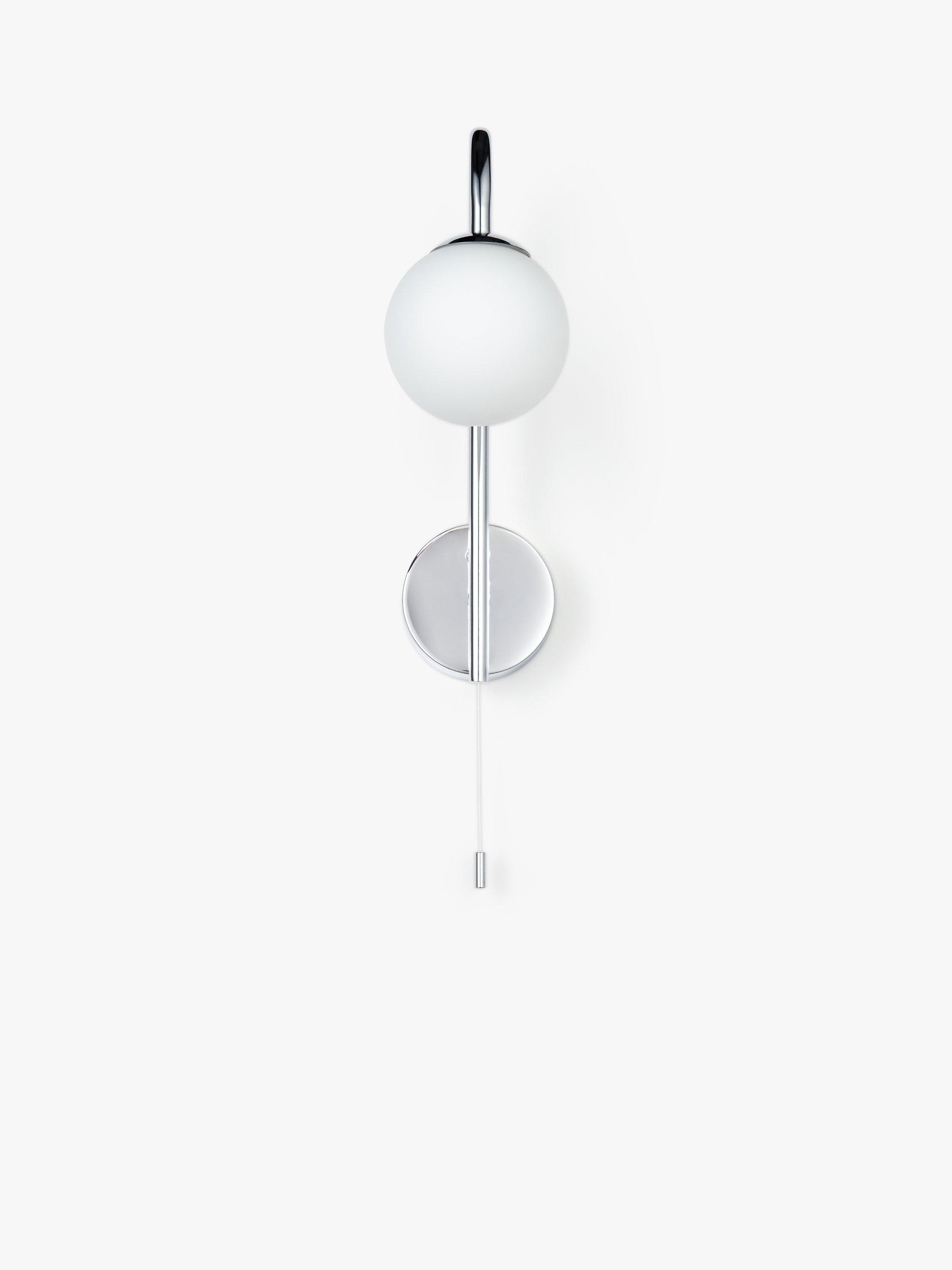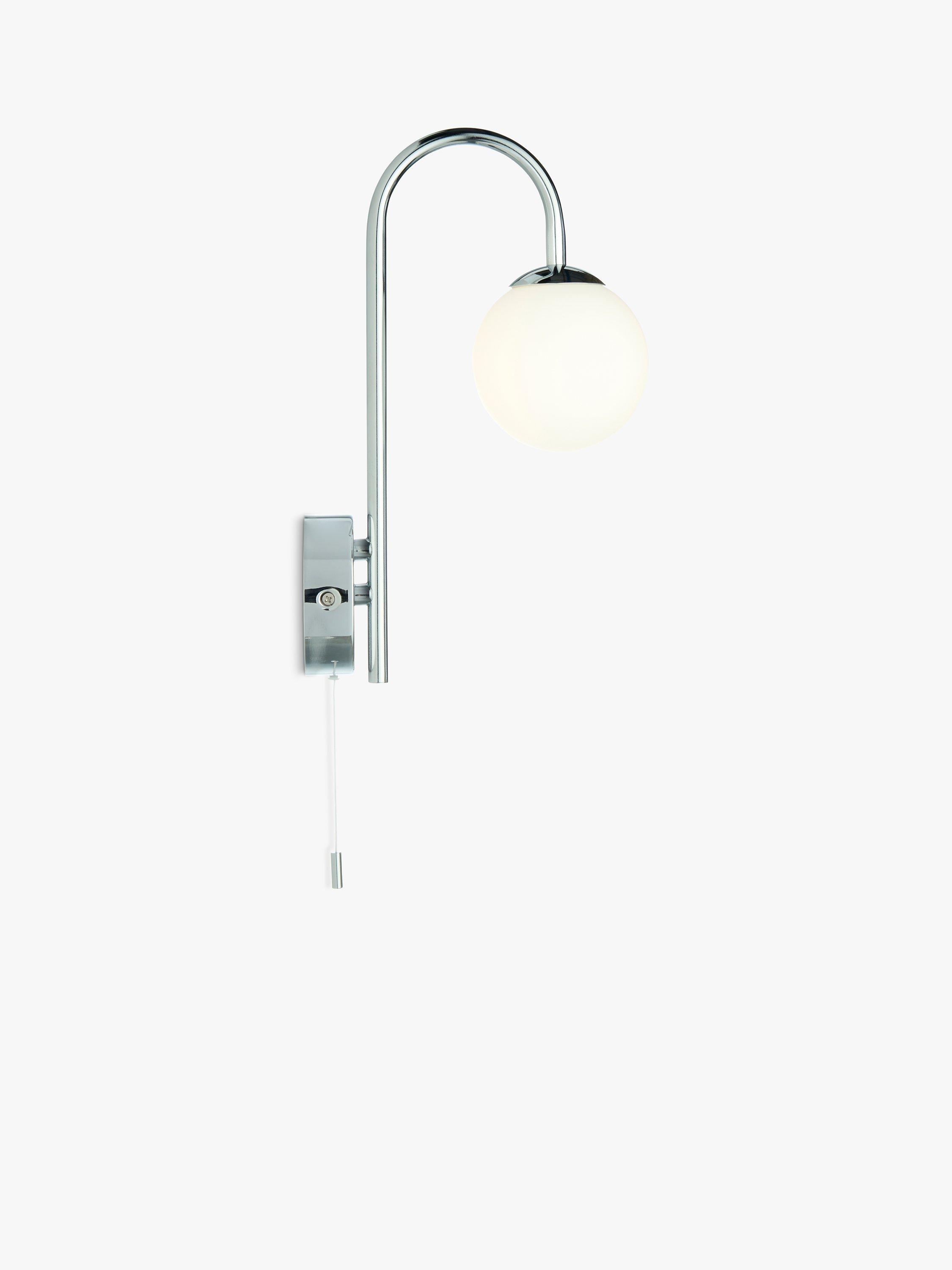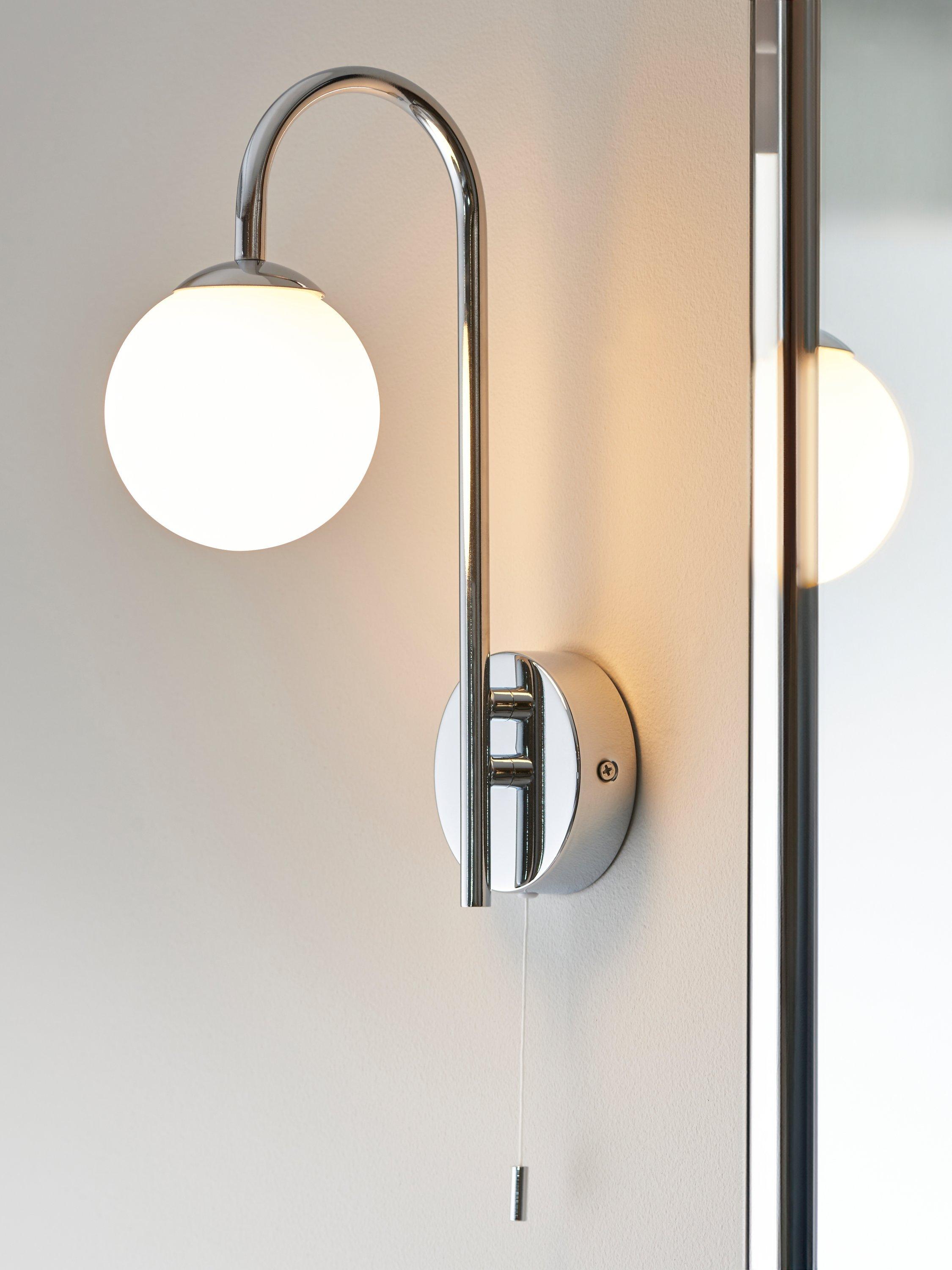 Our Freya wall light features a metallic wall fitting and an elegant swan neck with a globe light underneath. Turns on and off with a pull cord and the light is rated IP44, making it splashproof and suitable for some bathroom areas. Great as a pair either side of a bathroom mirror or as a standalone fitting.