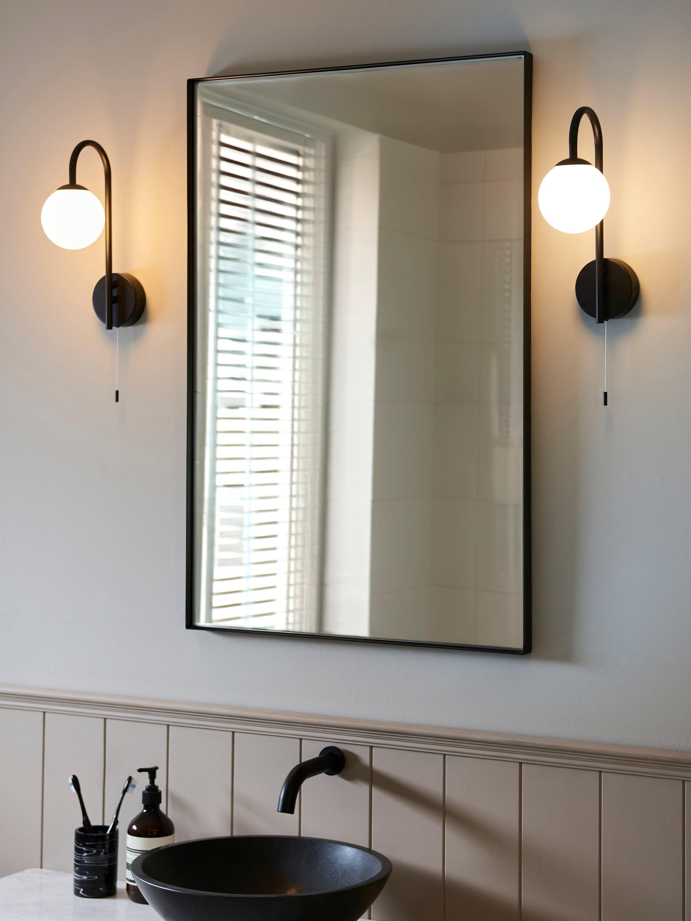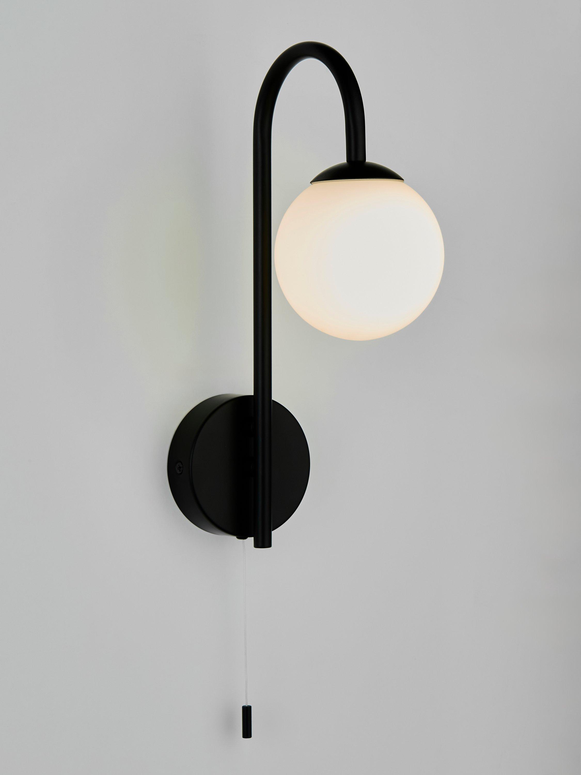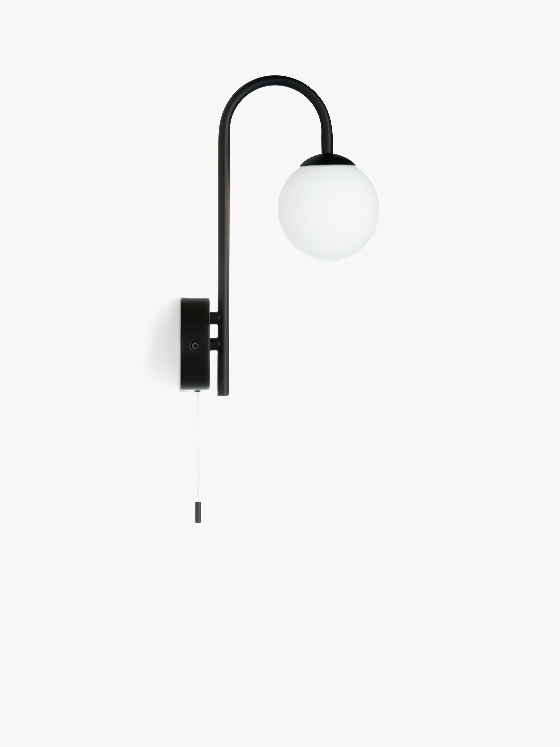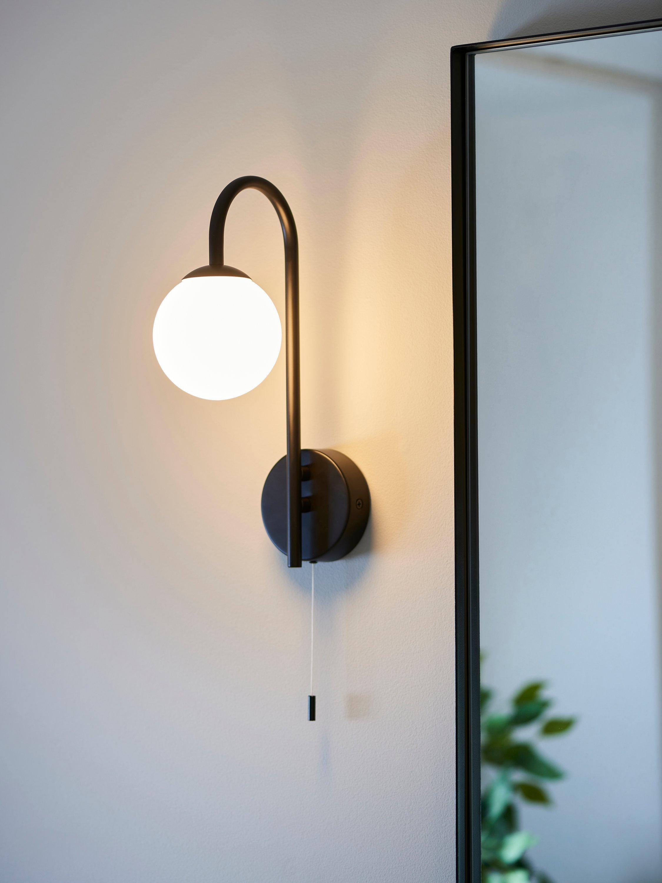 Our Freya wall light features a metallic wall fitting and an elegant swan neck with a globe light underneath. Turns on and off with a pull cord and the light is rated IP44, making it splashproof and suitable for some bathroom areas. Great as a pair either side of a bathroom mirror or as a standalone fitting.