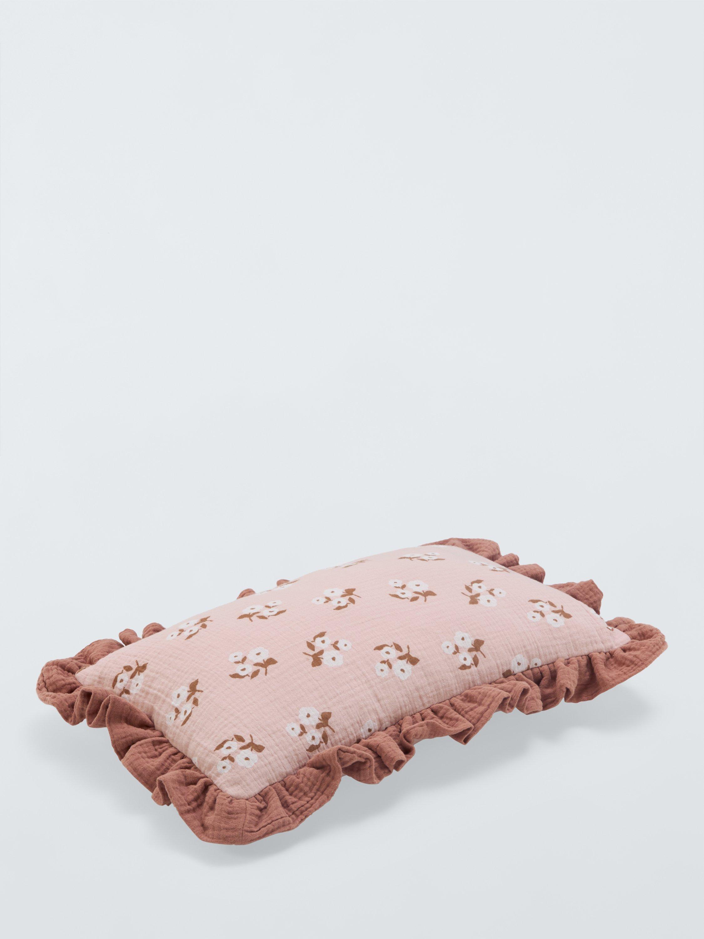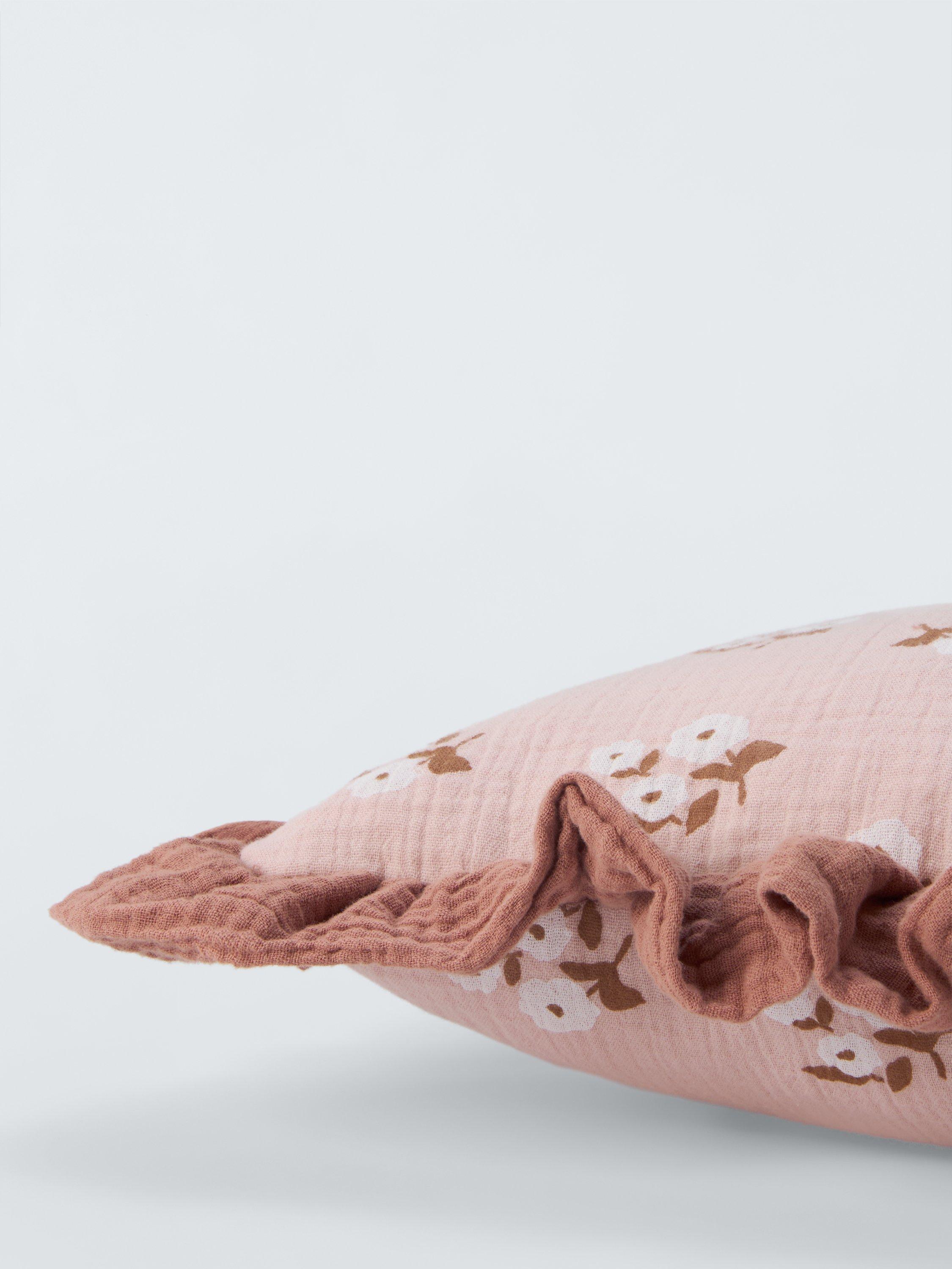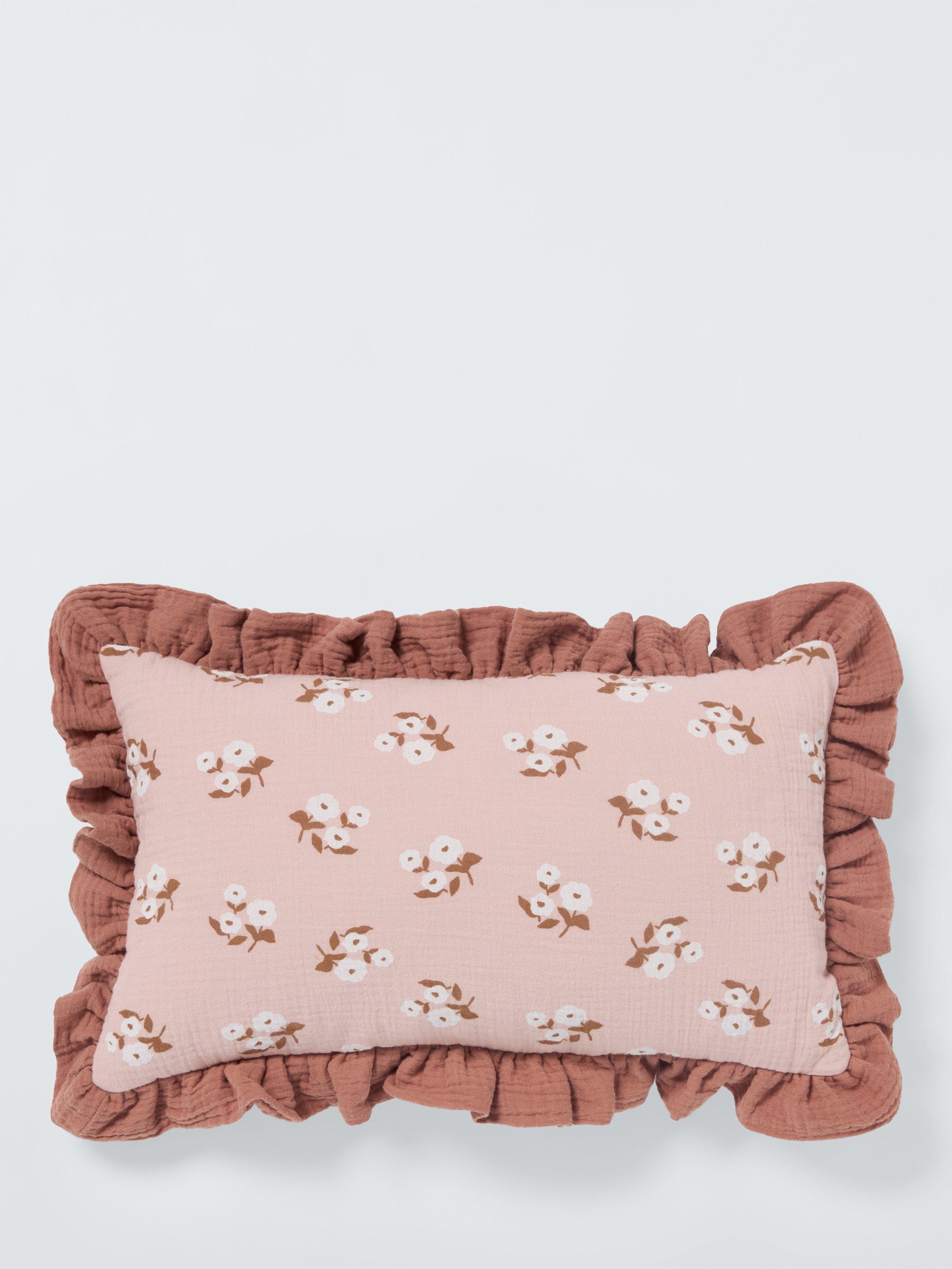 With a traditional charm, this cushion has a floral design and frilly trim. The cover is 100% cotton for softness, with a polyester filling.