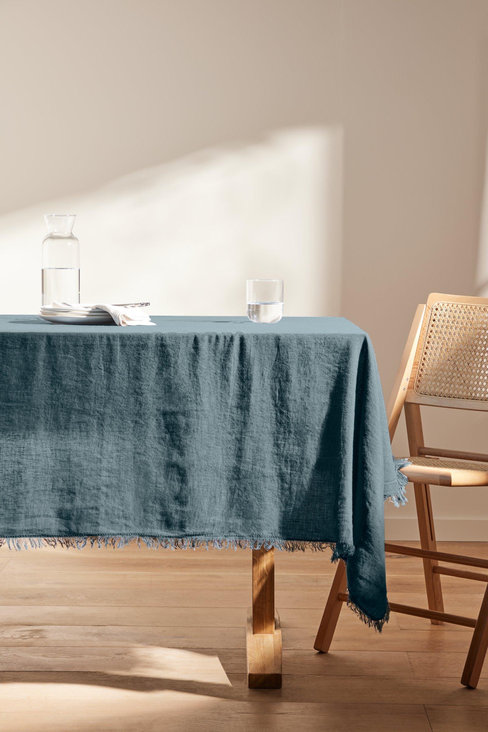 Texture for your table. Made of a cotton and linen blend, this tablecloth has a fringed hem. Machine washable for everyday use, match it with our cotton and linen blend fringed napkins to complete the look.