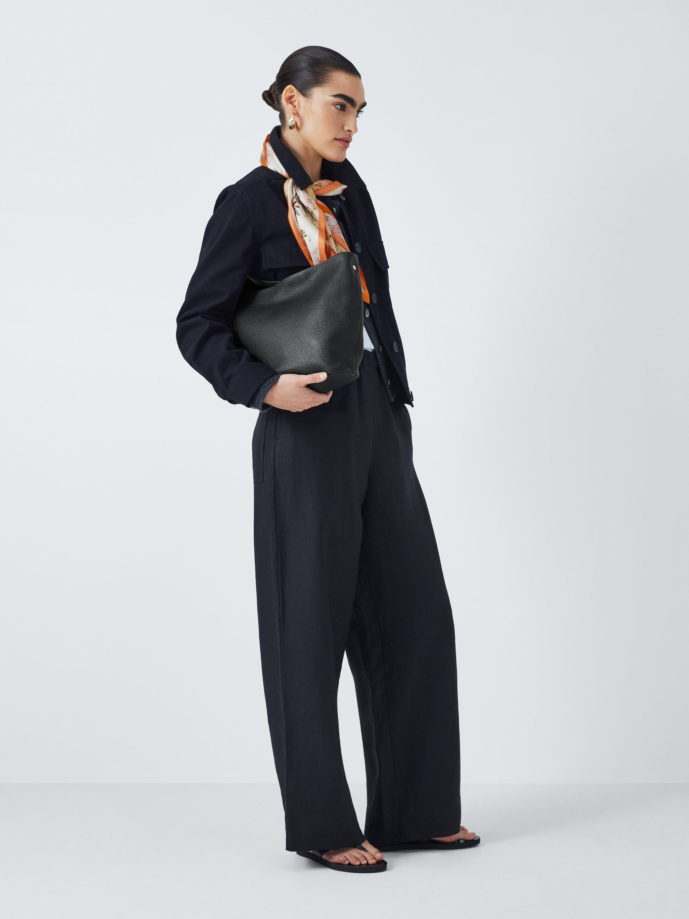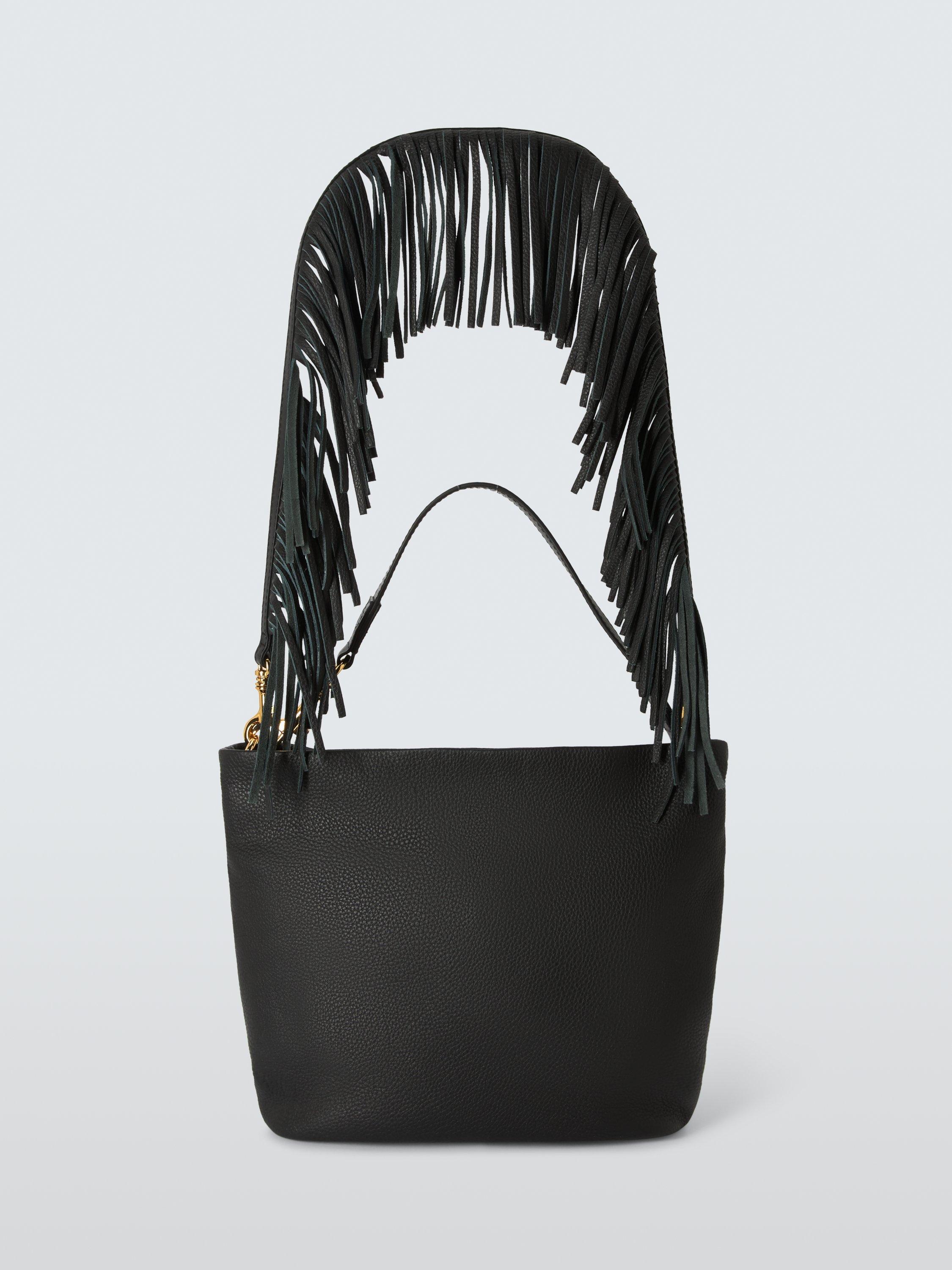 Two looks in one. Carry this leather bag by its short strap, or swap the detachable strap for the fringed one to wear it over the shoulder. However you wear yours, the secure zip closure keeps your essentials in place.