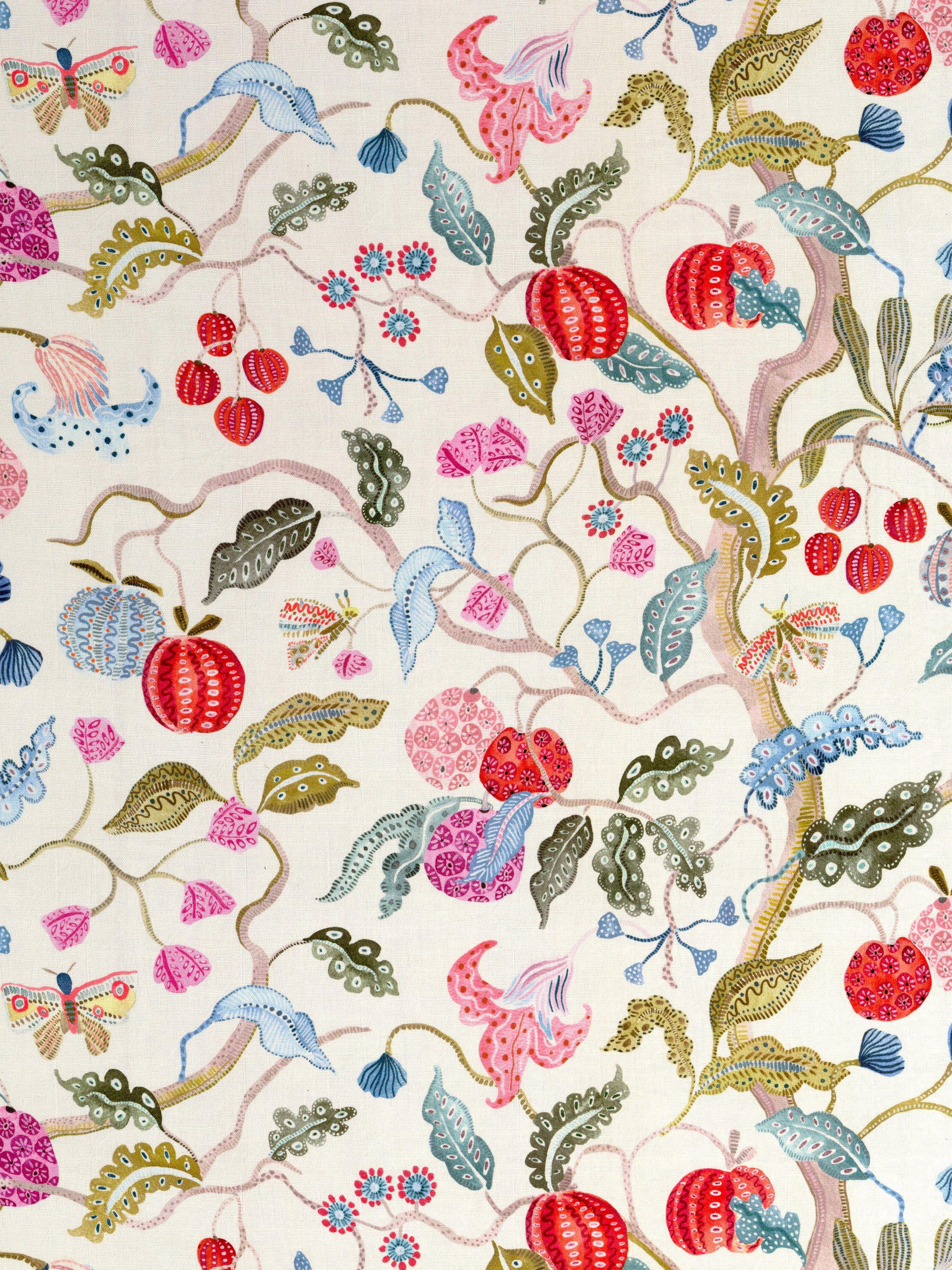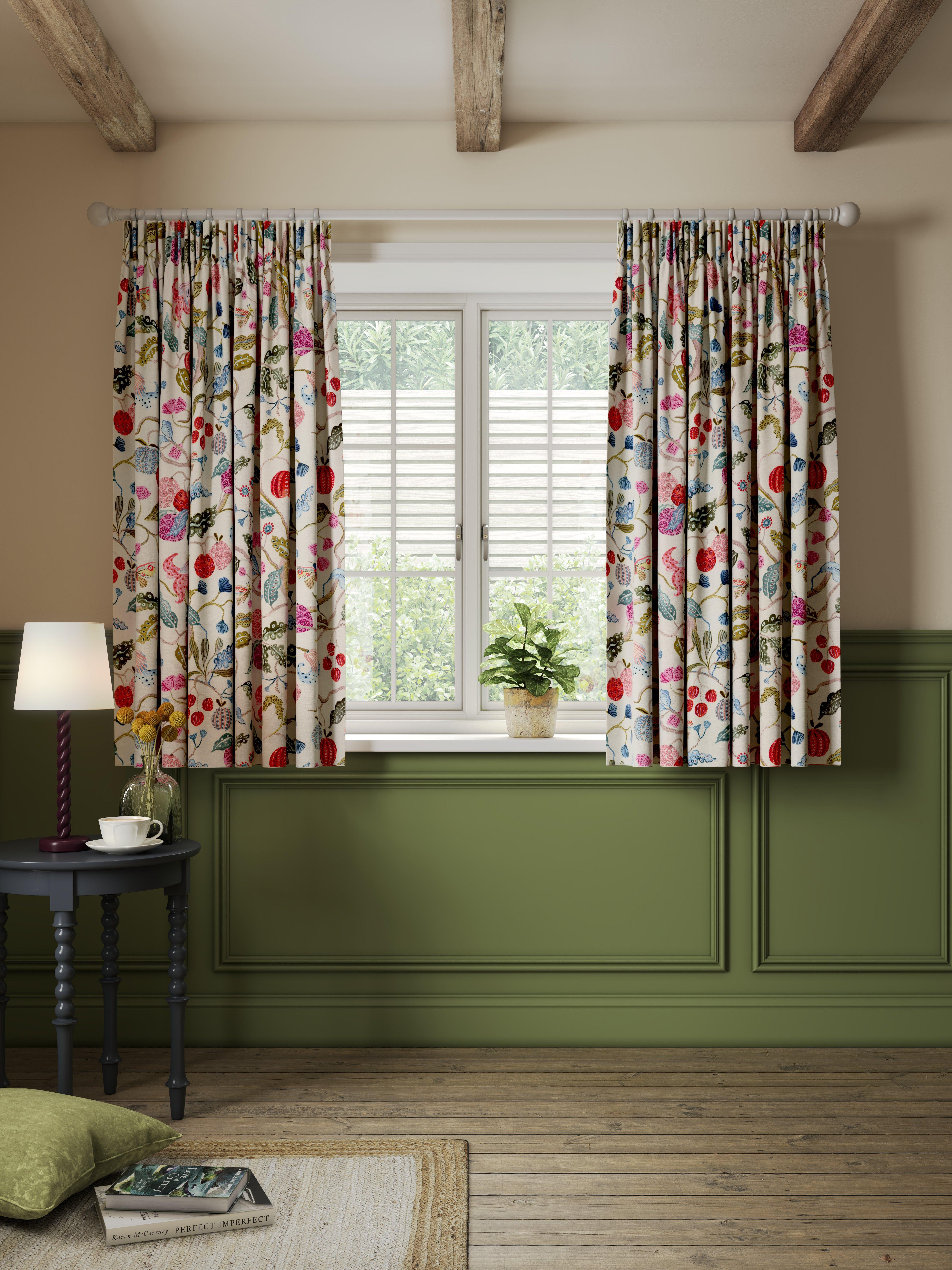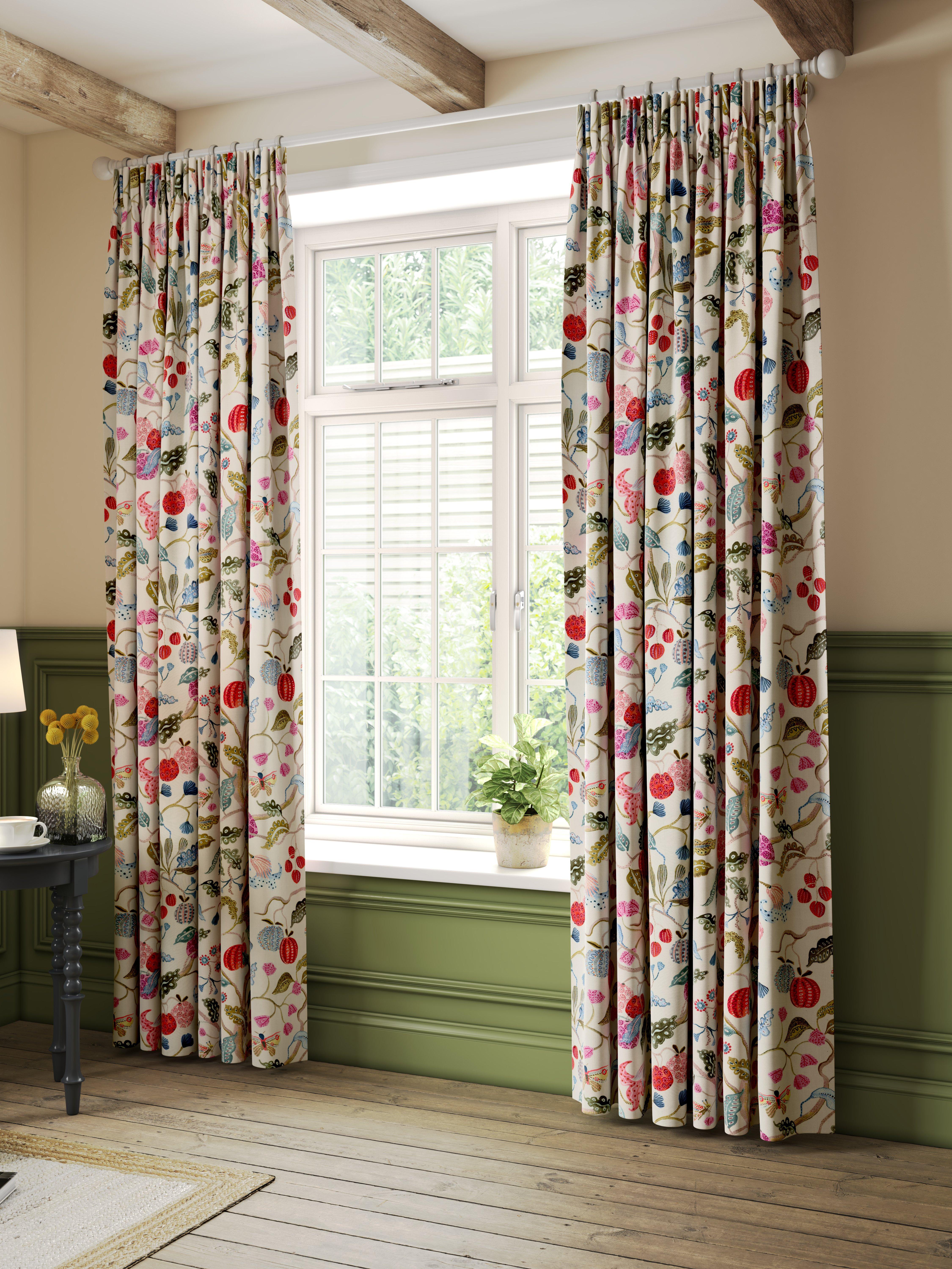 John LewisFruit Tree Print Pencil Pleat Pair Blackout Lined Curtains, Multi