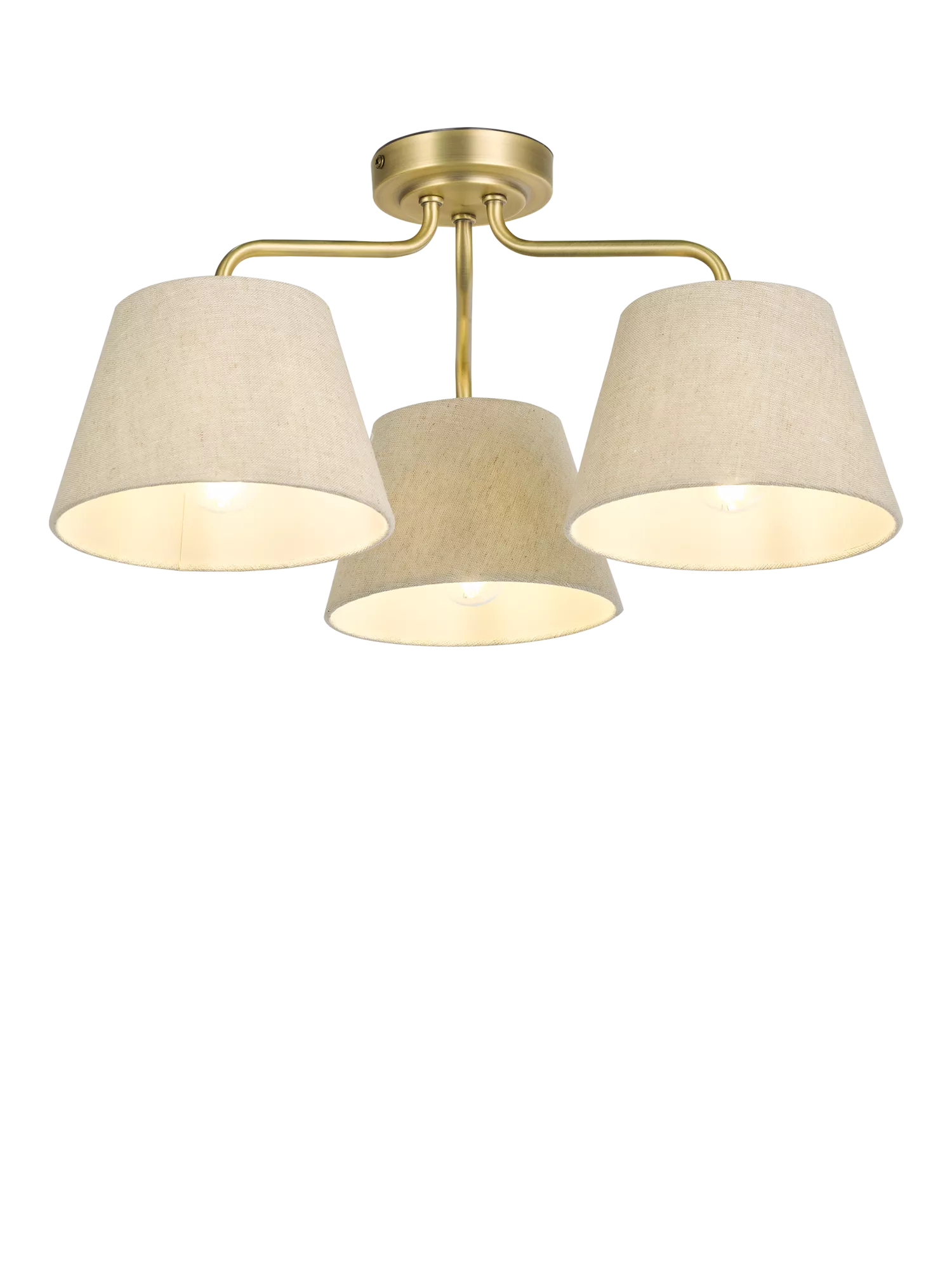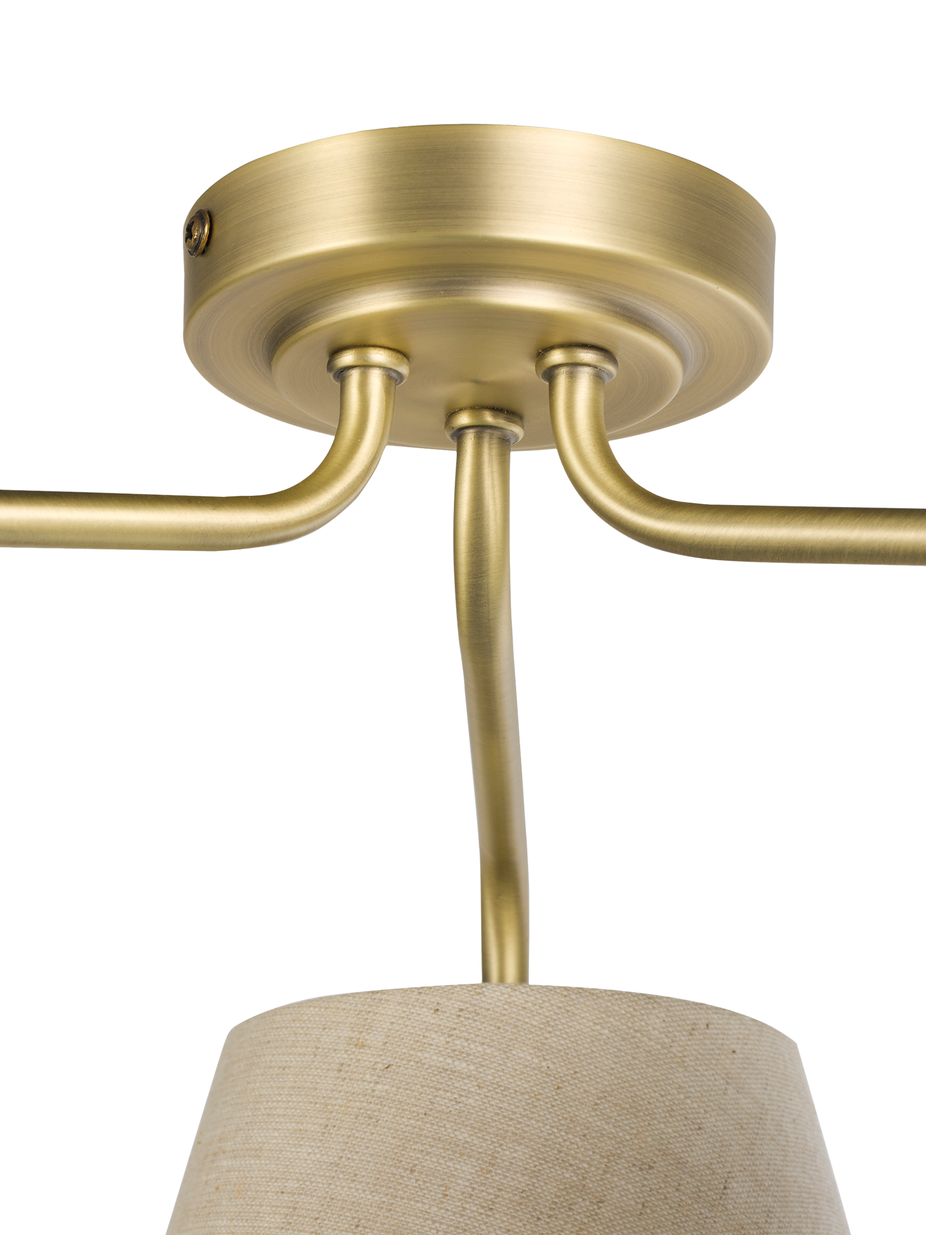 The Fulham 3 Arm Semi Flush ceiling light showcases a relaxed living contemporary design. With a matt finish and linen shades, this versatile piece is great for low ceiling spaces.