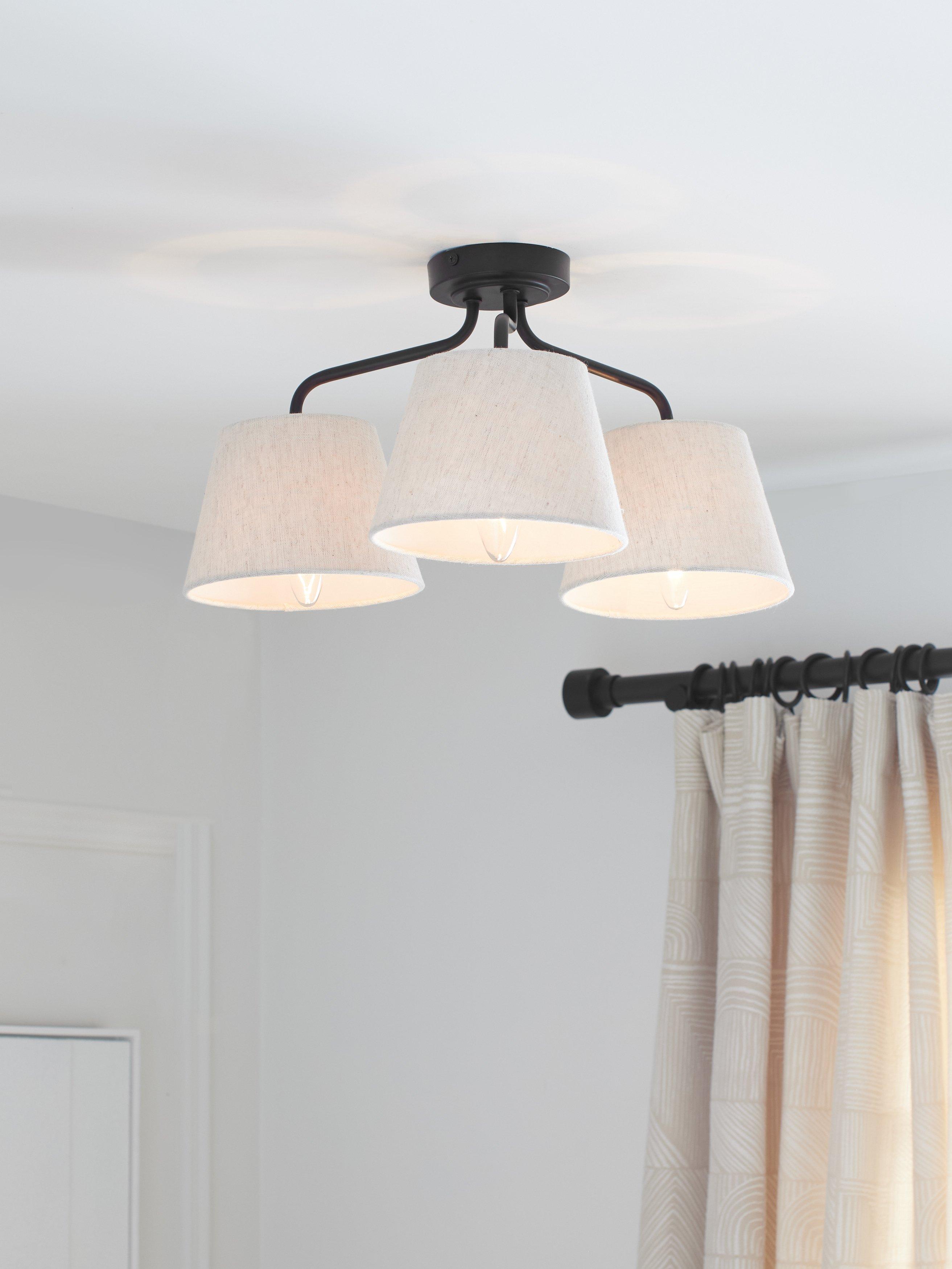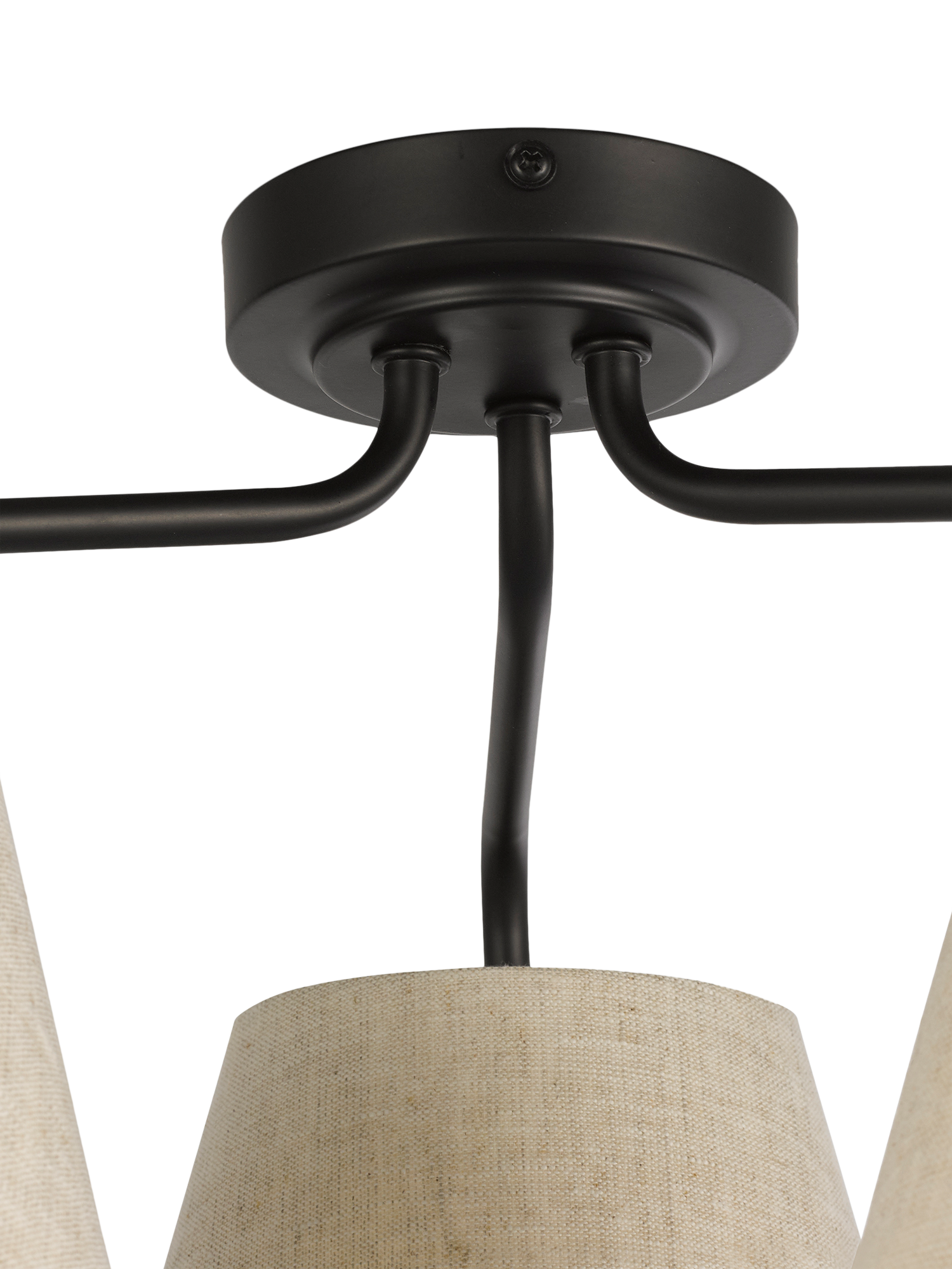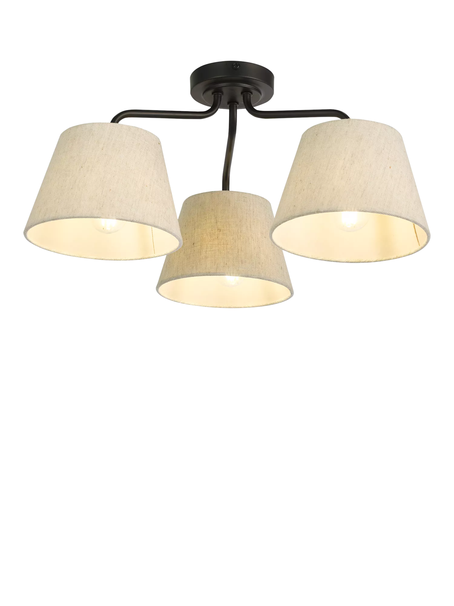 The Fulham 3 Arm Semi Flush ceiling light showcases a relaxed living contemporary design. With a matt finish and linen shades, this versatile piece is great for low ceiling spaces.