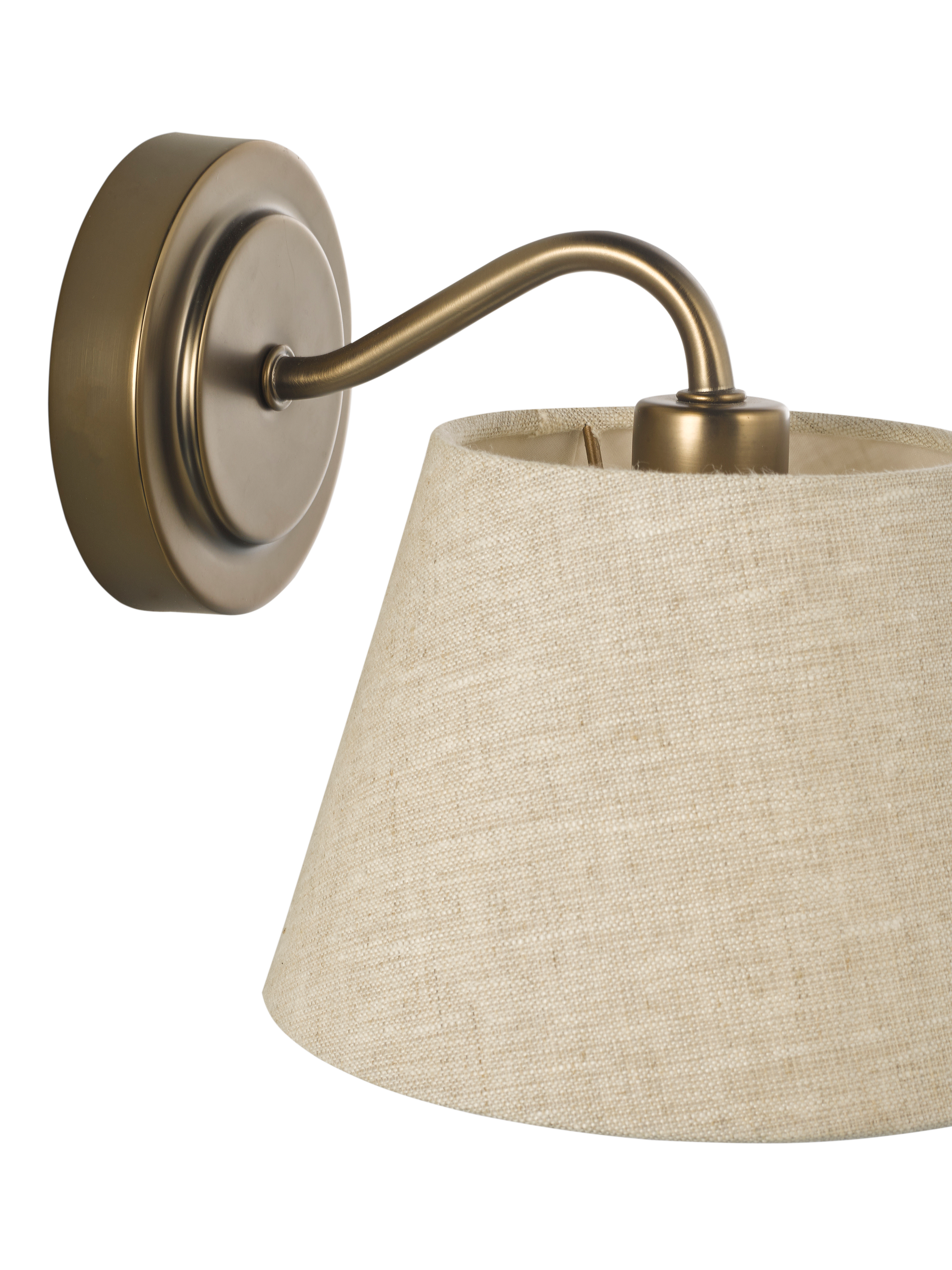 The Fulham wall light is a relaxed living, contemporary piece. With an antique finish and linen shade it showcases versatile design.