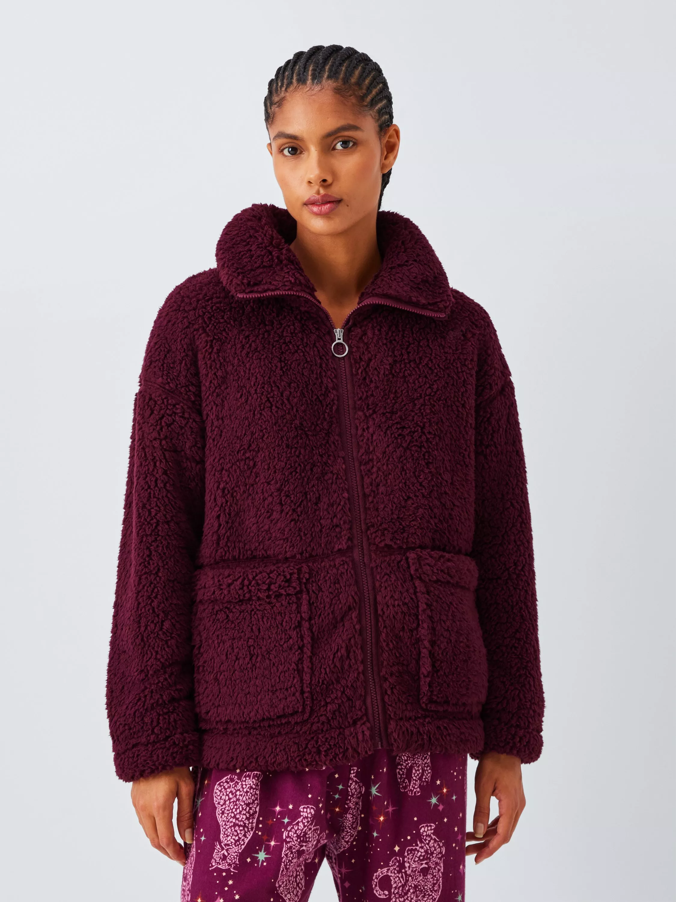Tackle chilly days in cosy style with this zip up borg fleece. The high neckline keeps that precious warmth tucked in and the patch pockets add a practical appeal.