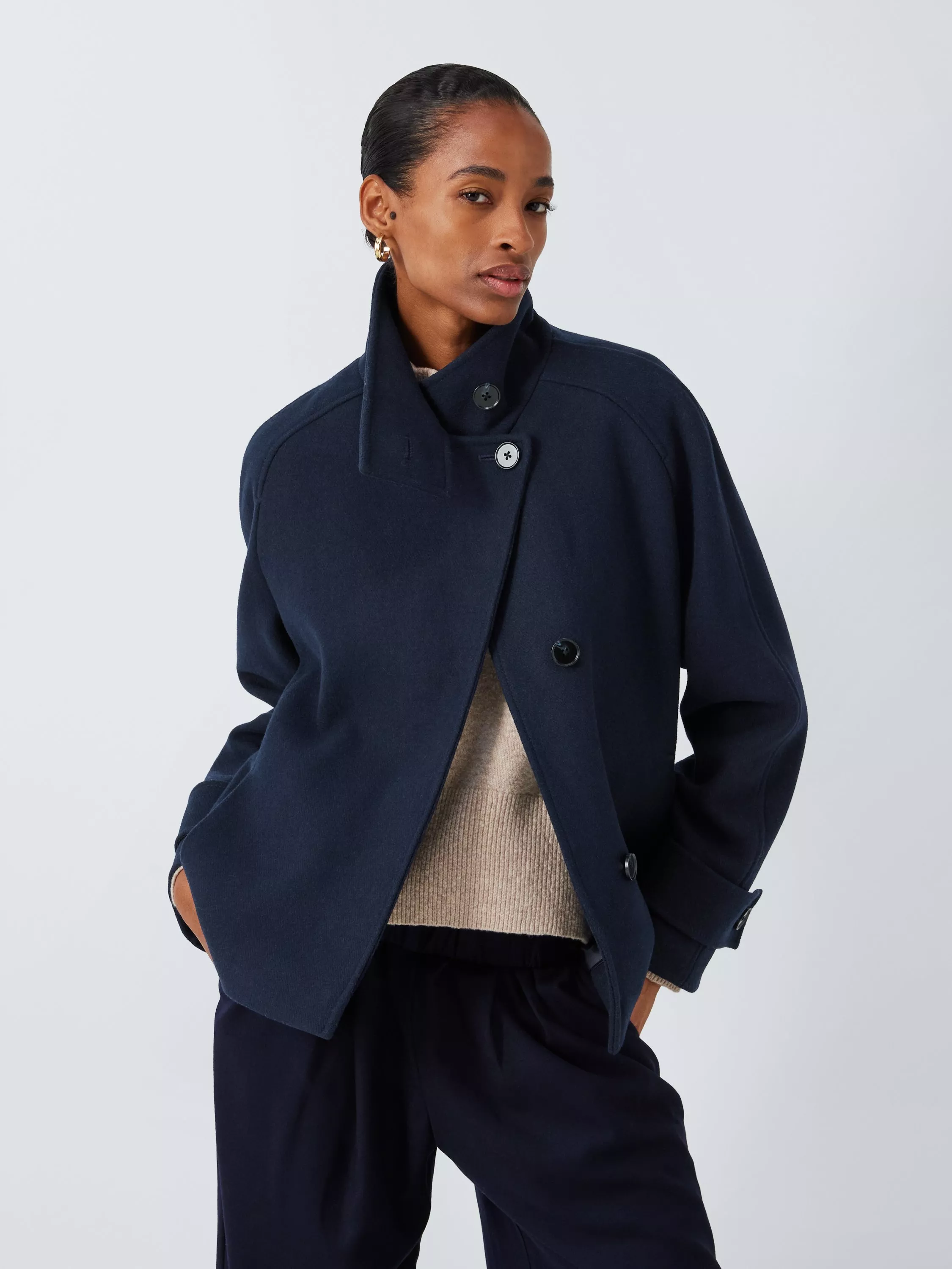 Made from a blend of recycled wool, this coat from John Lewis is framed by a funnel neckline with a concealed closure that's punctuated by a single button at the neck.