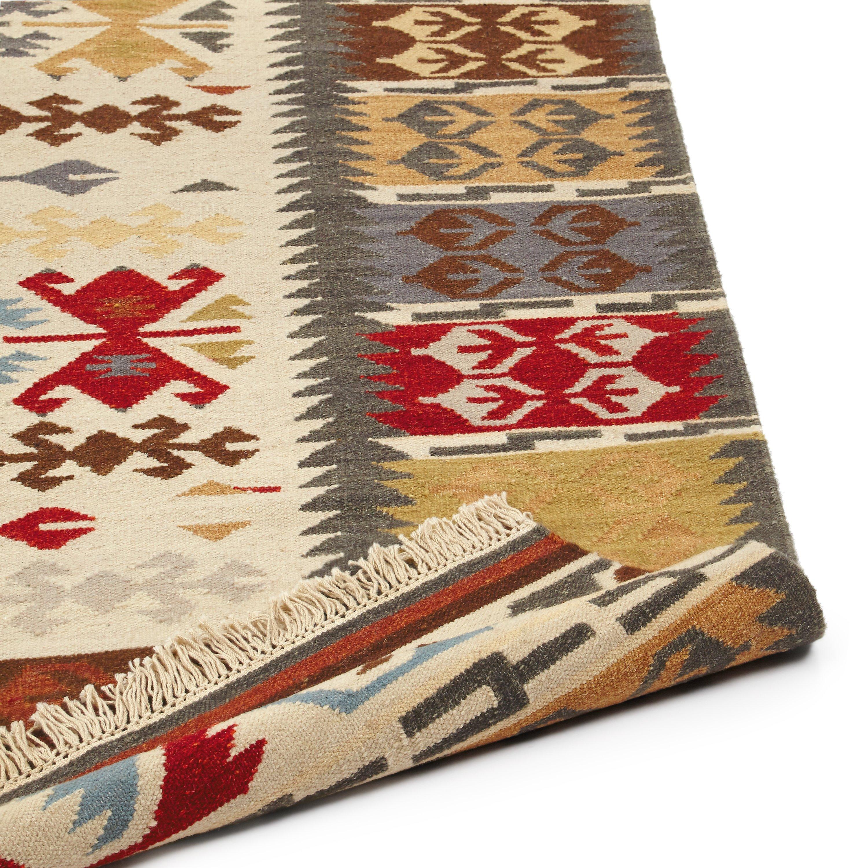 This exotic wool rug helps you borrow a look from the Far-East, with the intricate pattern and tassels adding a touch of authenticity to the piece. The colour palette is inclusive of multiple different tones, helping you seamlessly incorporate it into your choice of interior.