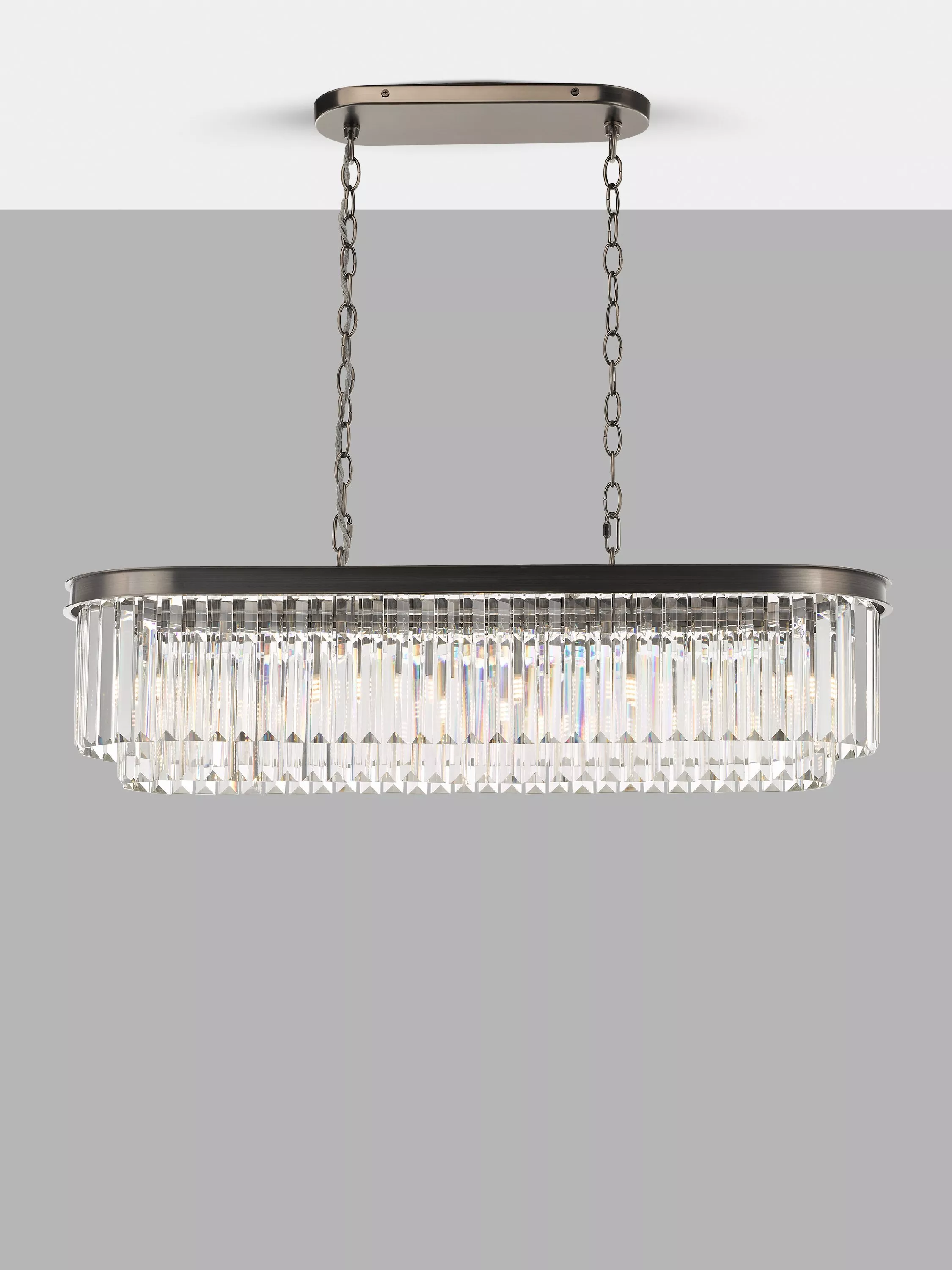 A beautifully crafted diner pendant with cut glass crystal suspended from a contrasting aged pewter metal frame. This versatile statement light will create a stunning focal point to your interior with its reflective luxe finish.