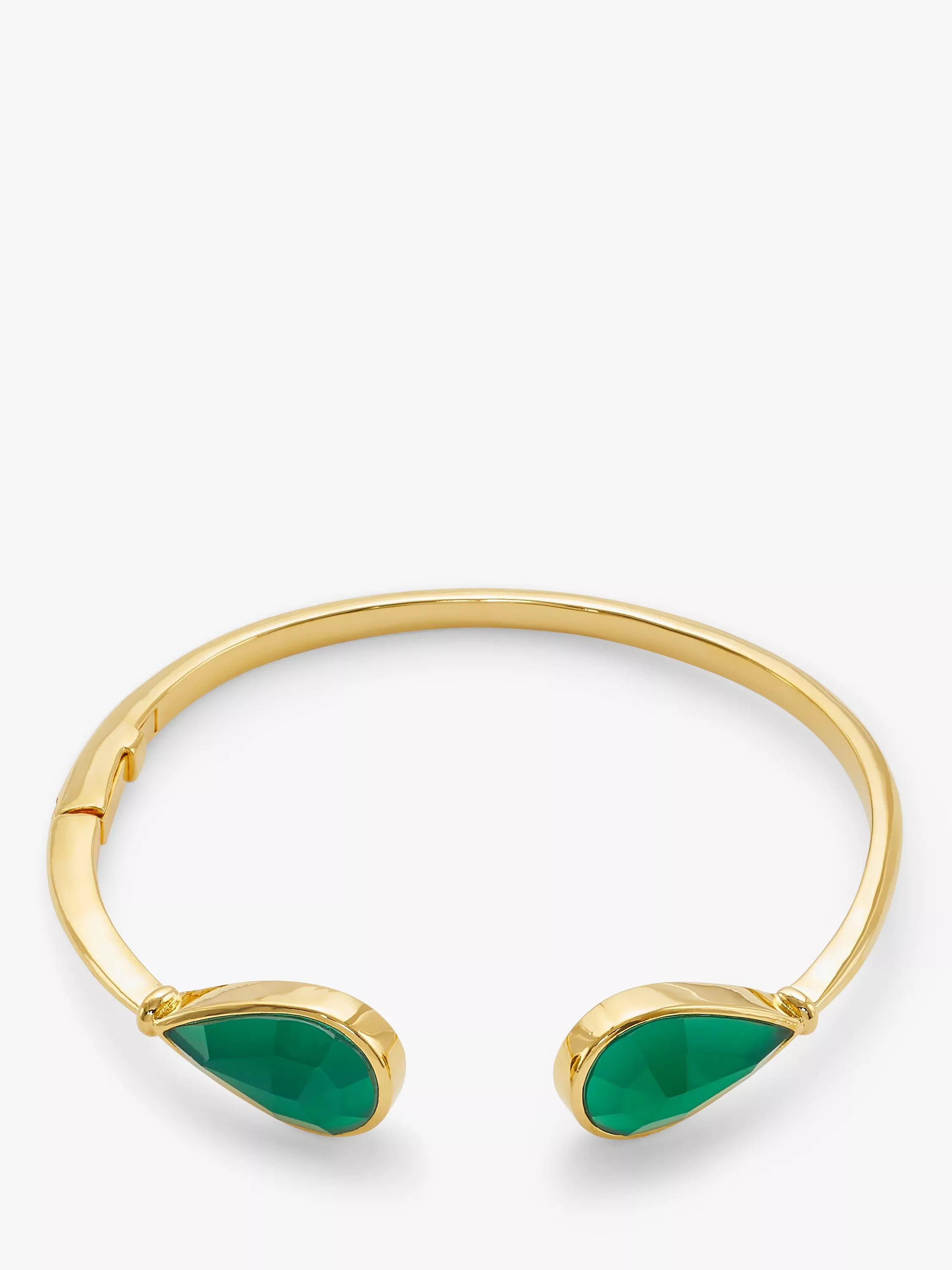 In our Gemstones collection, this bangle will add a sleek and elegant finishing touch to your outfit. The bangle stands out with its two faceted teardrop-shaped semi-precious stones. The stones are presented in a rub-over setting. The hinged mechanism gives you easy and comfortable wear.