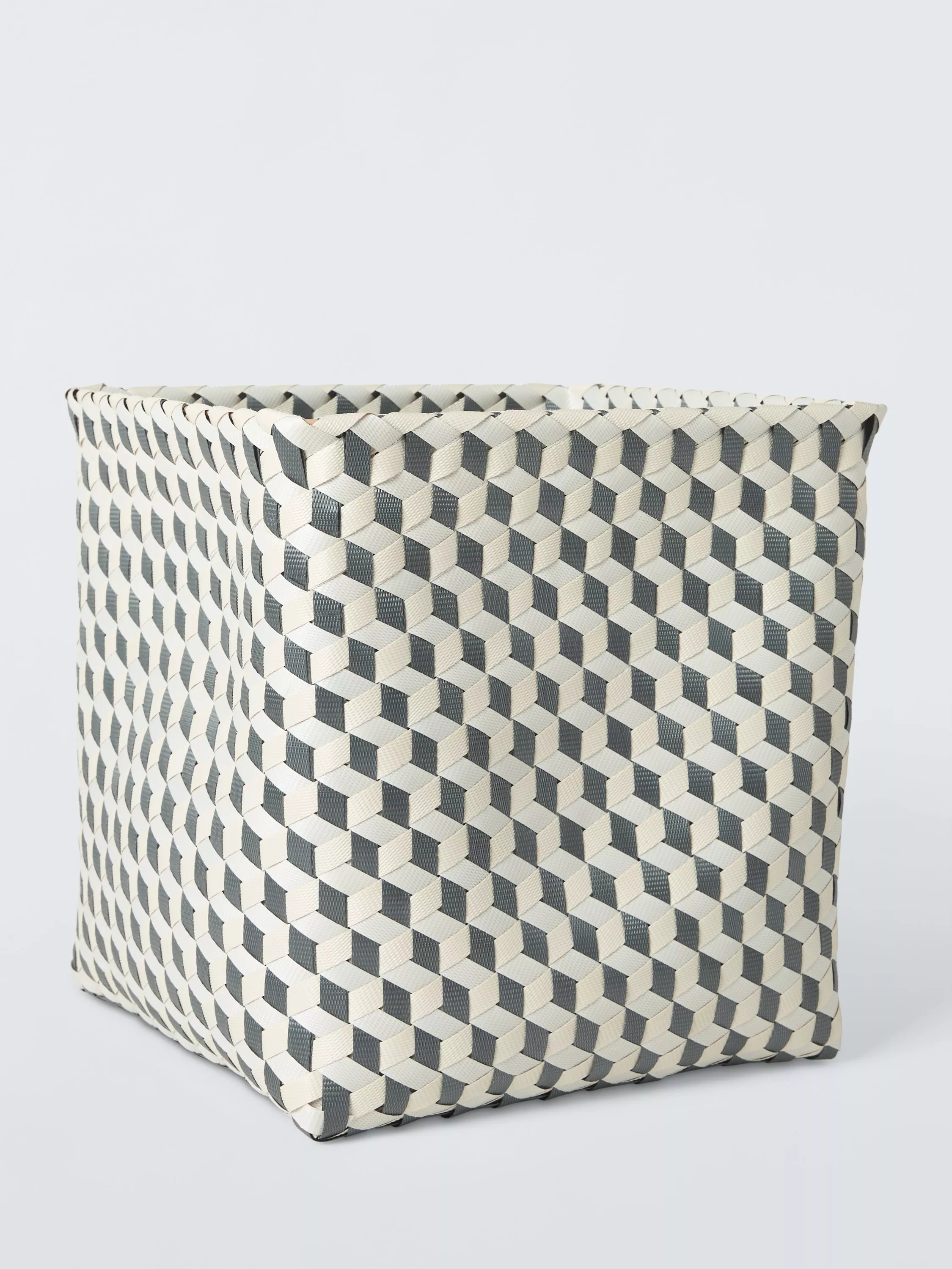 This woven webbing basket creates a 3D block effect with its duo tones. Lightweight, yet sturdy it's handy for storage anywhere around the home.