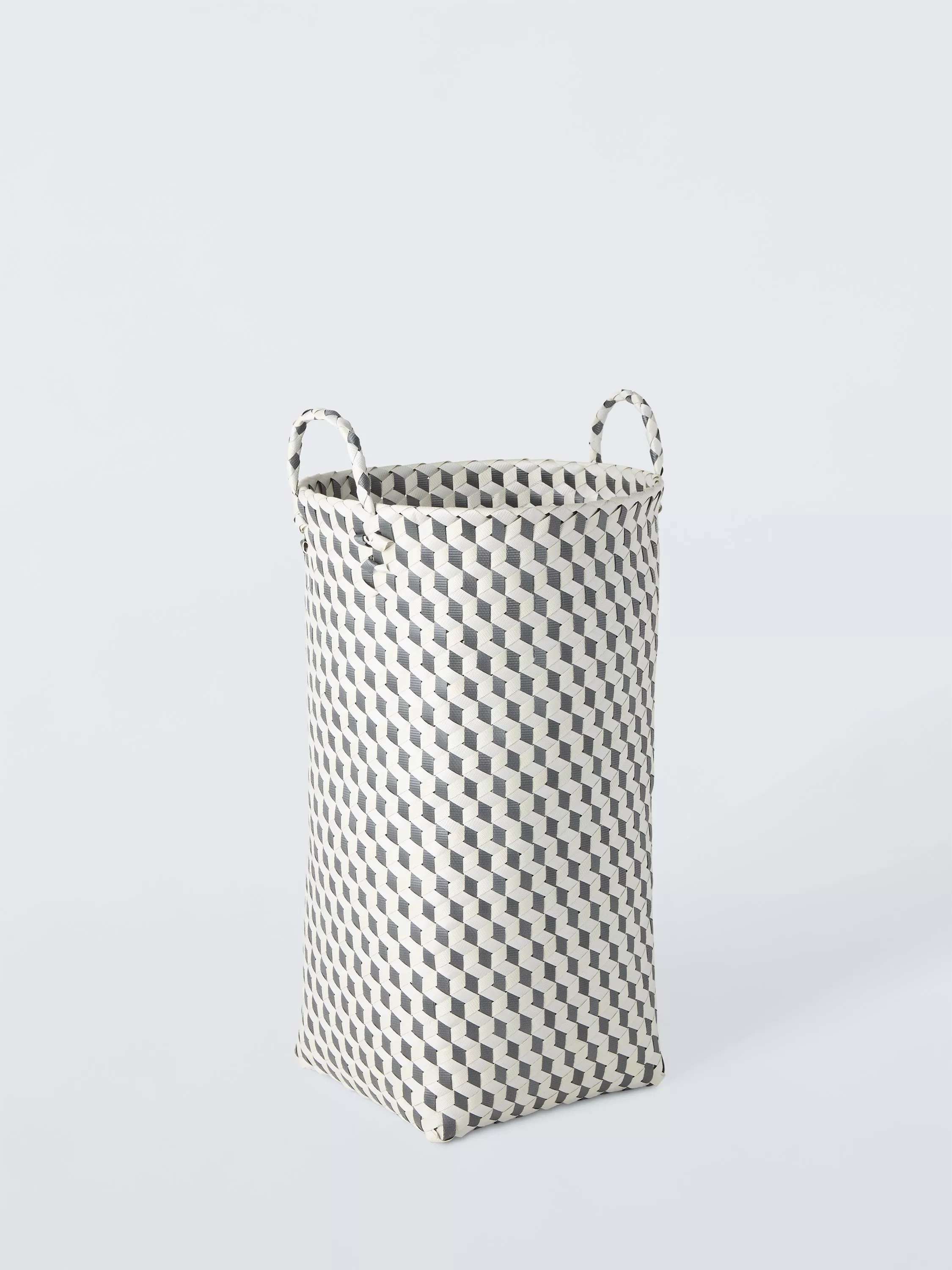 Woven from webbing, in two shades that give the illusion of a geometric cube design, this lightweight laundry basket will be a real workhorse around the home.