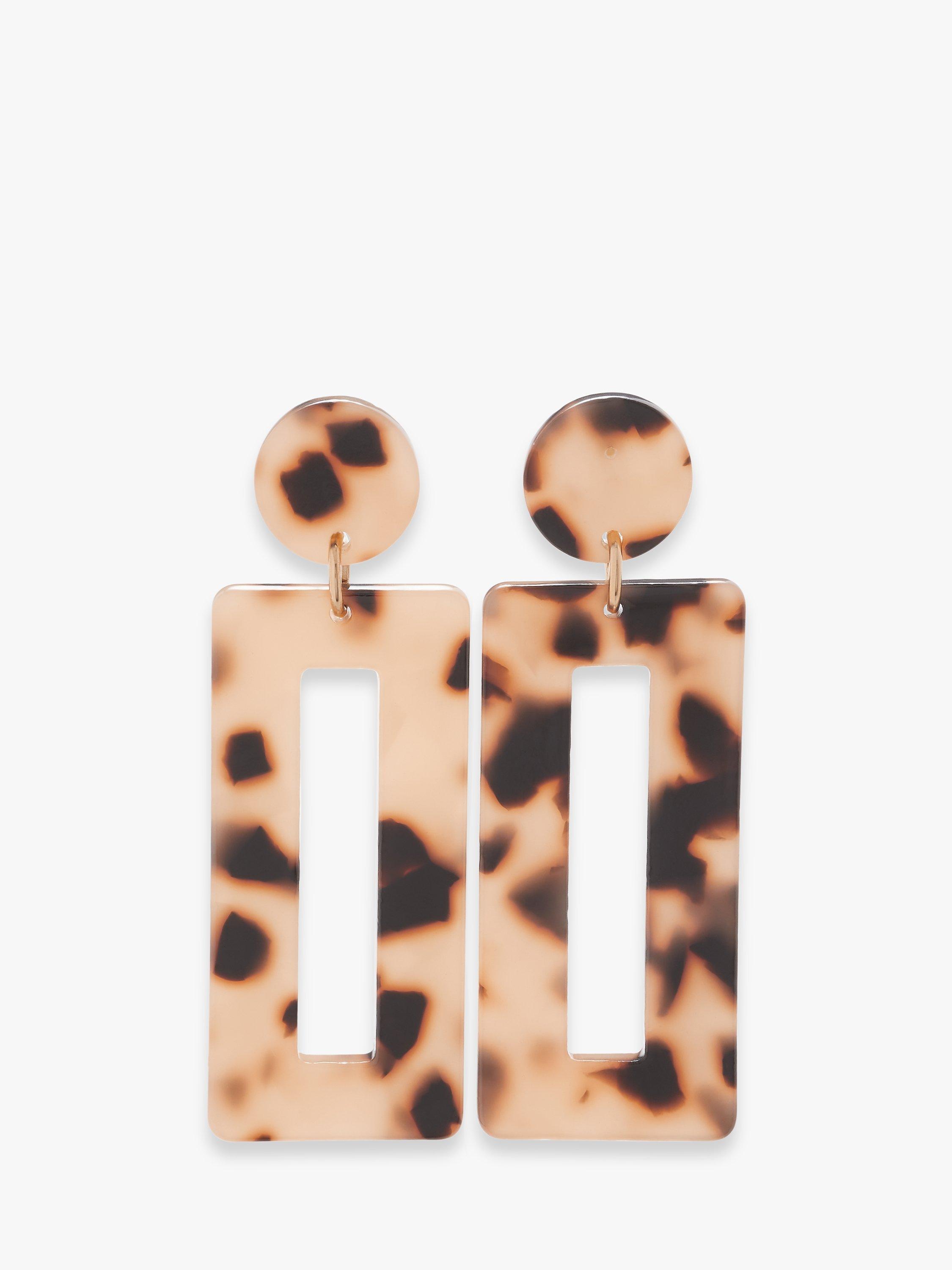 John LewisGeometric Rectangular Earrings, Pale Brown