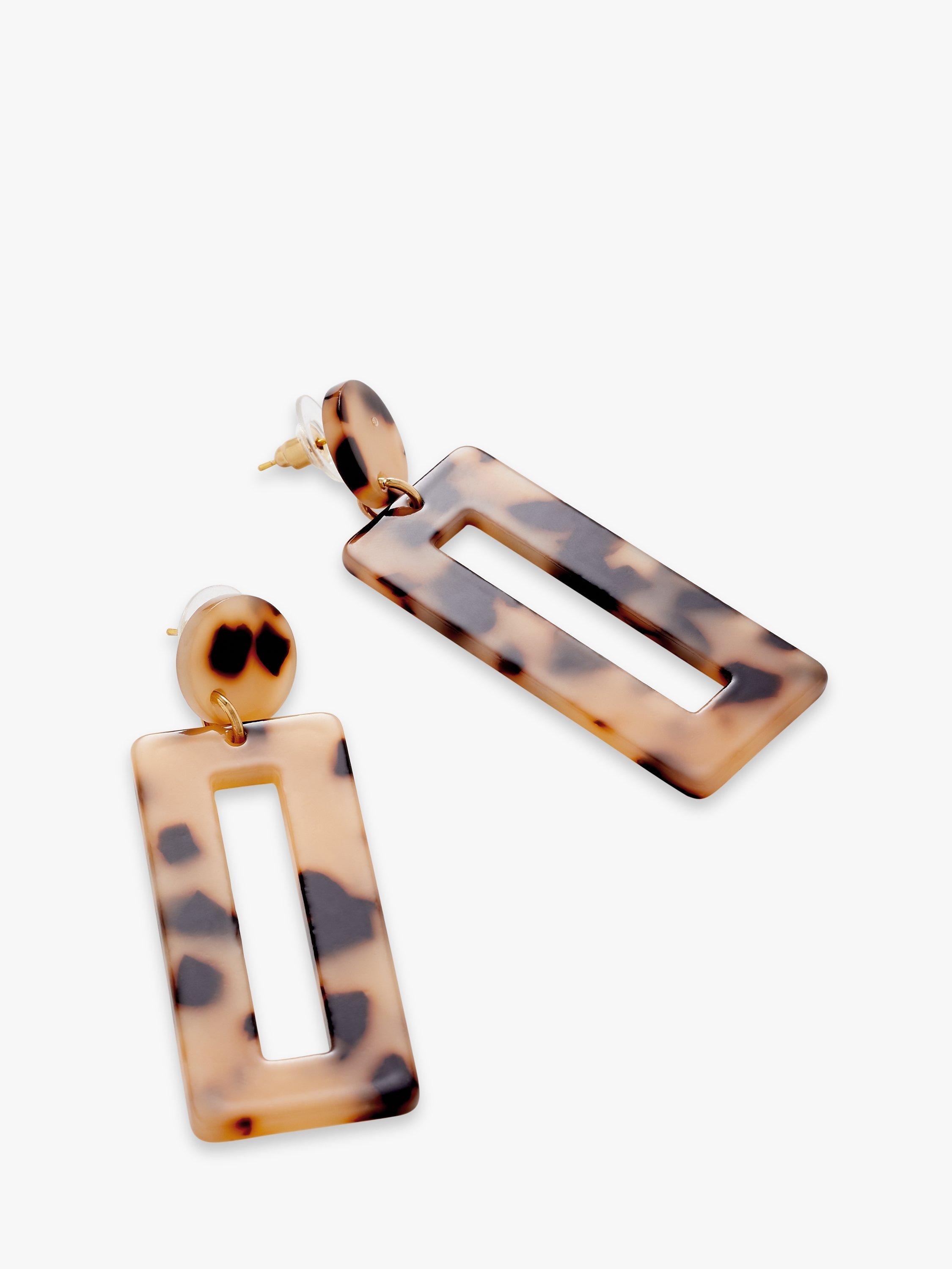 Inspired by the timeless class of tortoise shell, these drop earrings are designed in a hollow rectangle style.