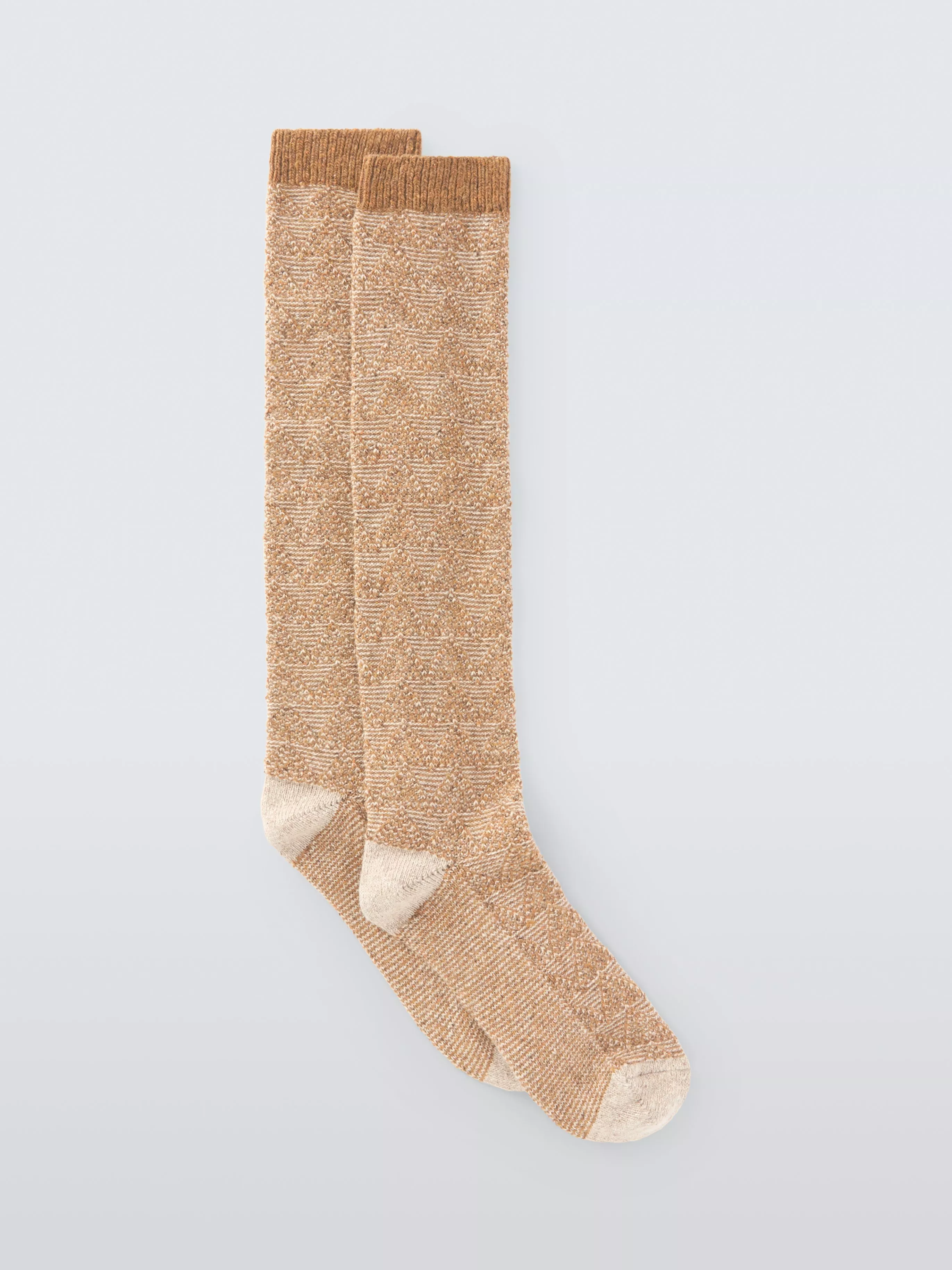 John LewisGeometric Wool Silk Blend Knee High Socks, Orange