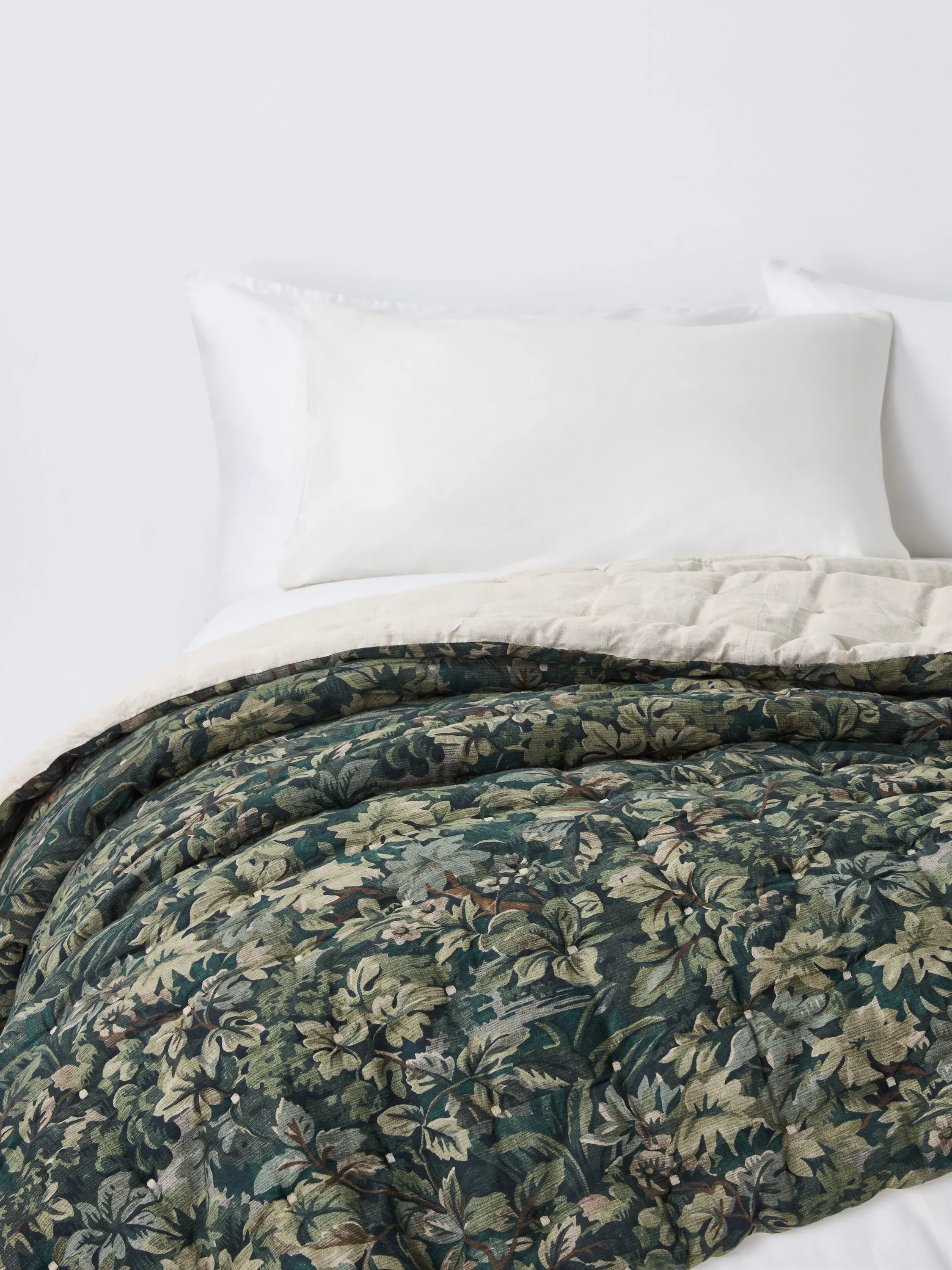 This quilted linen blend bedspread has a lush, leaf design and is polyester filled, adding a layer of extra warmth.