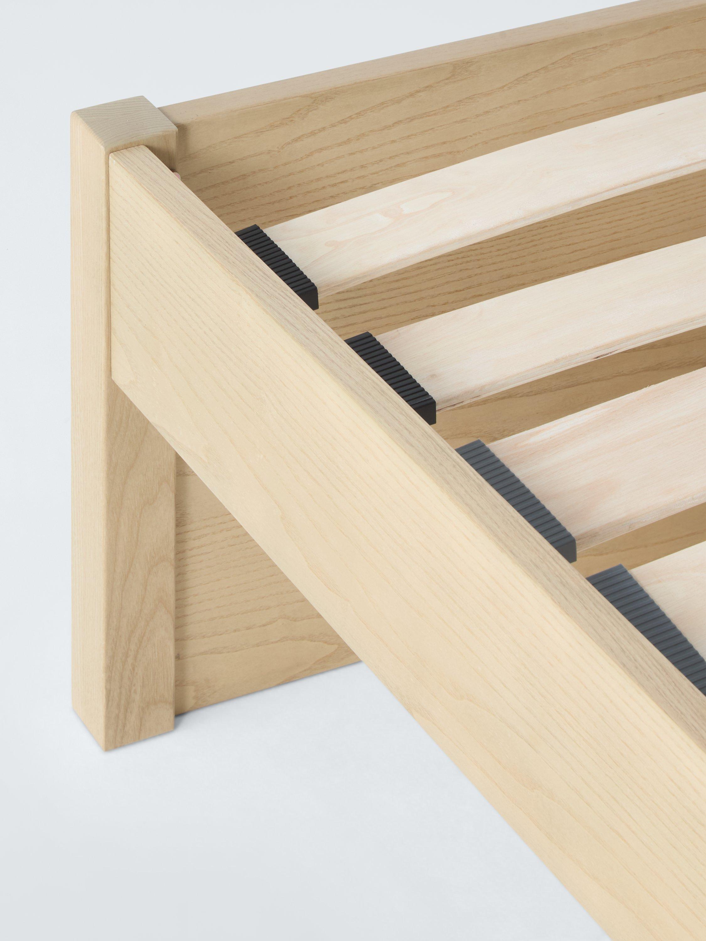 We've made the Gilly bed frame from stained ash wood. It has a simple, clean-lined design with supportive sprung slats in the base. As an alternative to a divan base, the Gilly bed is designed to accommodate UK-spec - strutted and floor standing headboards, please check headboard measurements before purchase. Available in a natural finish that highlights the authentic wood grains.