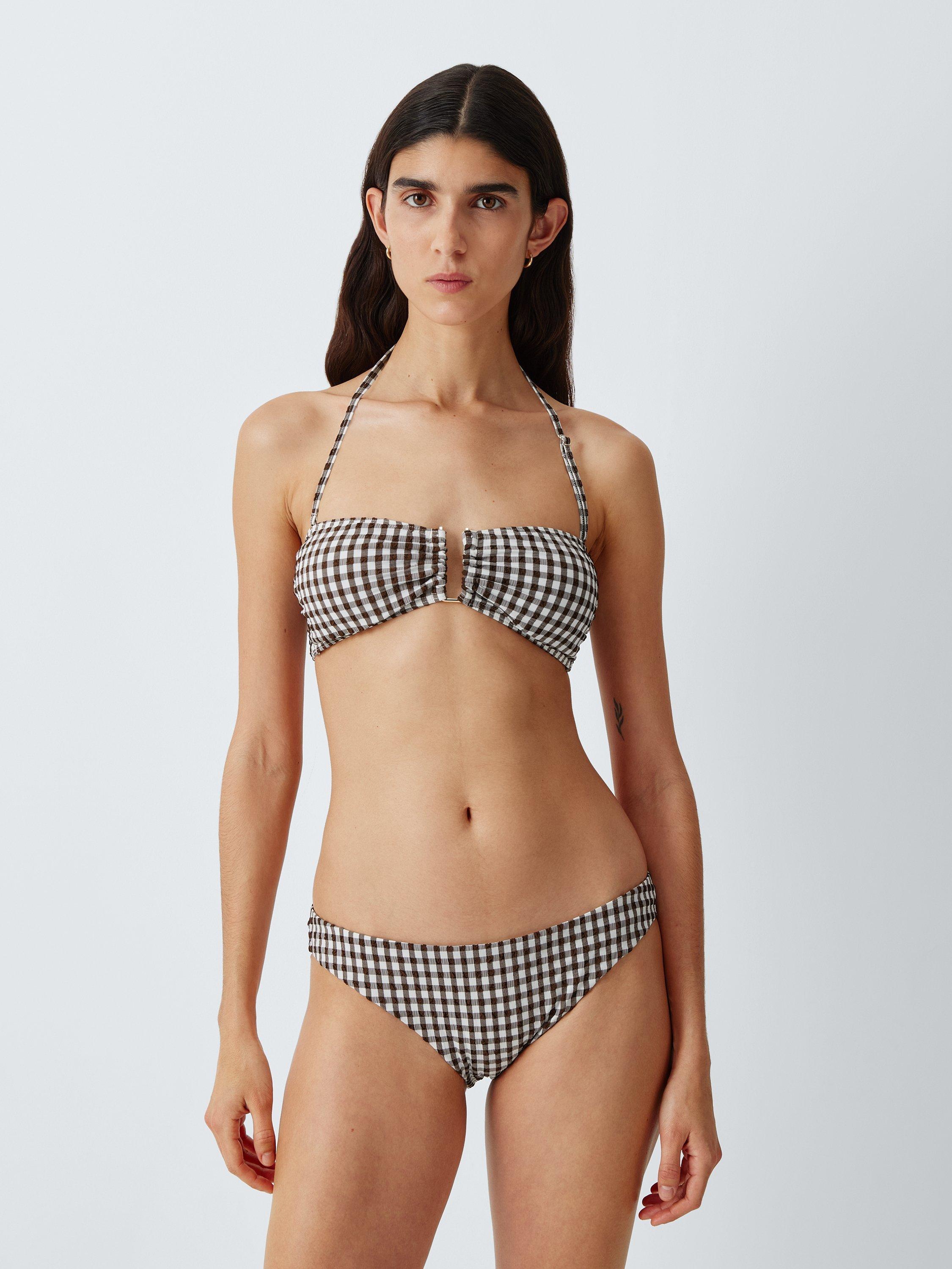 Fully lined, low-rise bikini bottoms in a classic gingham design. Pair with the matching bandeau bikini top for a complete set.