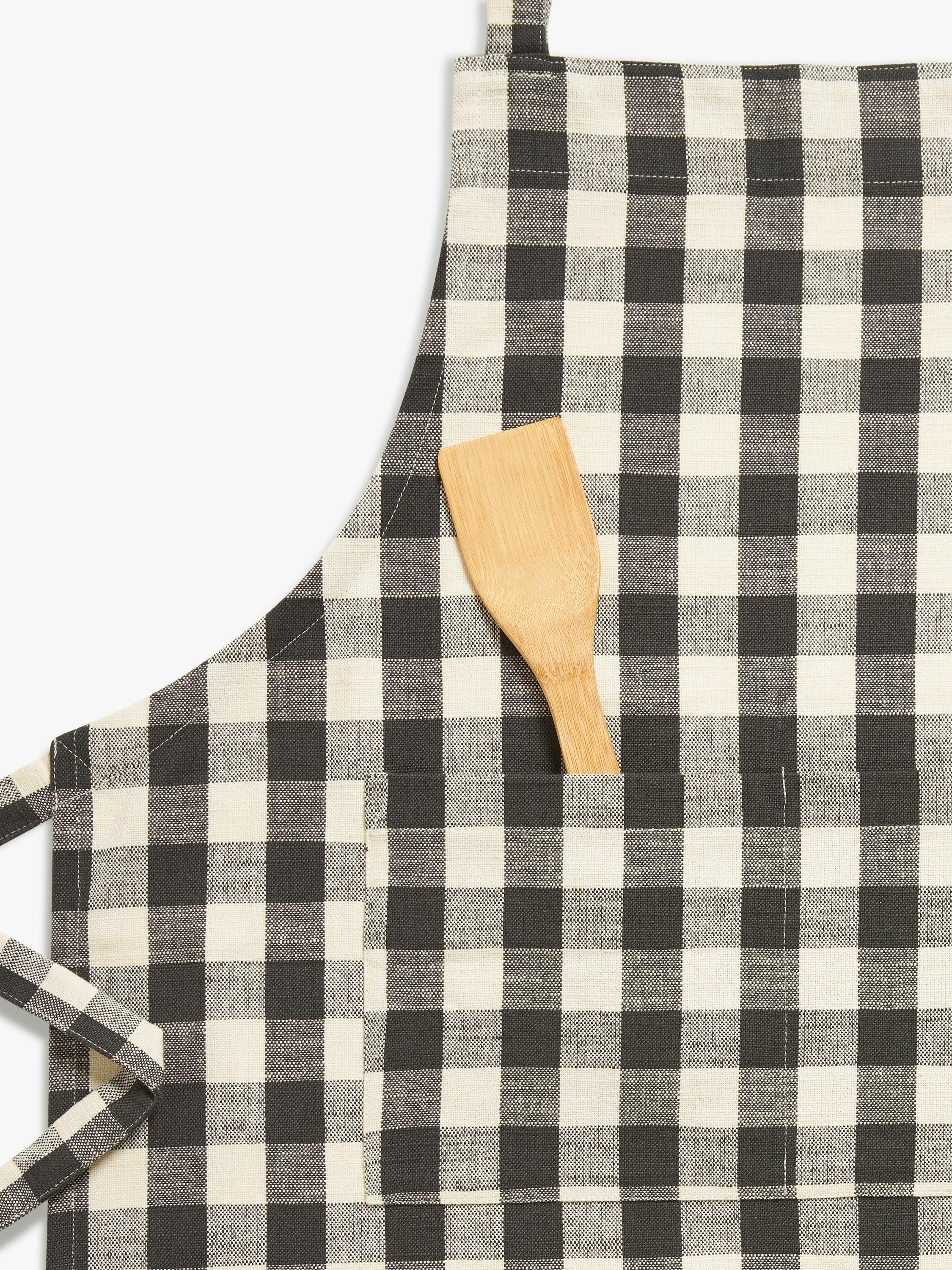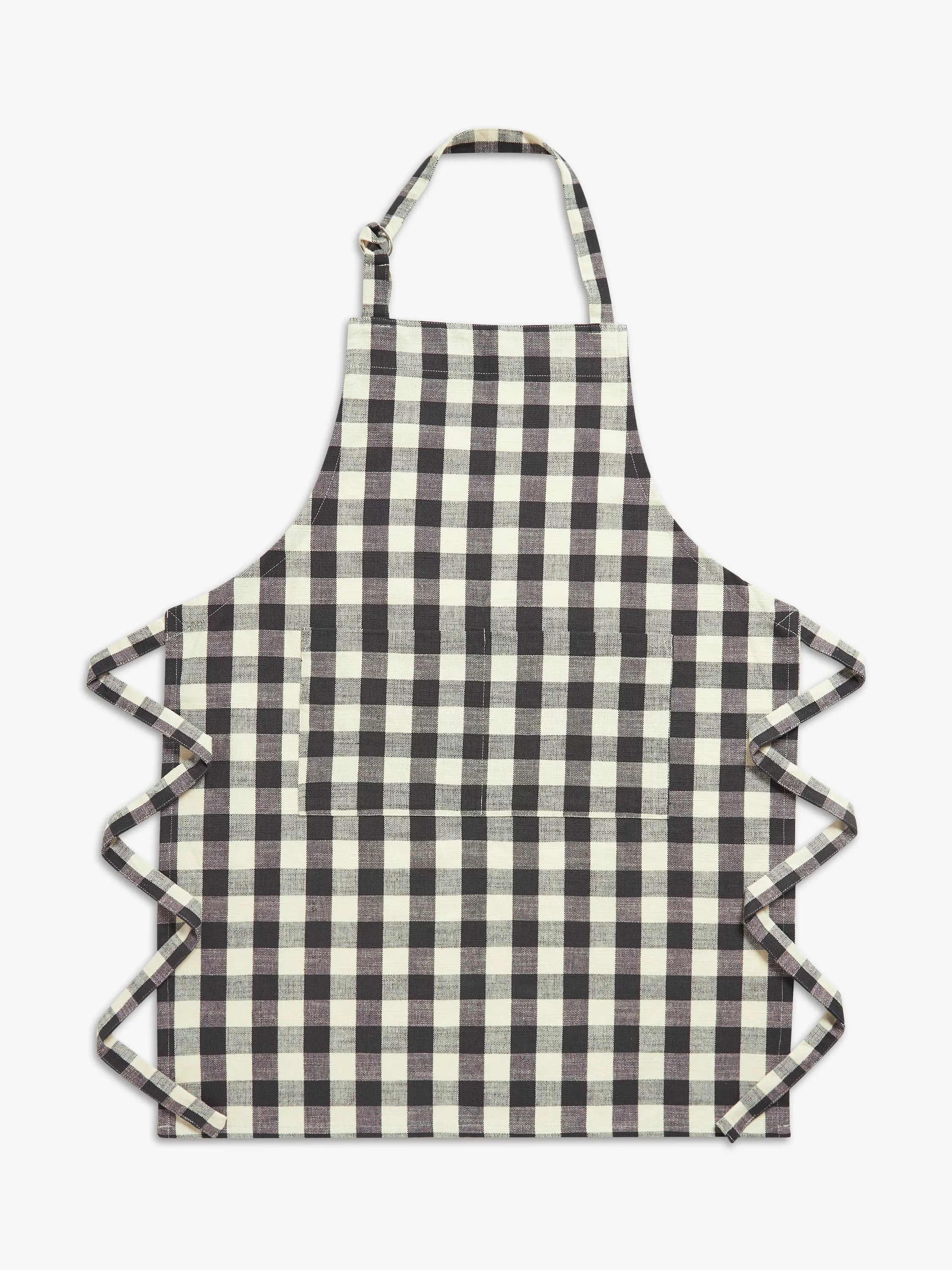 Kitchen apron in classic gingham. Designed with an adjustable neck loop and ties for a customised fit and a handy front pocket for keeping kitchen utensils, barbecue tools or your phone. Made of pure cotton, it's durable, machine washable and coordinates with our matching gingham kitchen textiles and table linens.