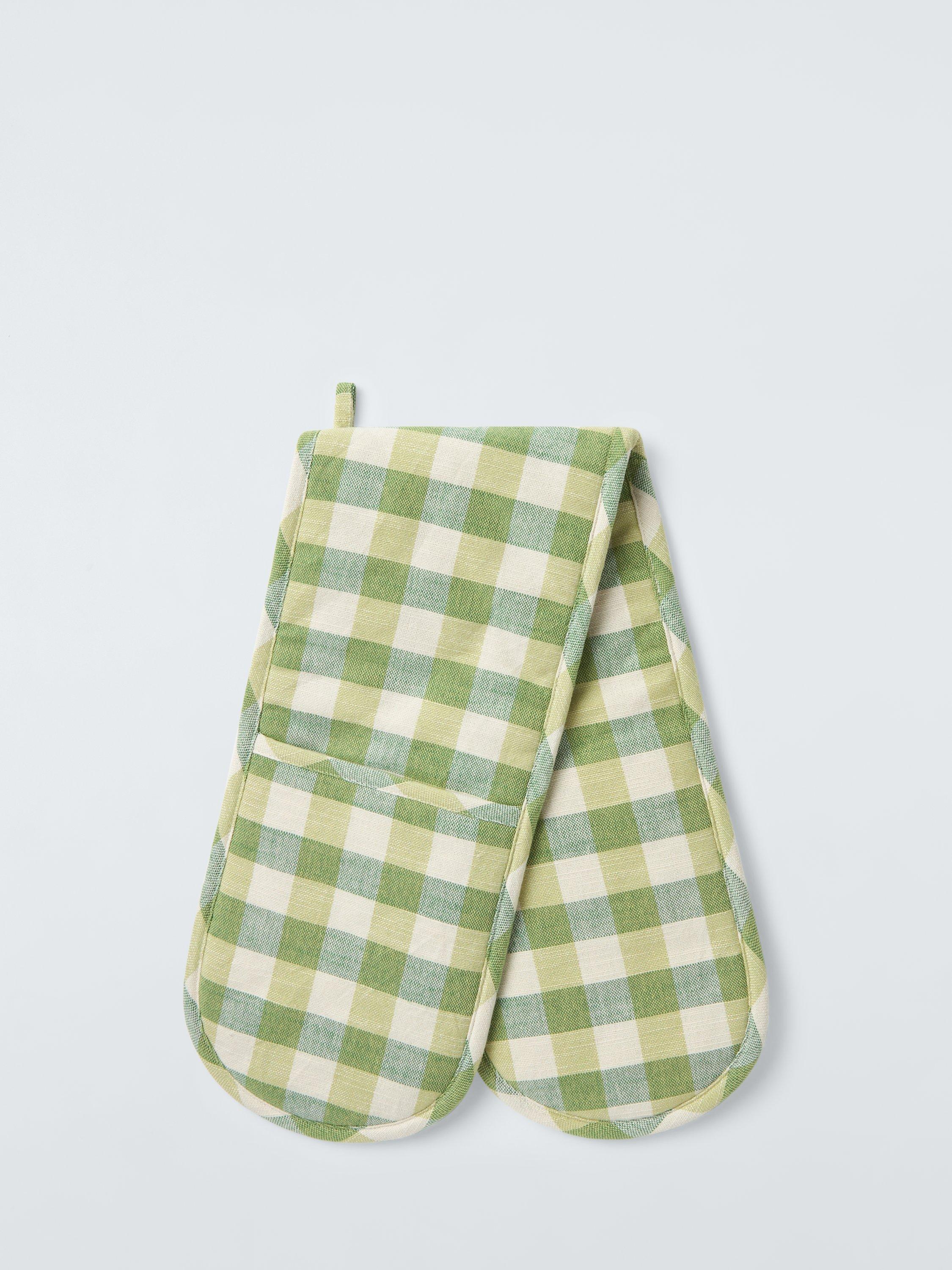 Classic gingham pattern double oven gloves, made from pure cotton with an insulating polyester filling. Durable, comfortable and machine washable, they coordinate with the matching set of tea towels and kitchen apron in our Gingham pattern.