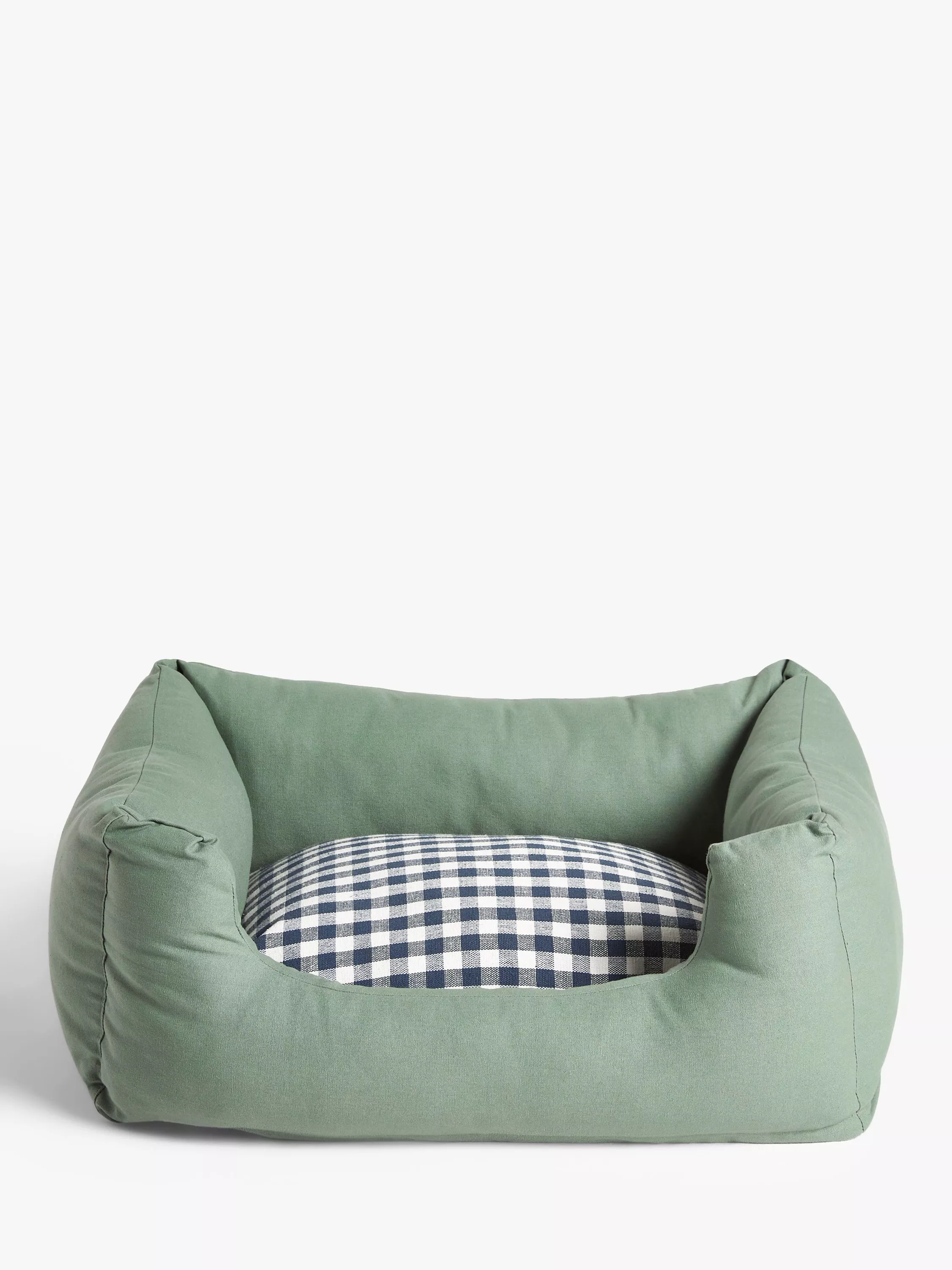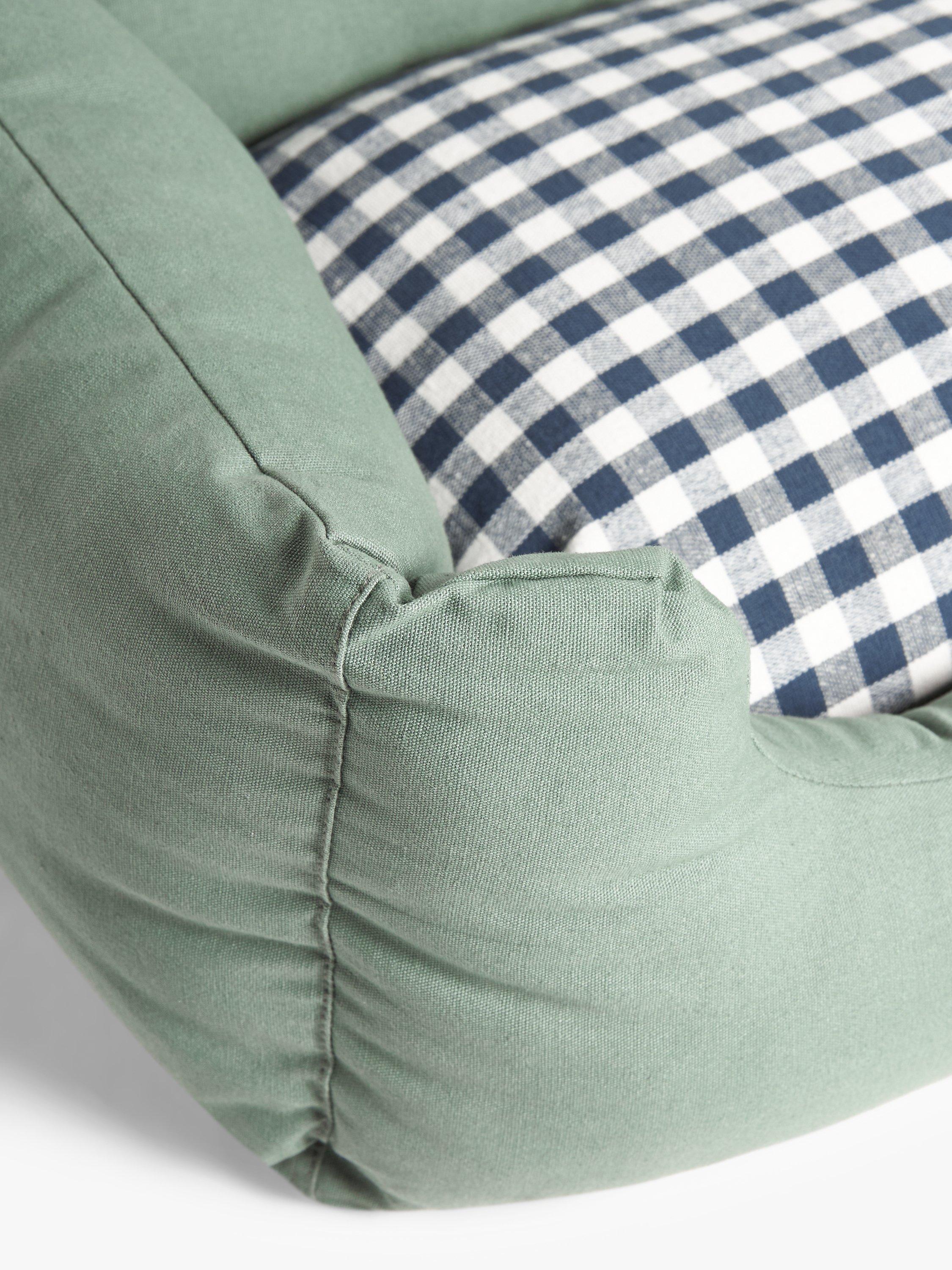Dogs will love this super comfortable pet bed with a soft cotton exterior and cushioning. You'll love the fact that the outer cover and gingham cushion are removable and machine washable.
