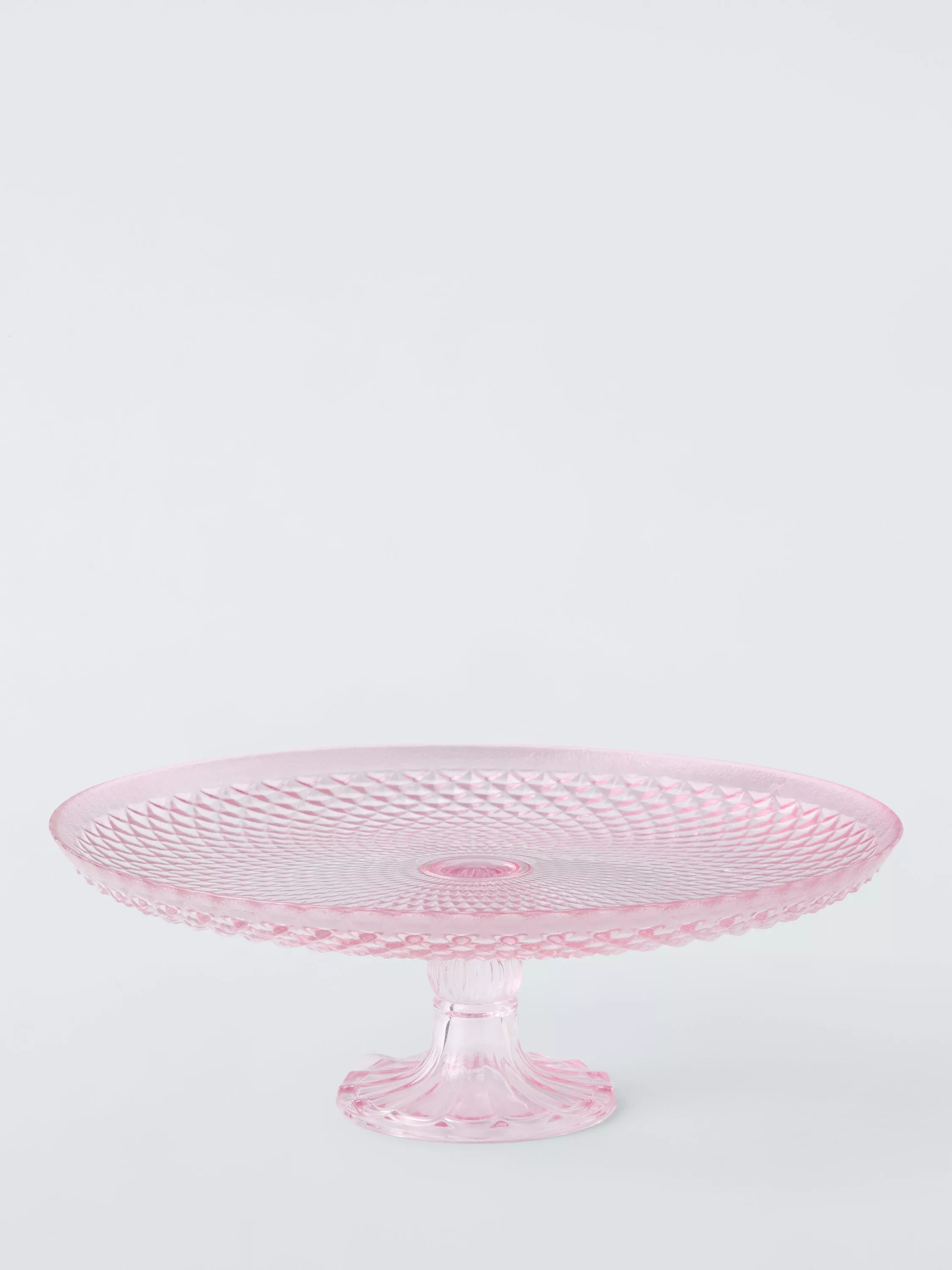 Patterned glass cake stand with a hint of pink. Ideal for displaying your finest bakes in contemporary style.