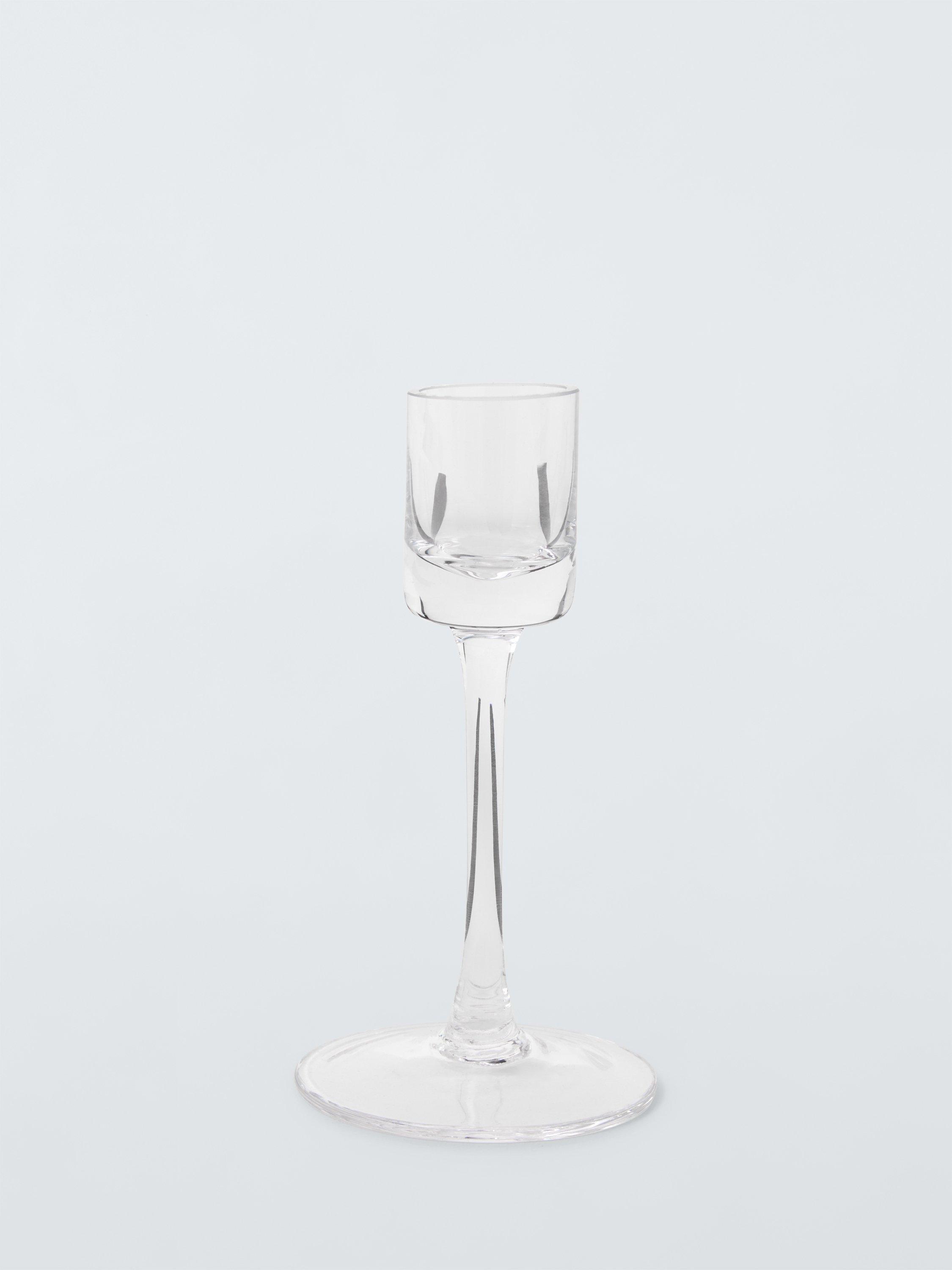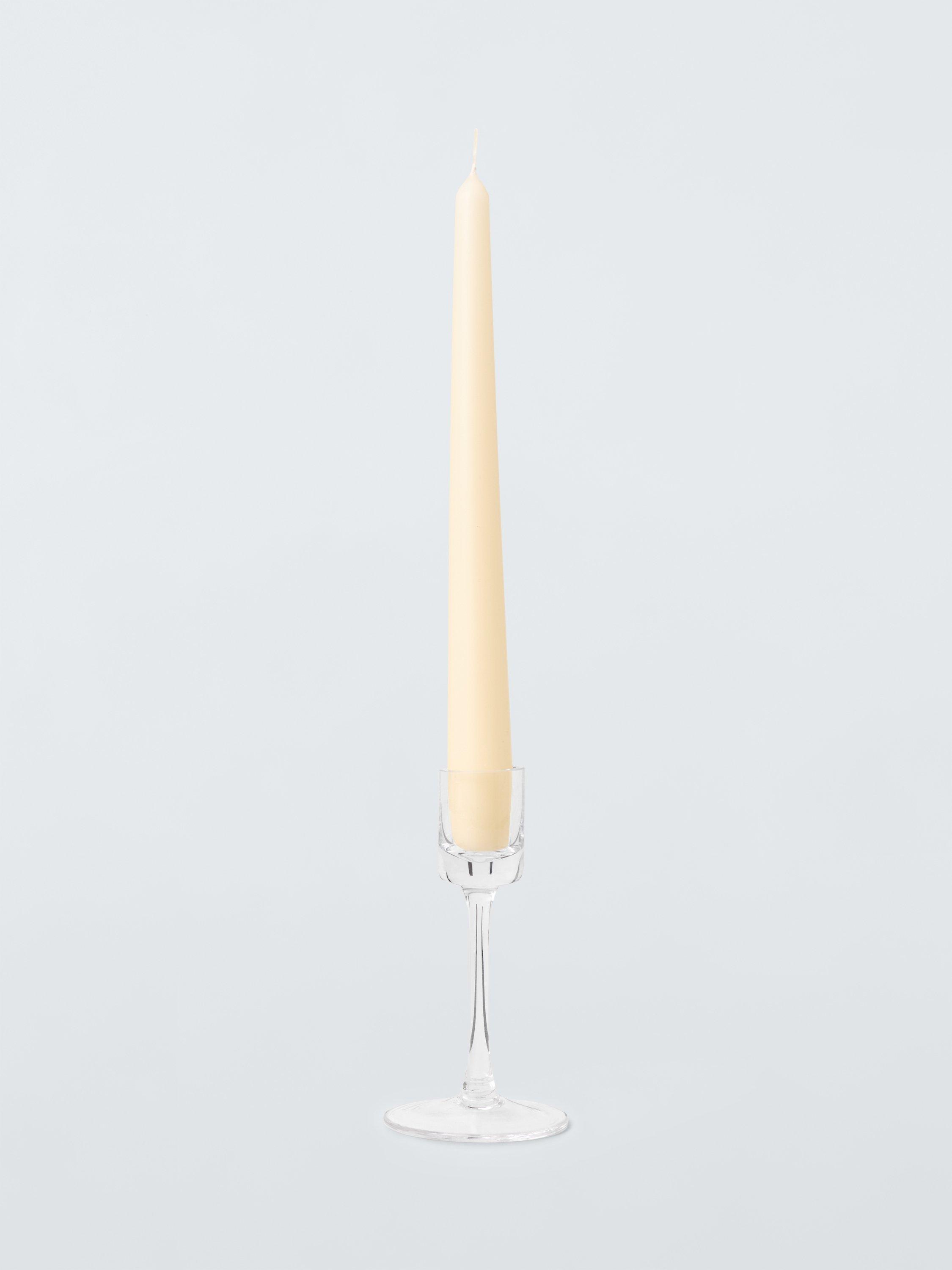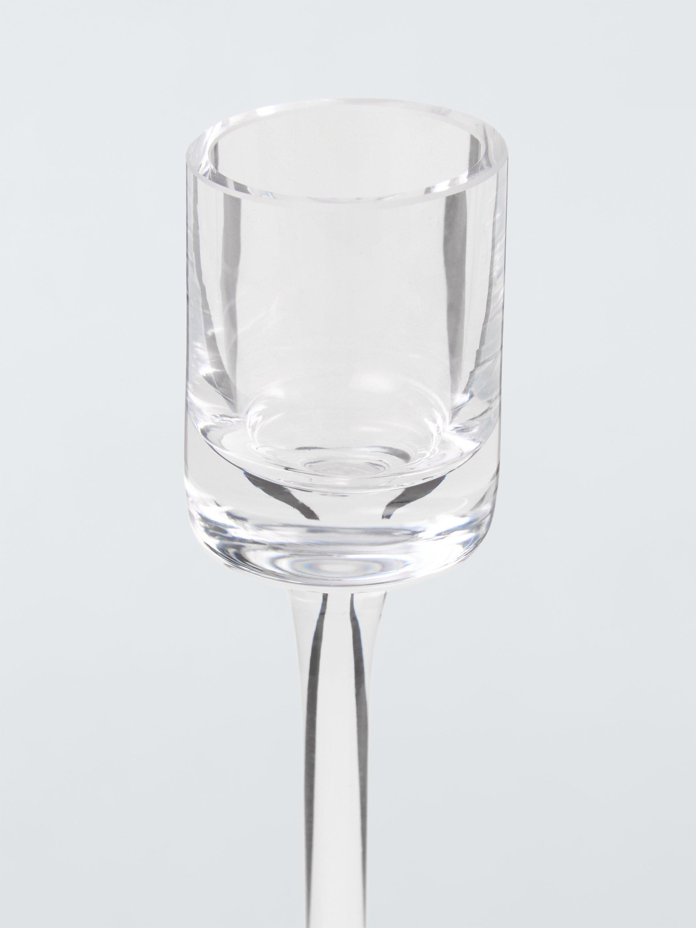 This simple, glass-stemmed candlestick reflects the light for a sophisticated and relaxing ambience.