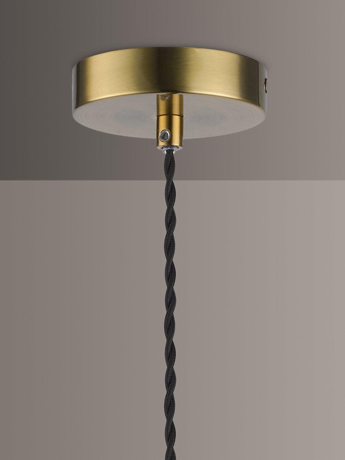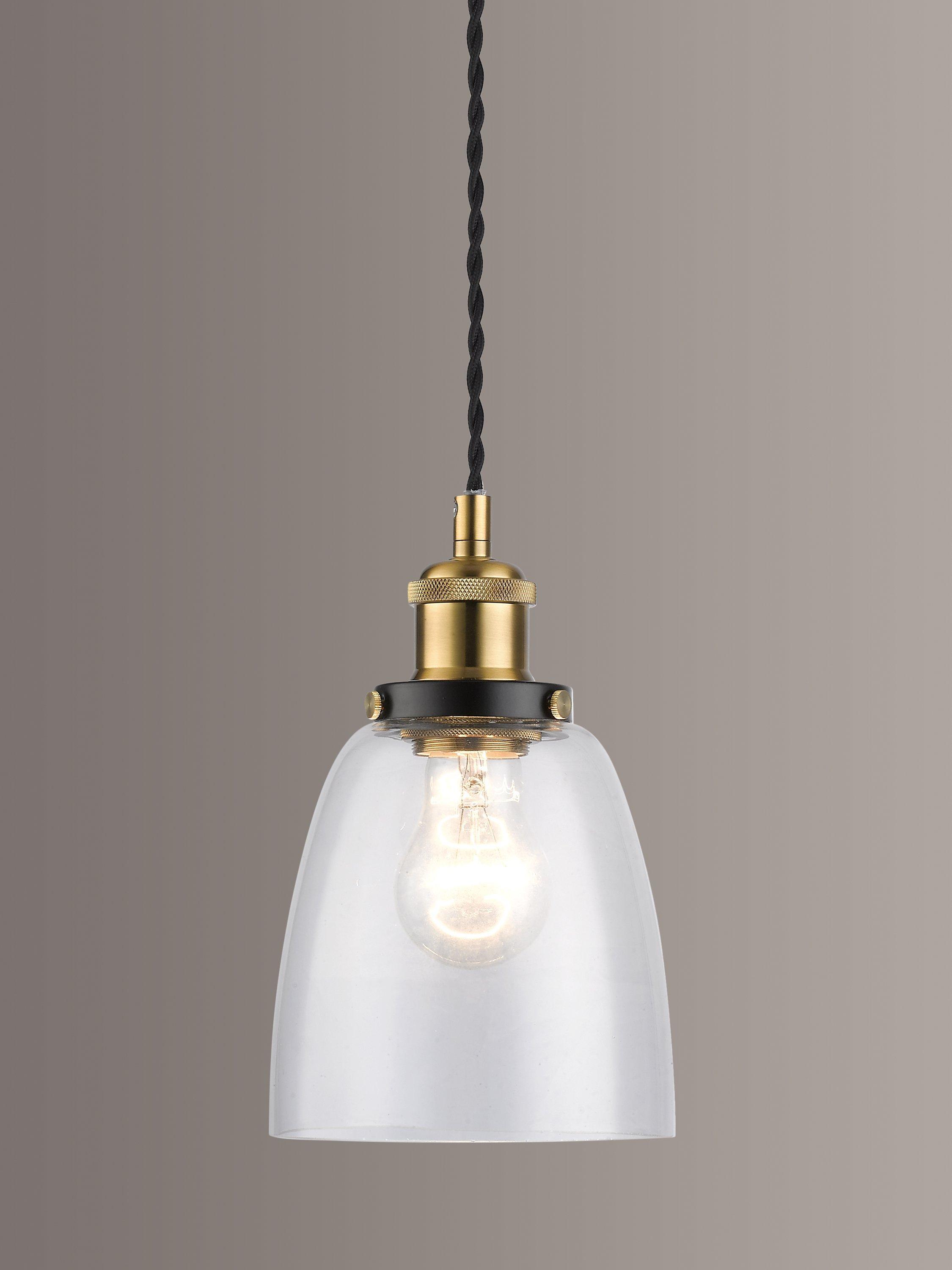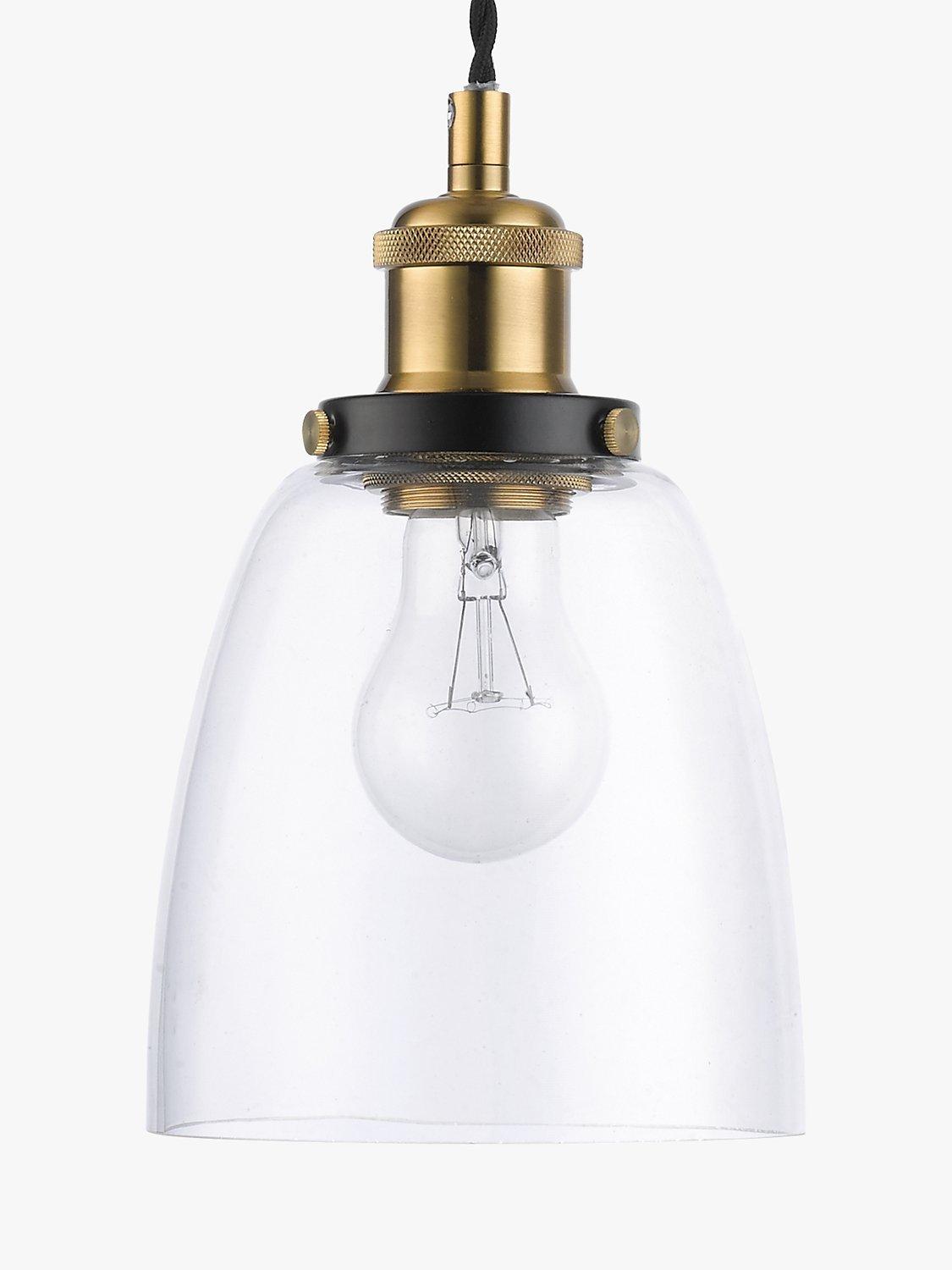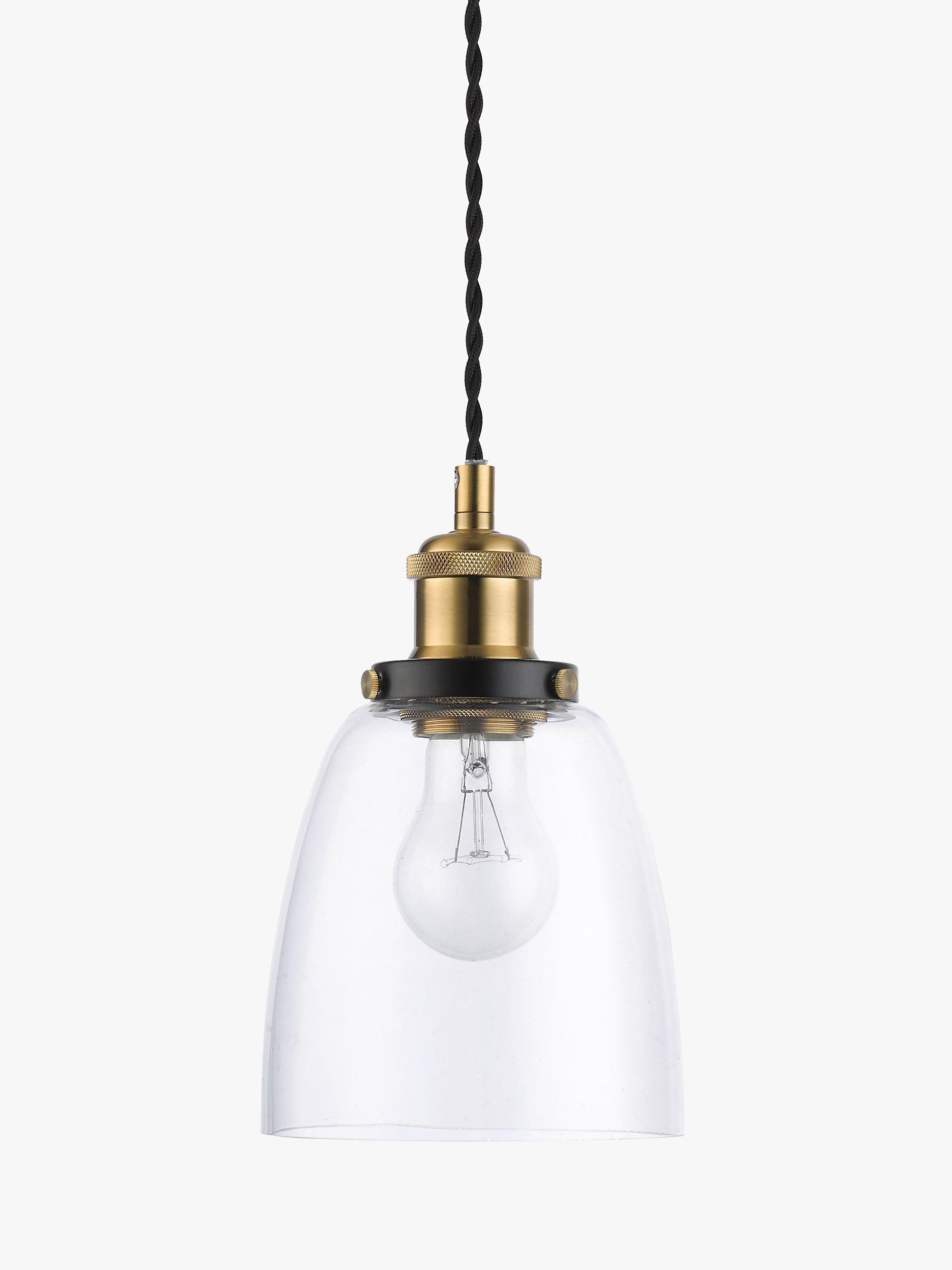 This simple glass pendant is an adaptable style for many interior styles, but the addition of brass-finished metal gives it a subtle, industrial edge. We think it will look best when installed directly over tables, especially with a decorative filament bulb to draw the eye.
