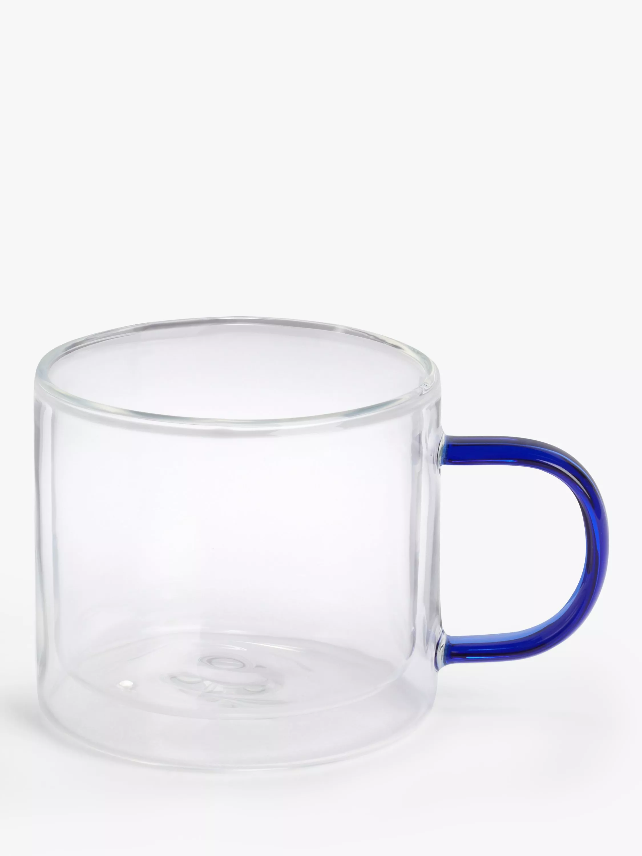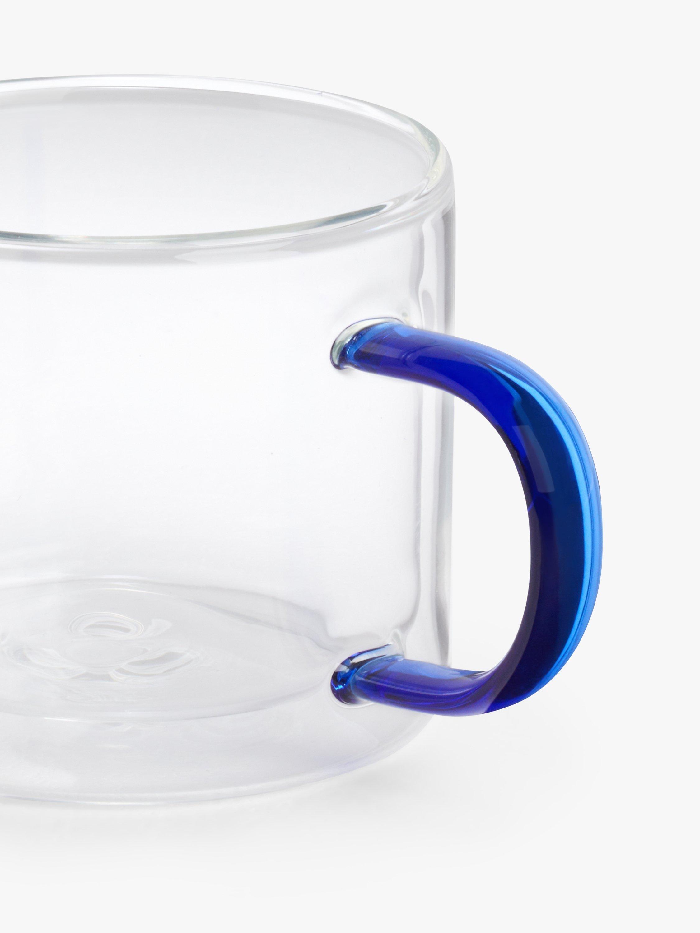 Coffee mug made of double-walled borosilicate glass to keep your beverage hot for longer and to protect your hand. Finished with a colourful handle, this design is microwave safe for easy everyday use.