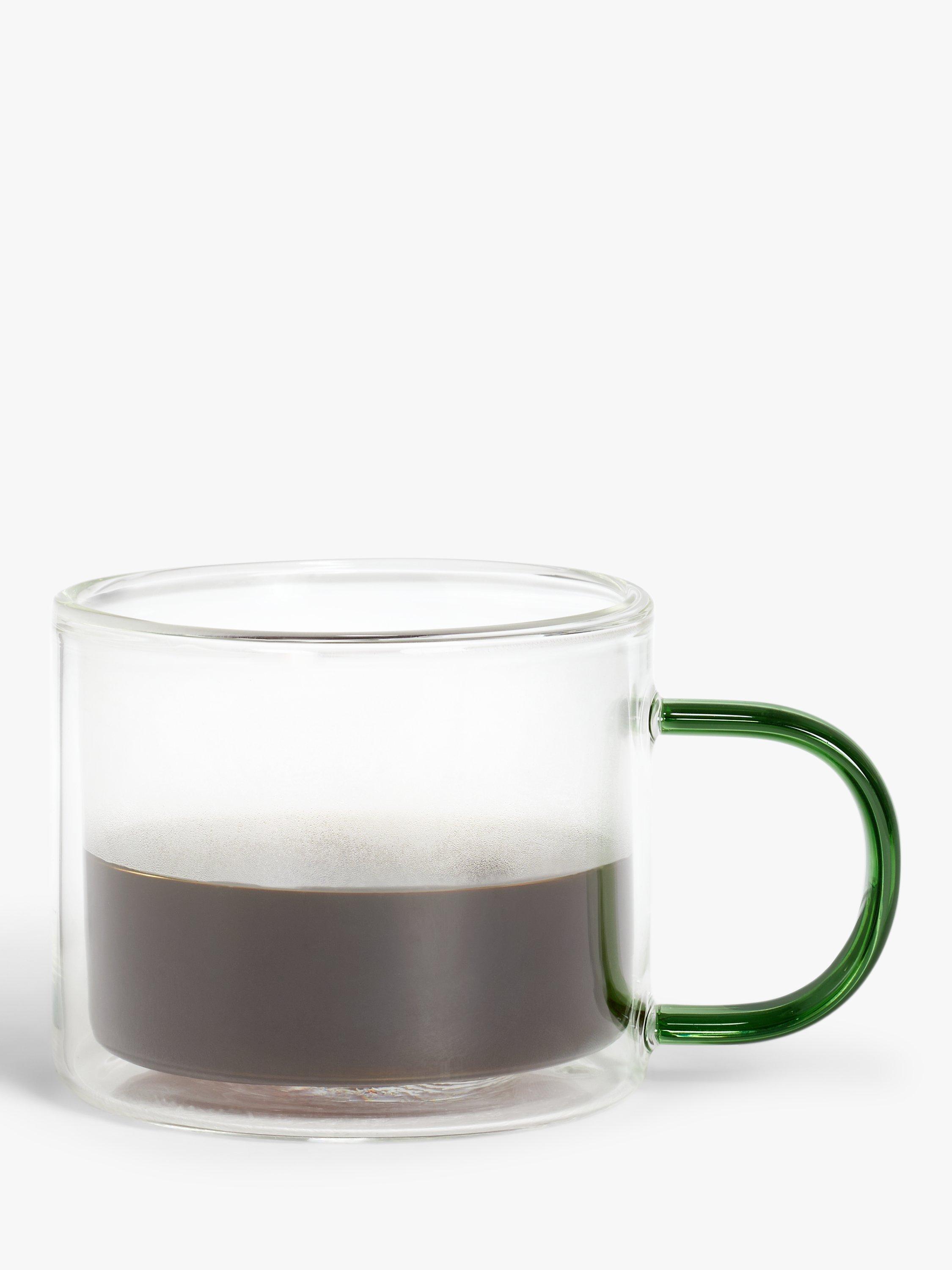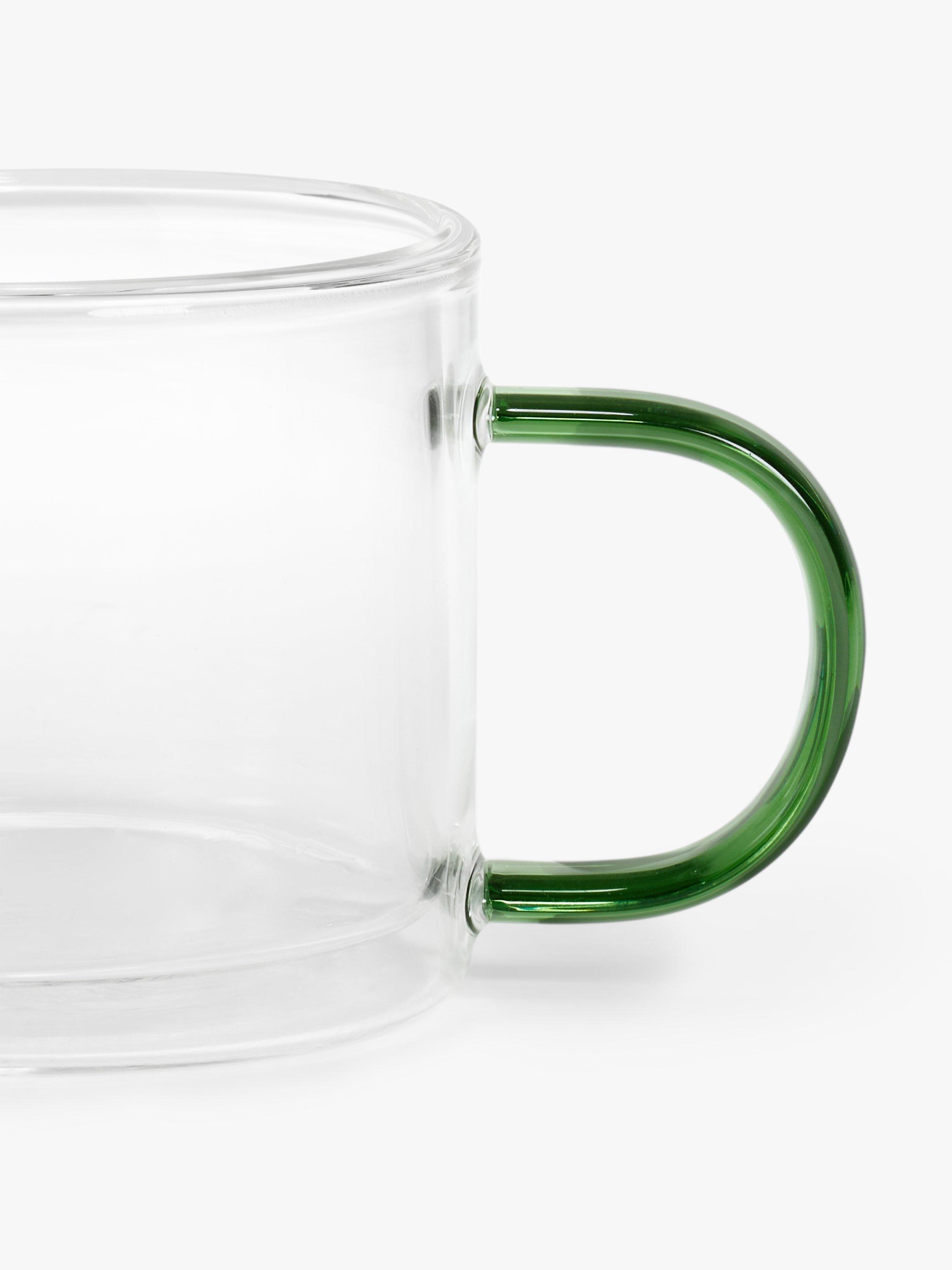 Coffee mug made of double-walled borosilicate glass to keep your beverage hot for longer and to protect your hand. Finished with a colourful handle, this design is microwave safe for easy everyday use.