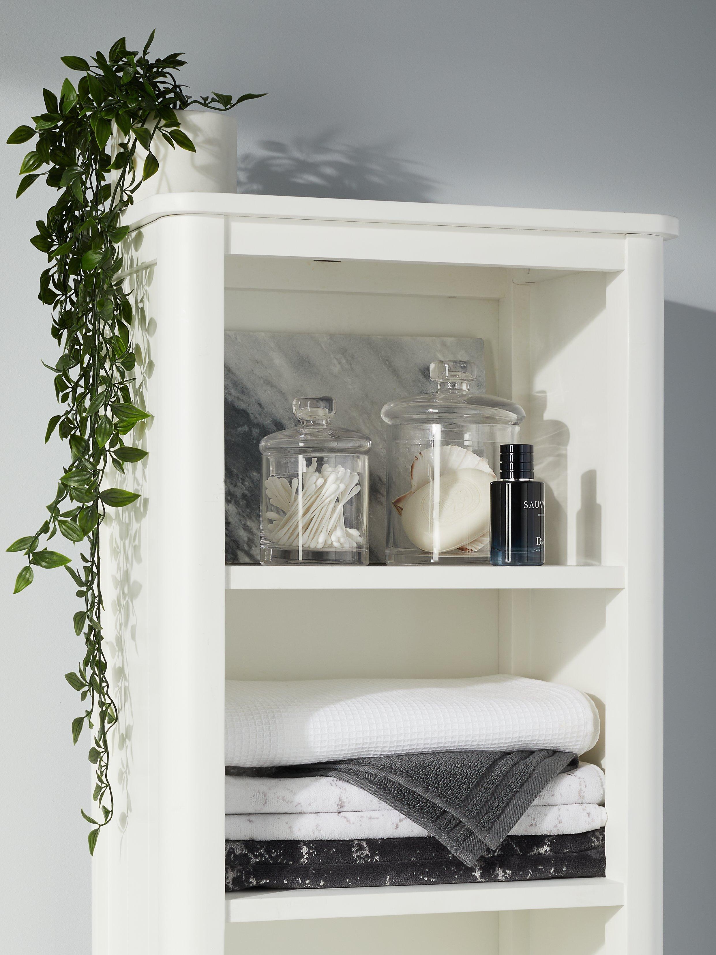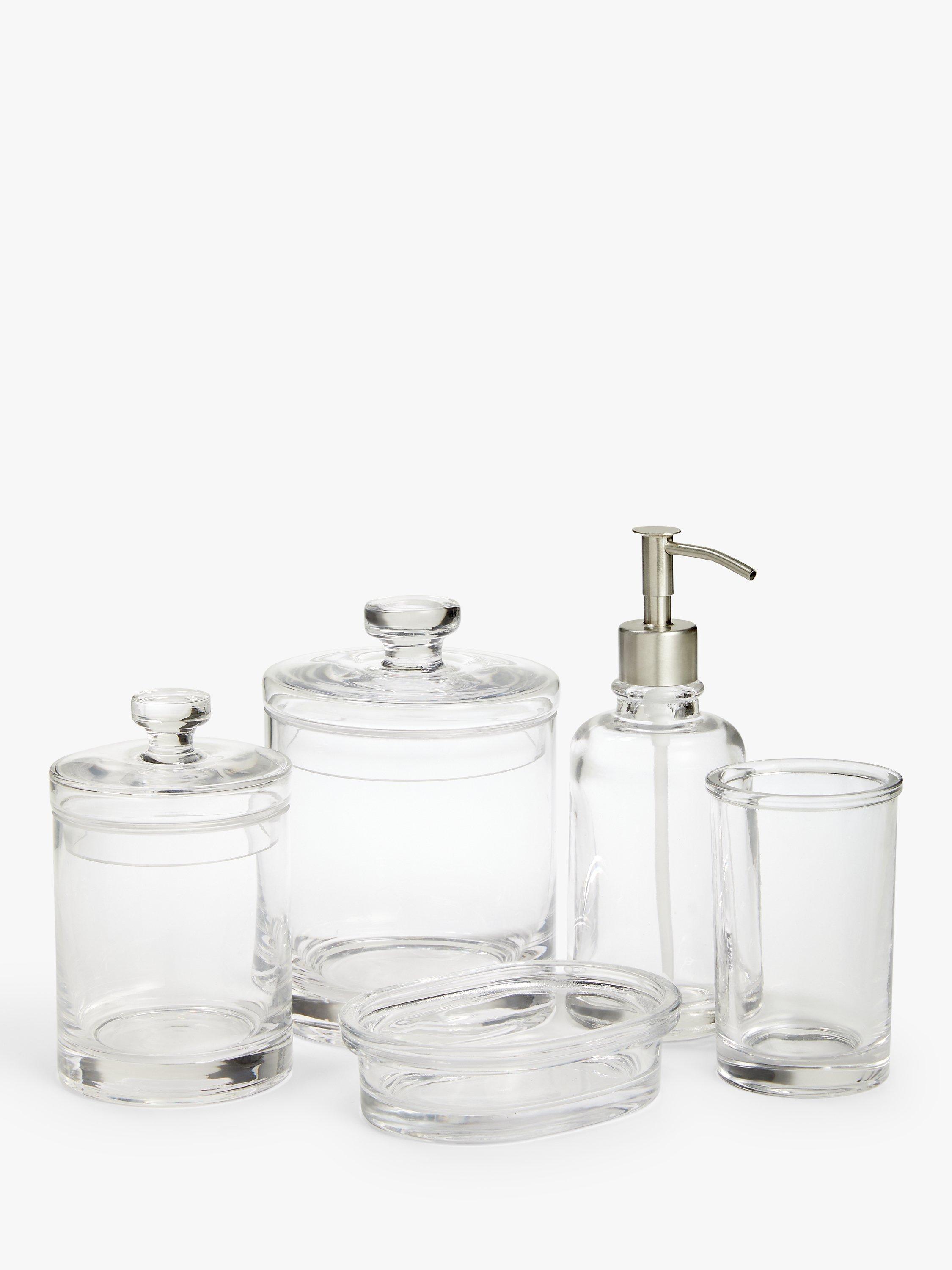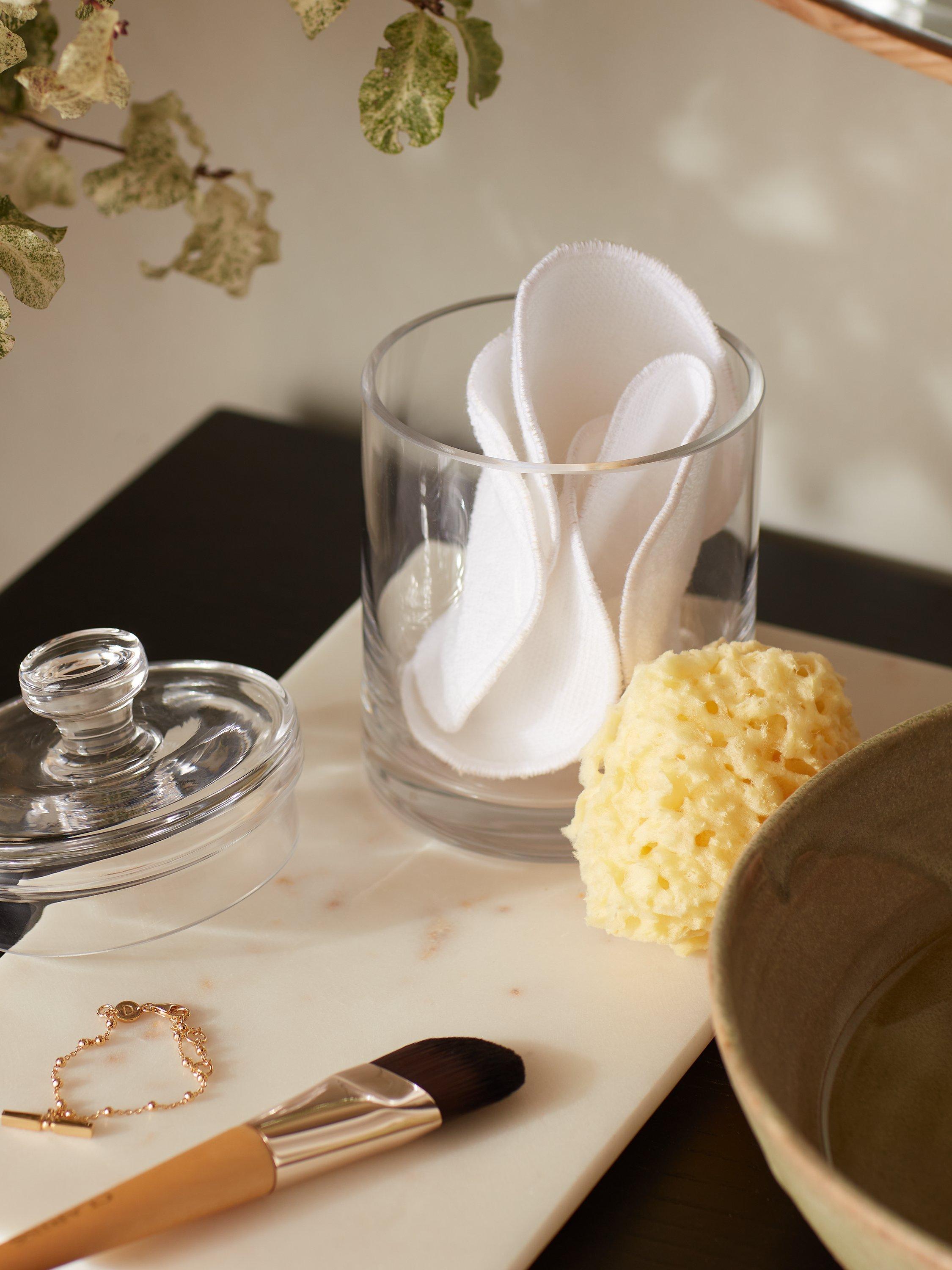 A simple glass jar, ideal for cotton buds, cotton pads, hair ties and other small items that might otherwise clutter your bathroom or dressing table.