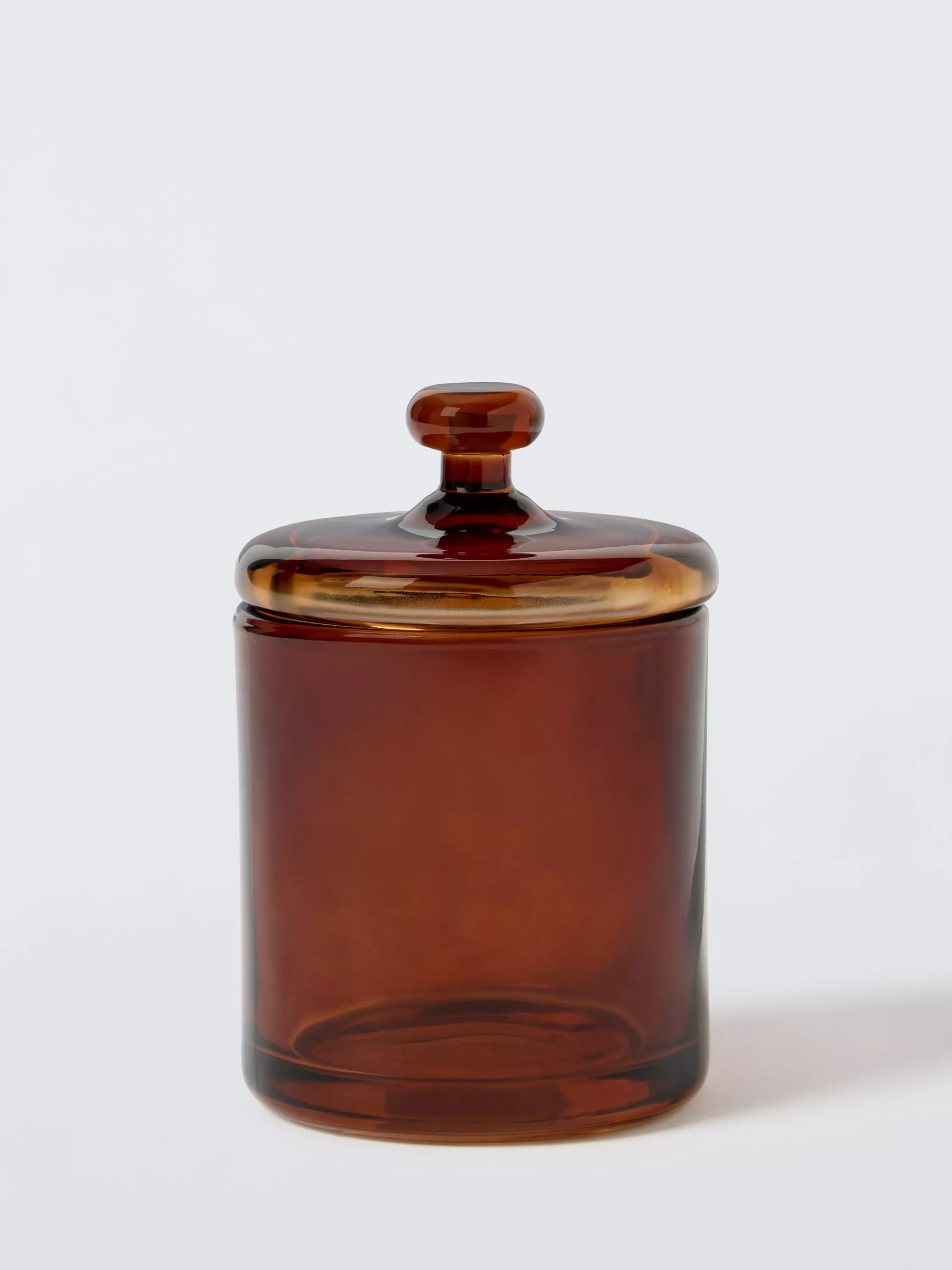 A range of bathroom accessories made in richly-coloured auburn glass for a warm and timeless apothecary vibe.