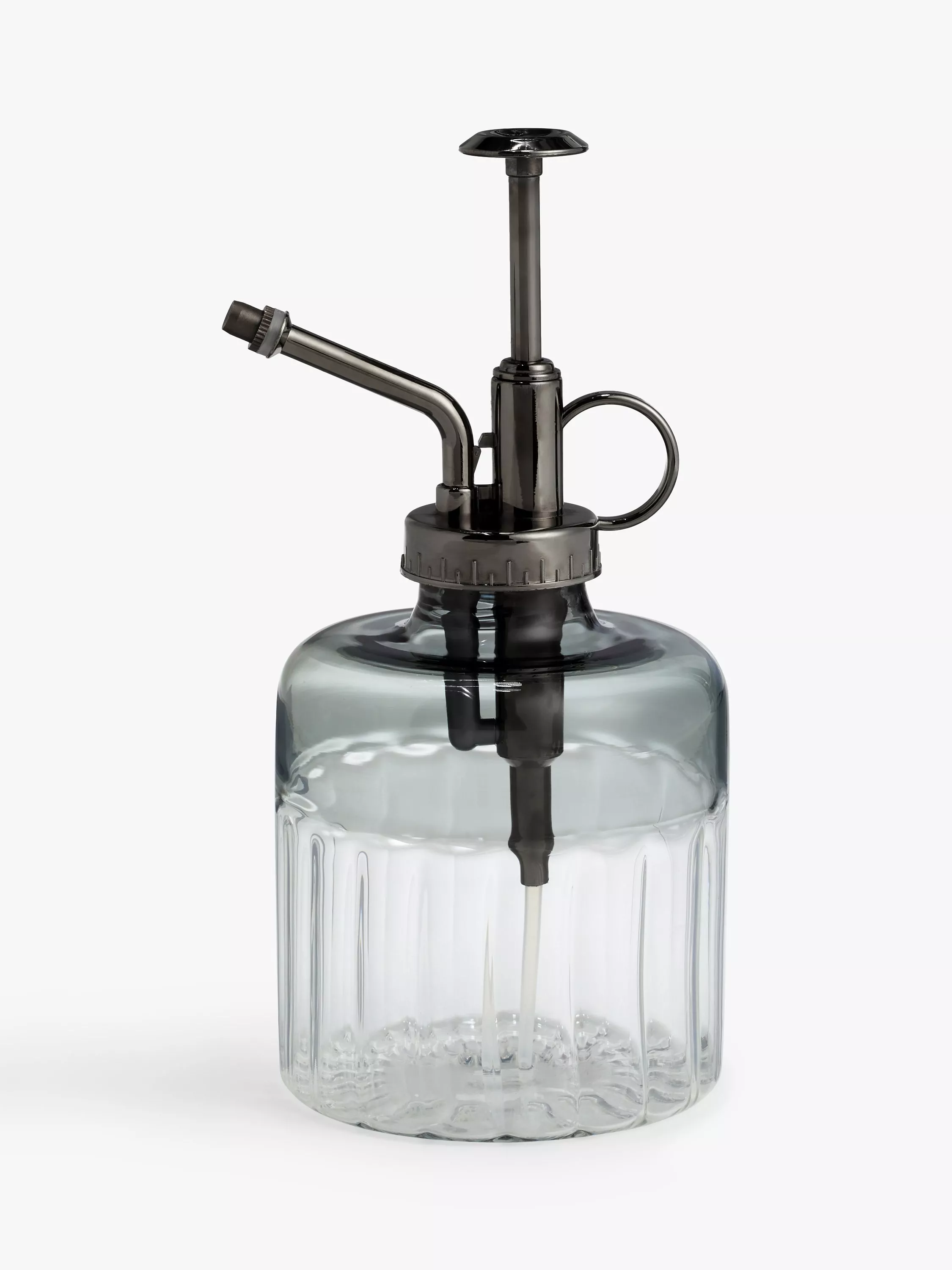 In a simple, glass design, this small pressure watering can comes with a convenient finger holder that makes it more comfortable to spray plants.