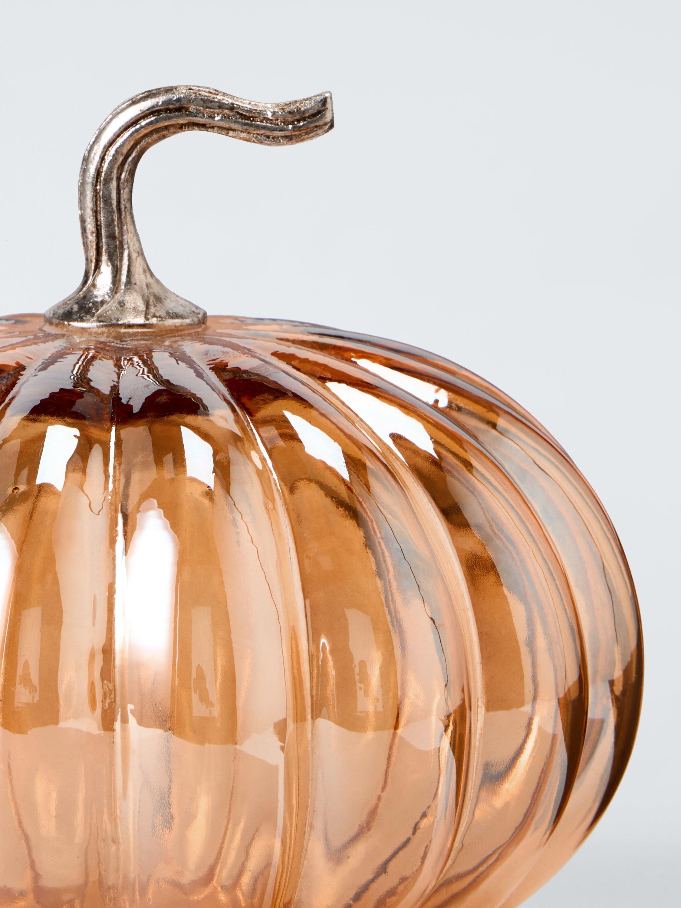 This decorative glass pumpkin comes in an pearlised finish.