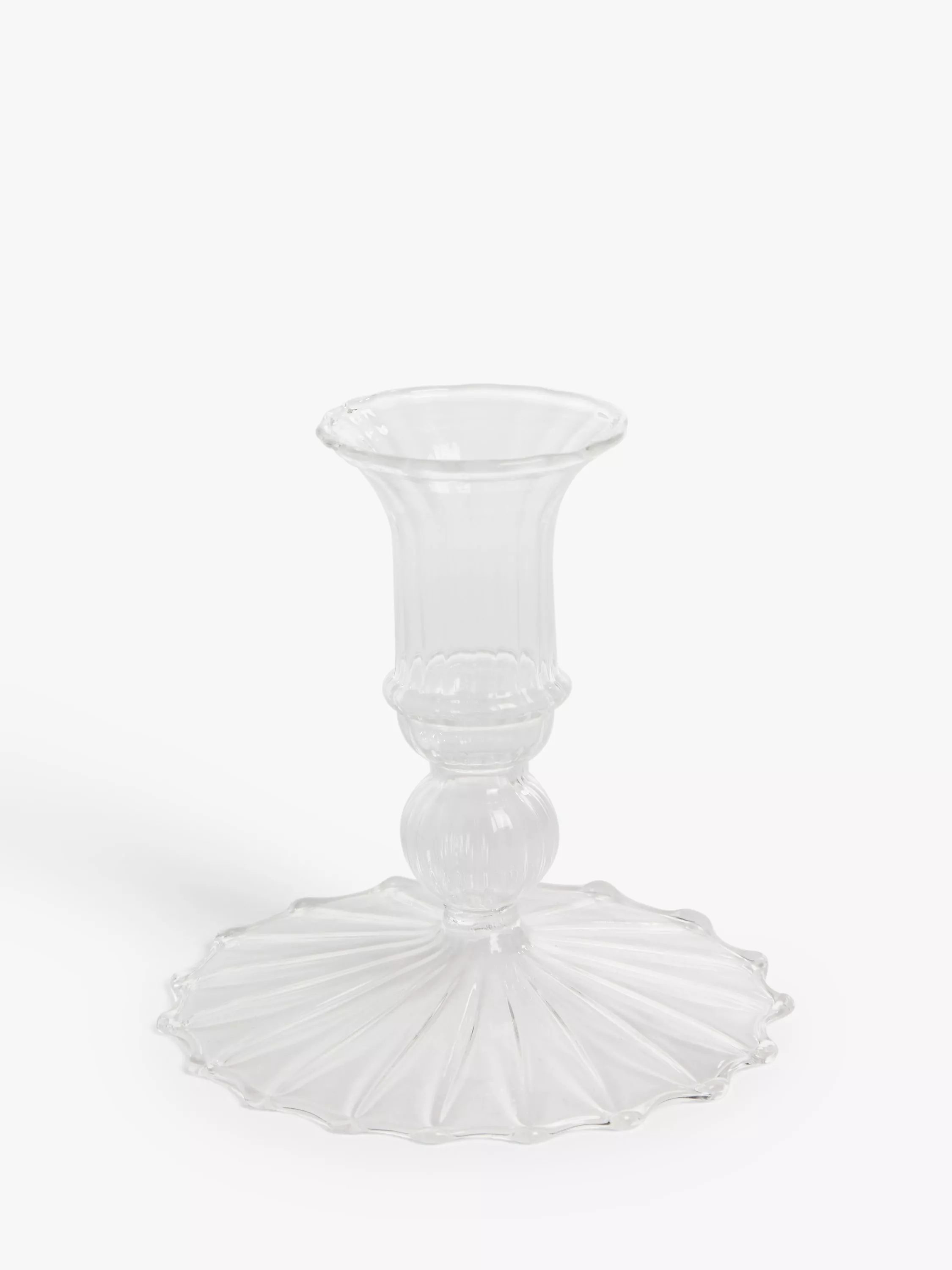 John LewisGlass Short Bobbin Candlestick Holder, Clear