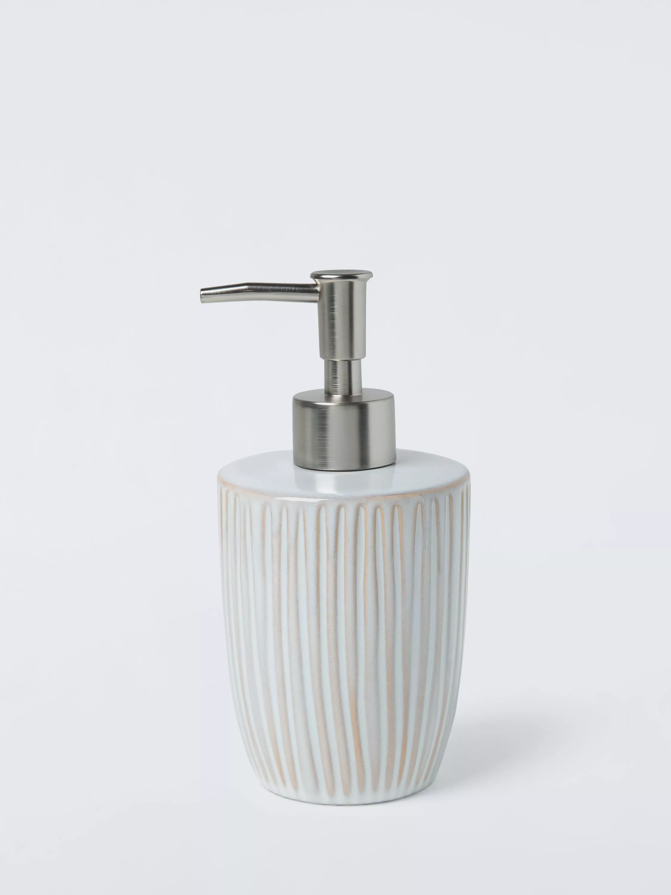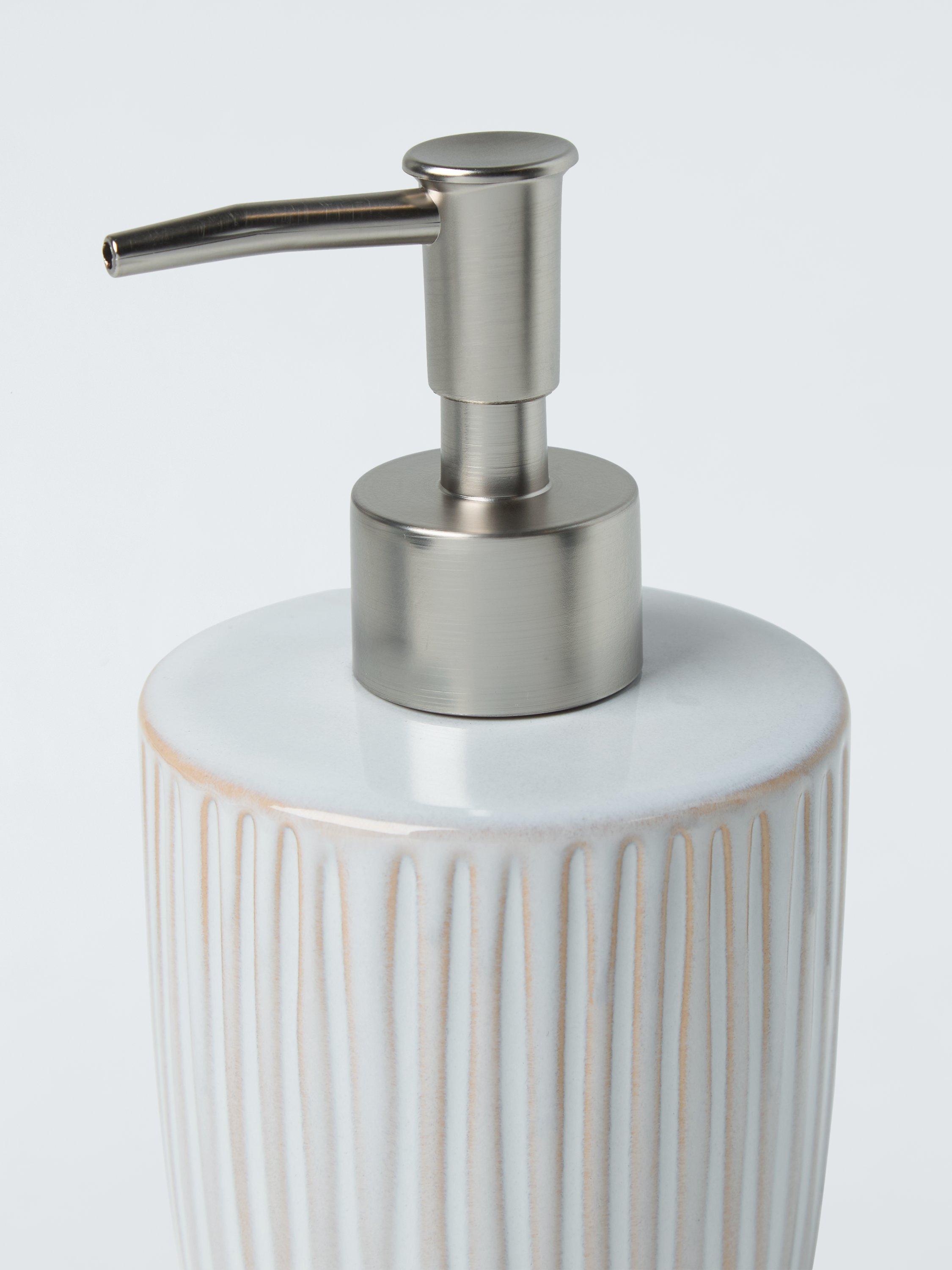 Give your bathroom a relaxed feel with this beautifully glazed, ribbed soap dispenser in natural tones.