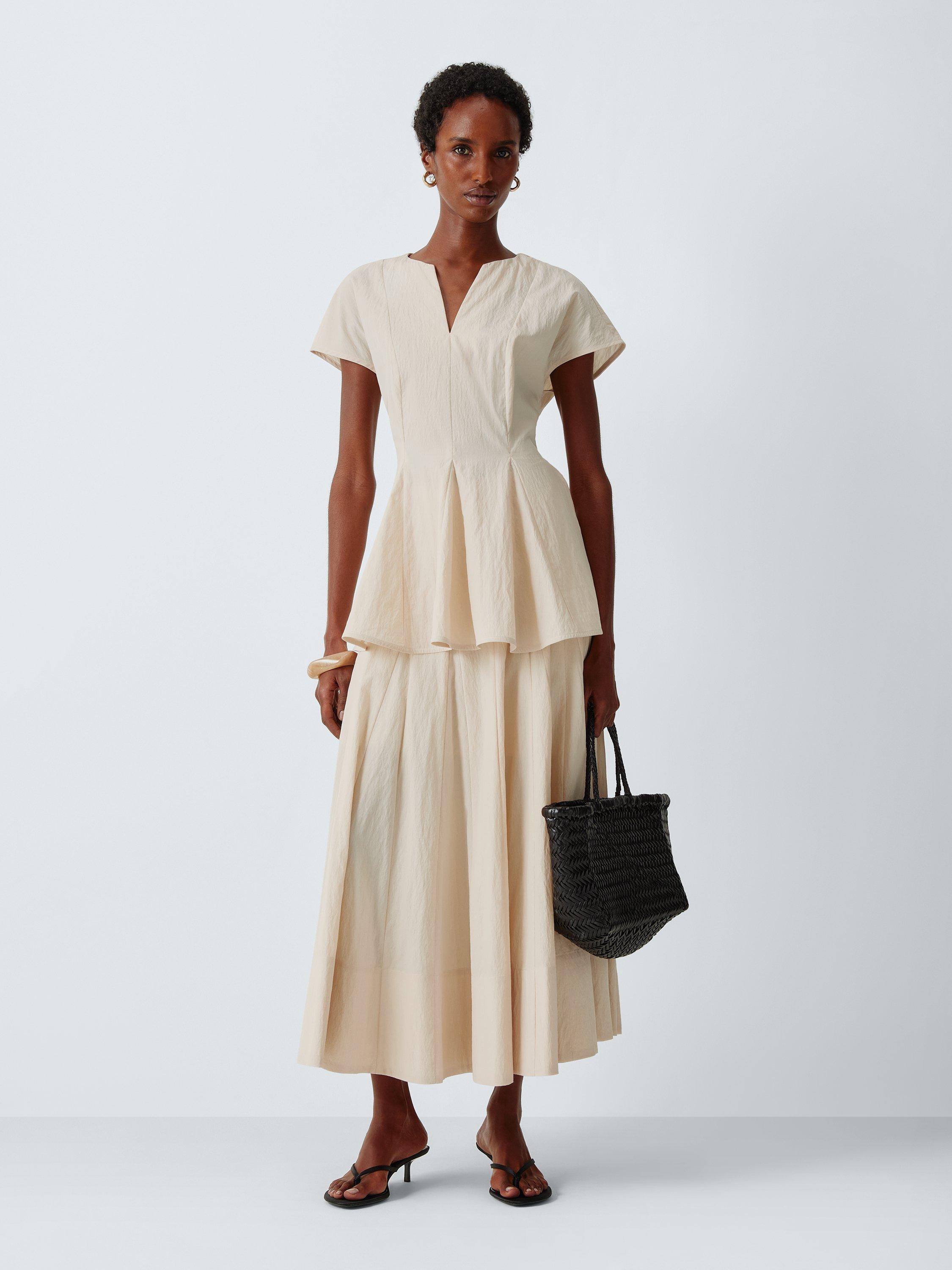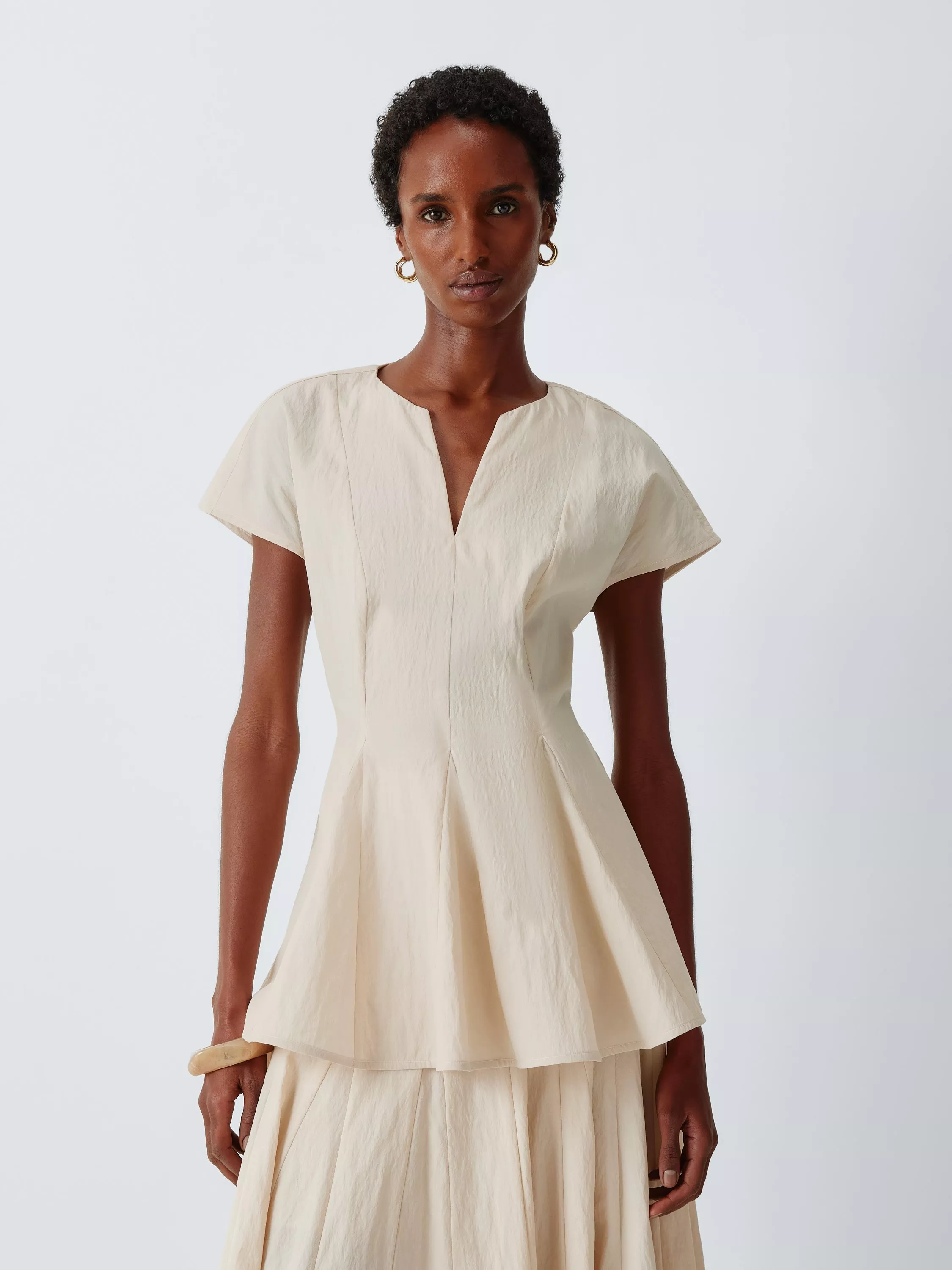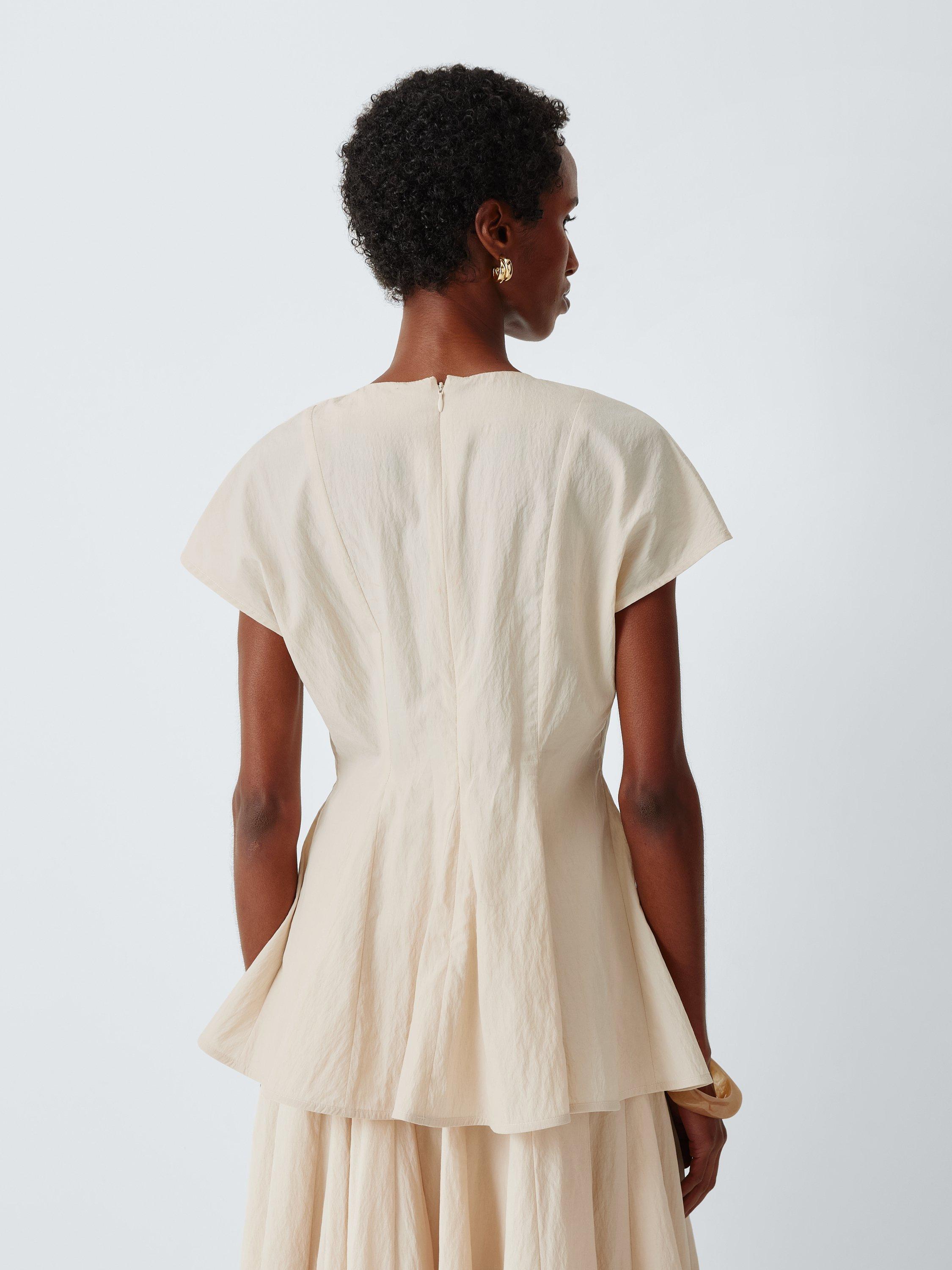 Godet pleating creates a sophisticated flared hemline and a sense of fluid movement with this reimagined peplum top. It creates a flattering silhouette that holds its shape from morning meetings to evening events.