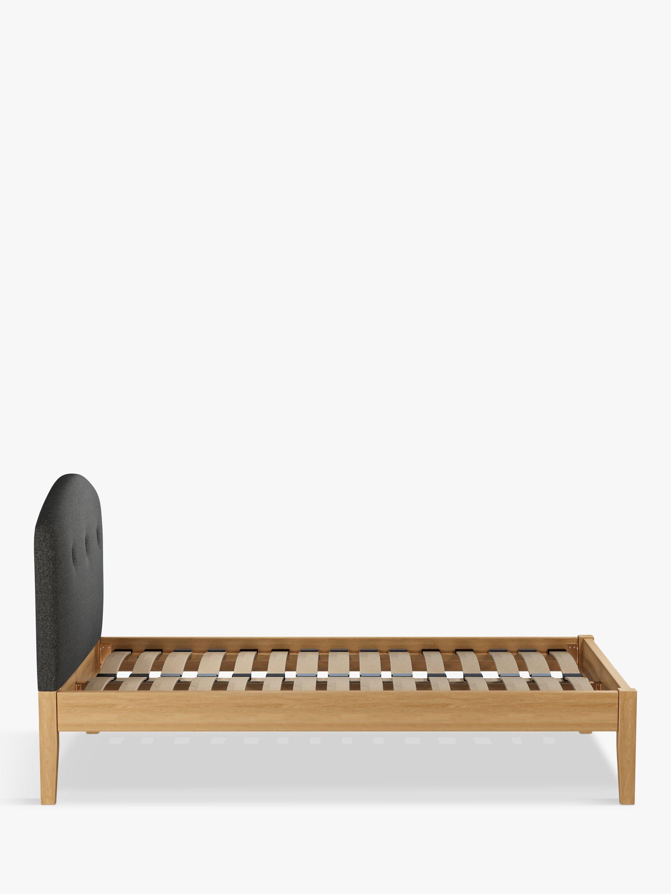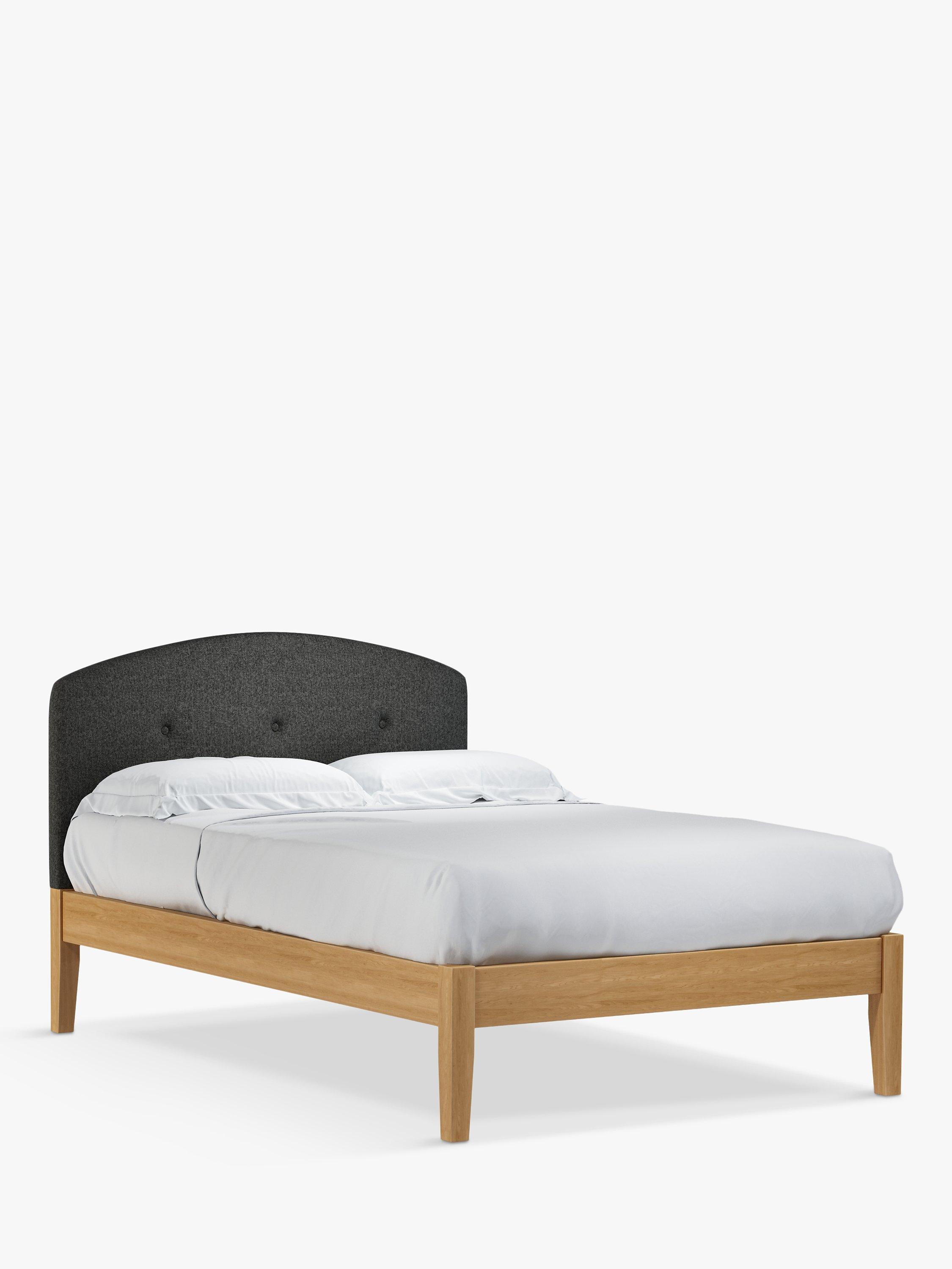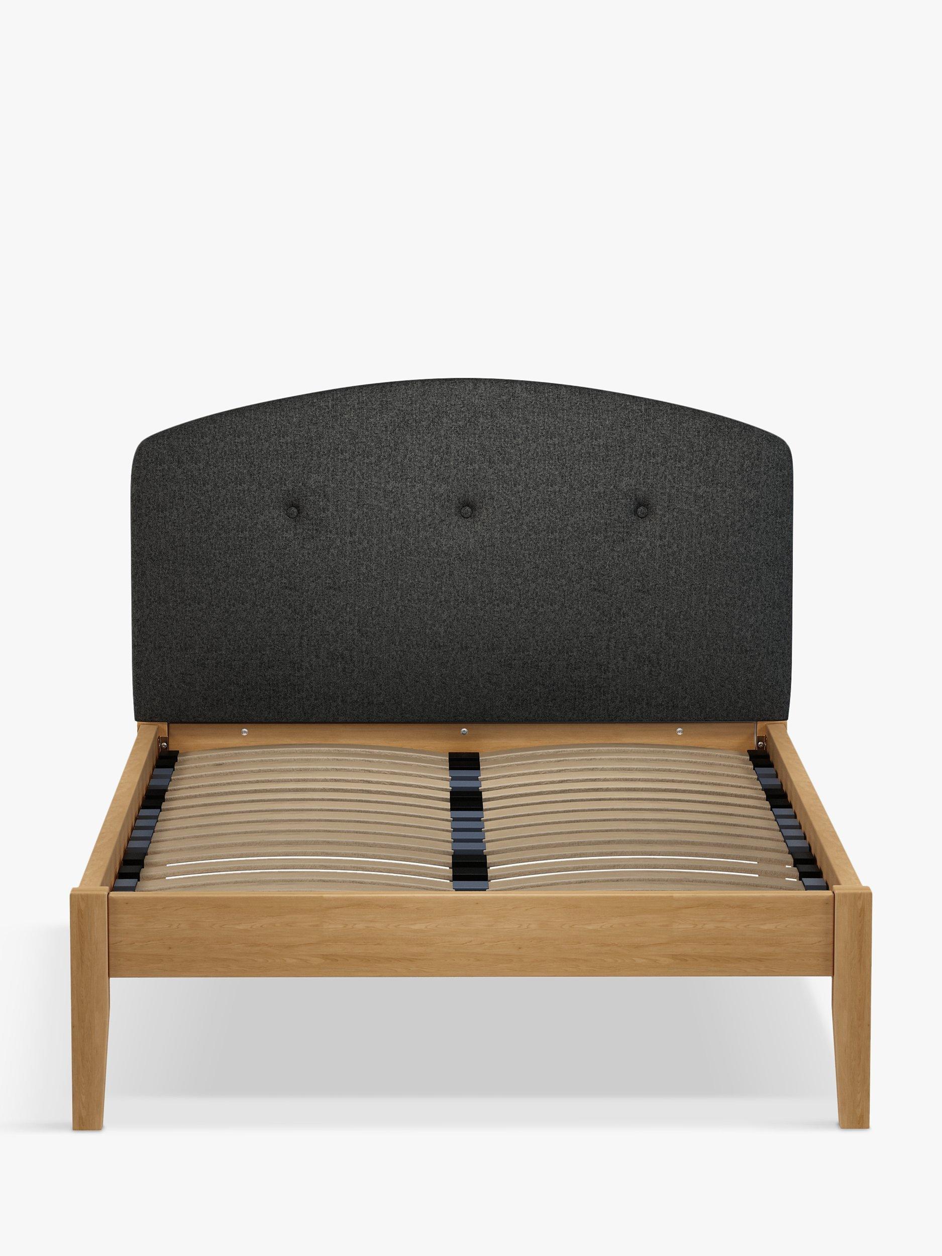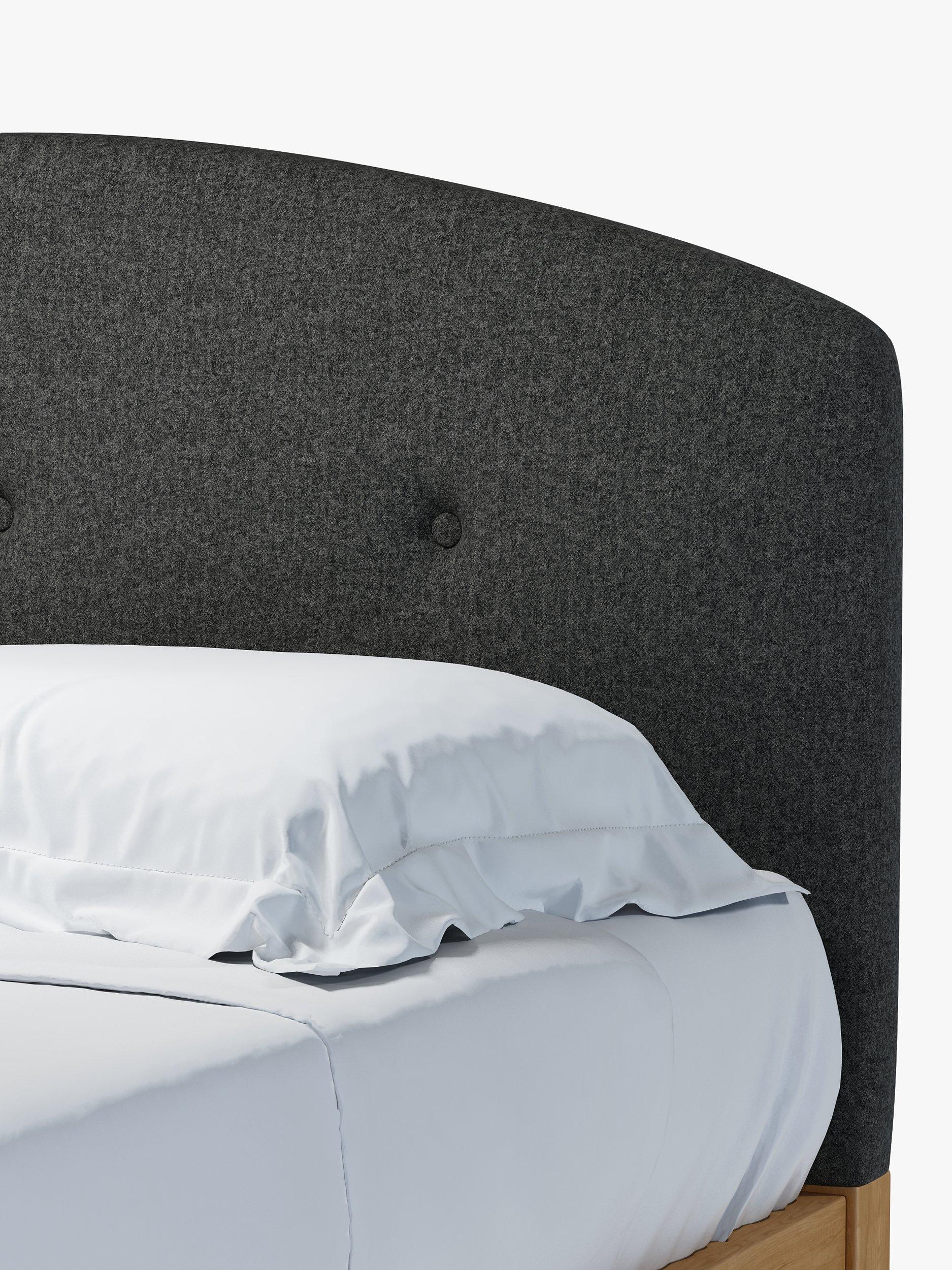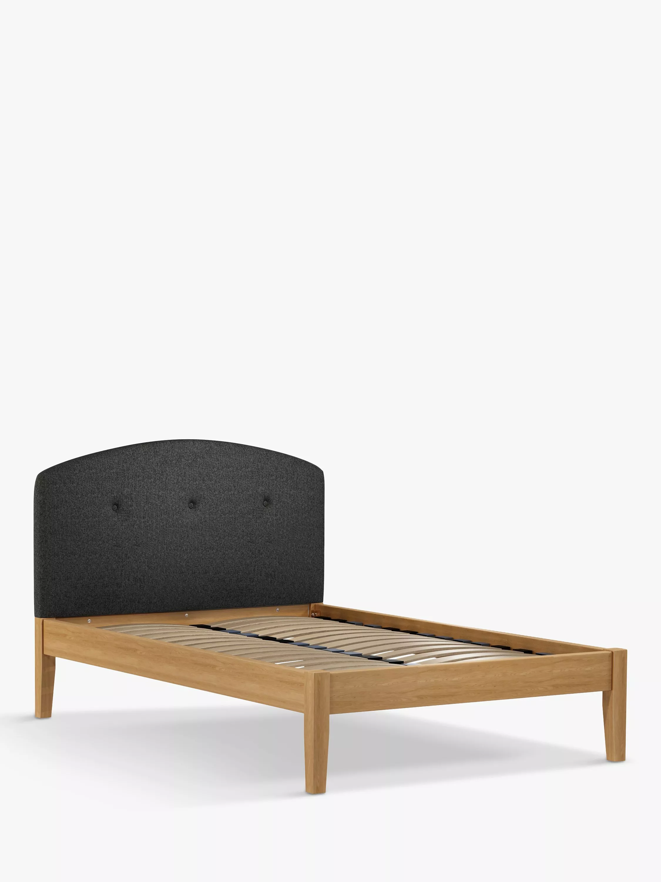 Meet Grace Kitami, our bed frame which is designed with an upholstered headboard and a sturdy solid oak base. It's a classic shape, but the gently curved and well-padded headboard gives it a modern edge. It's accented with button detailing and it can be upholstered in a fabric of your choice. Sprung slats in the base provide a supportive and responsive foundation for your mattress.