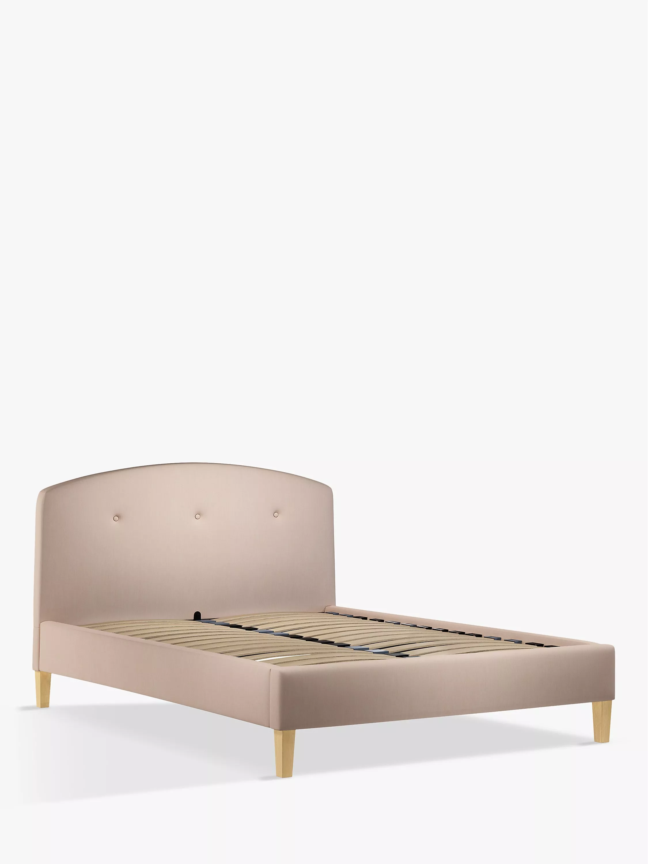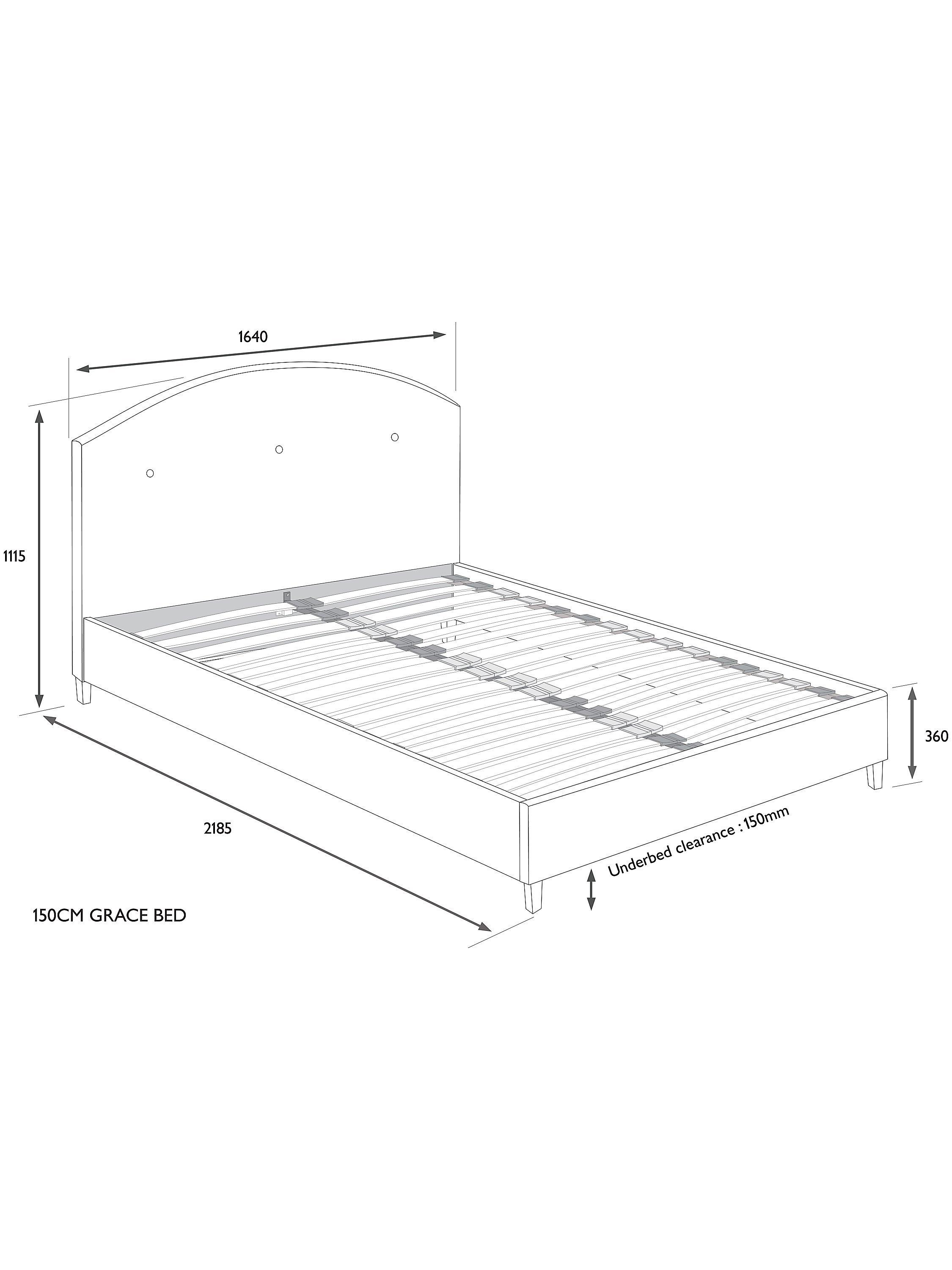 The Grace bed frame has an understated sophistication to its design, thanks to button detailing on its curved headboard. Featuring sprung slats that offer additional support for you and your mattress, it's supported by robust wooden legs for a durable finish.