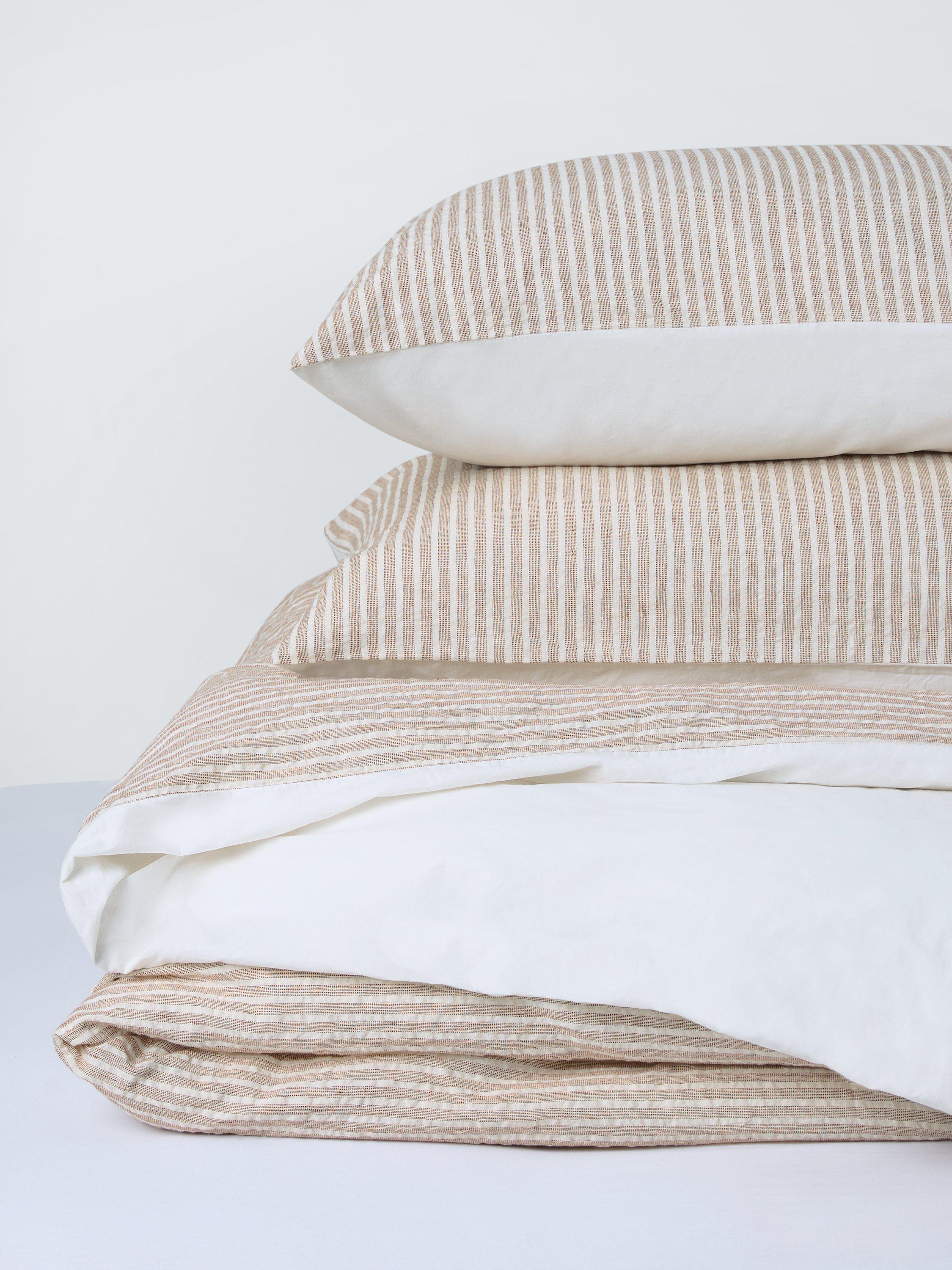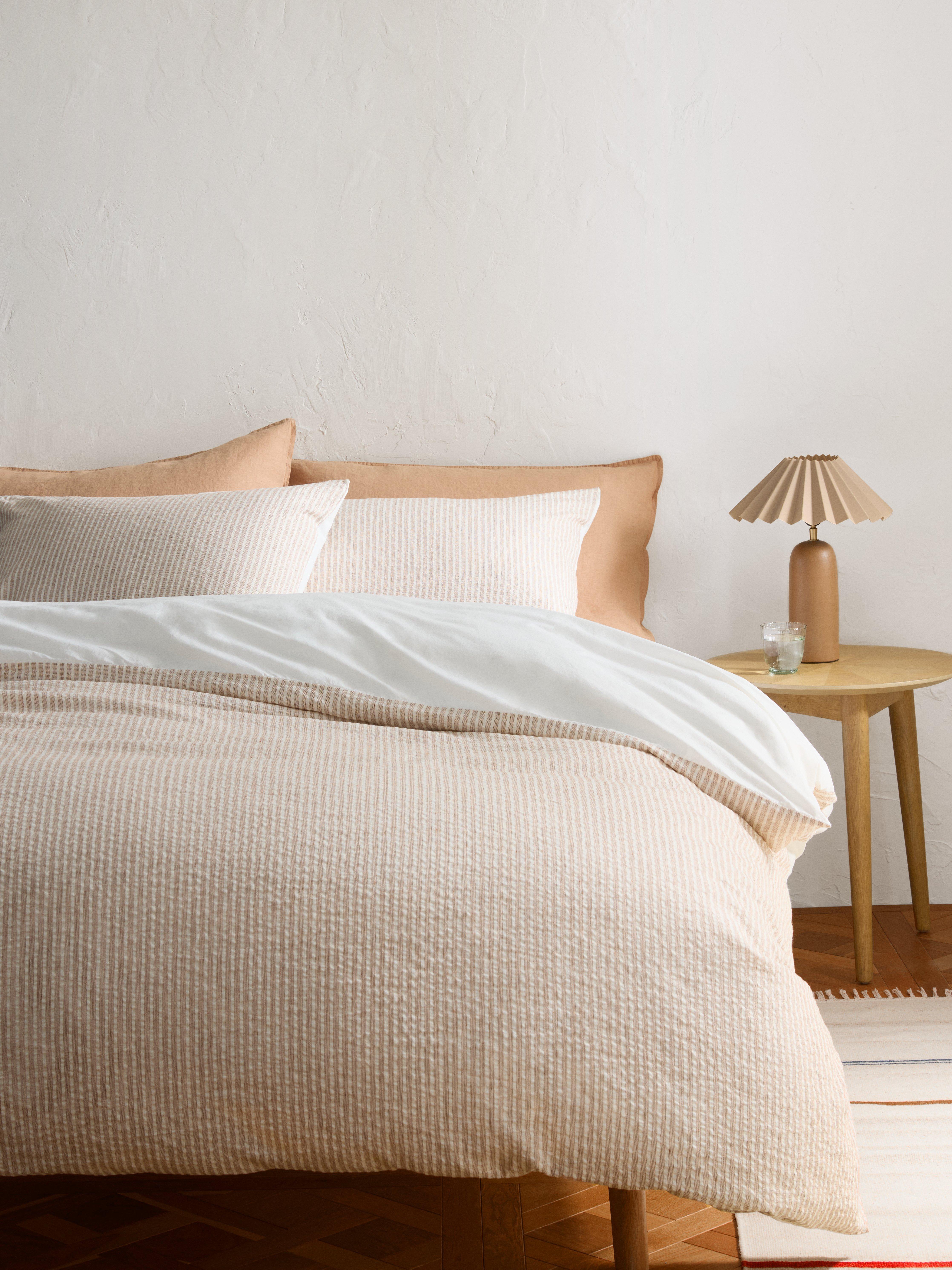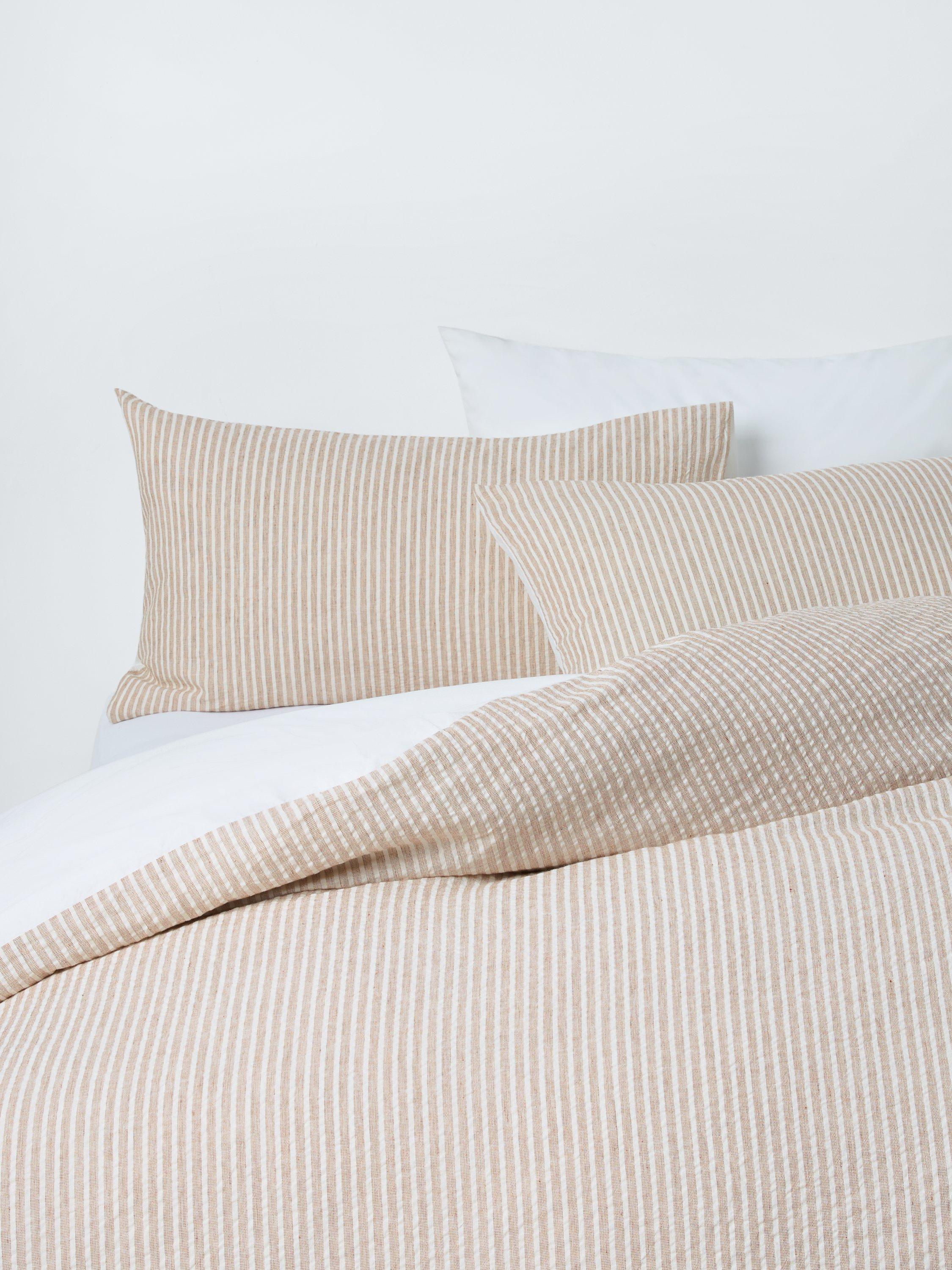 This beautiful striped seersucker bedding offers relaxed style and timelss look. The reverse is plain.