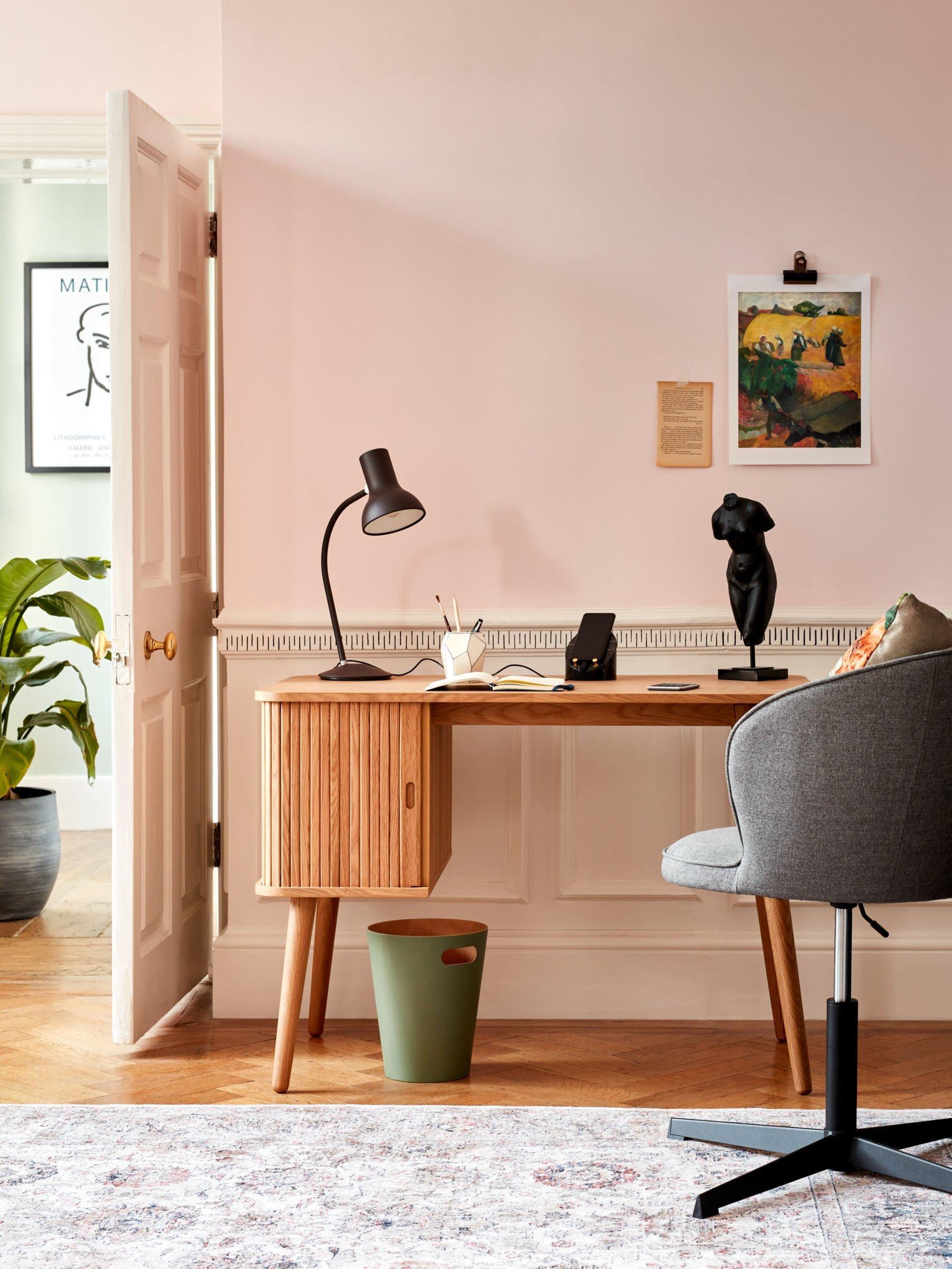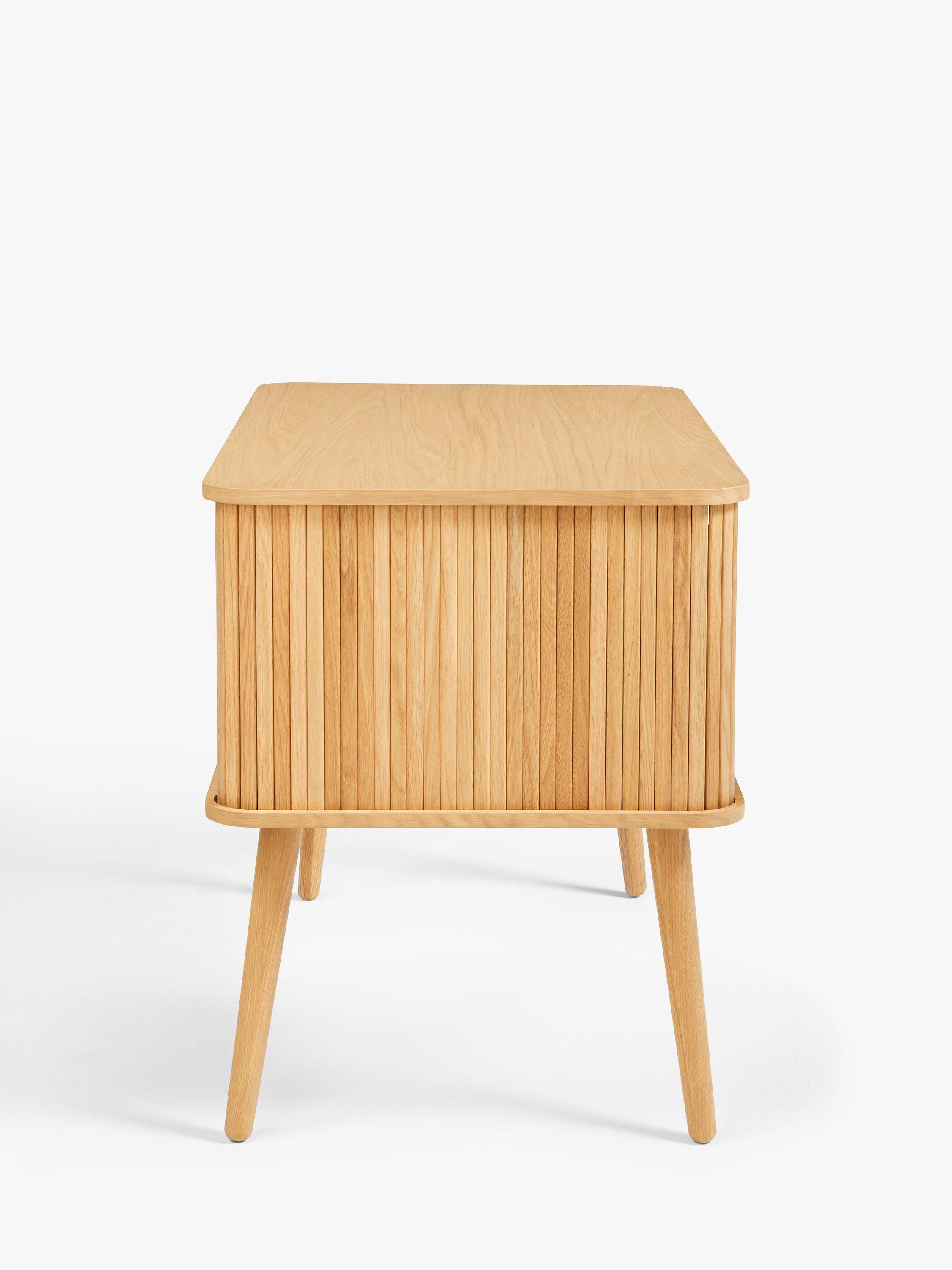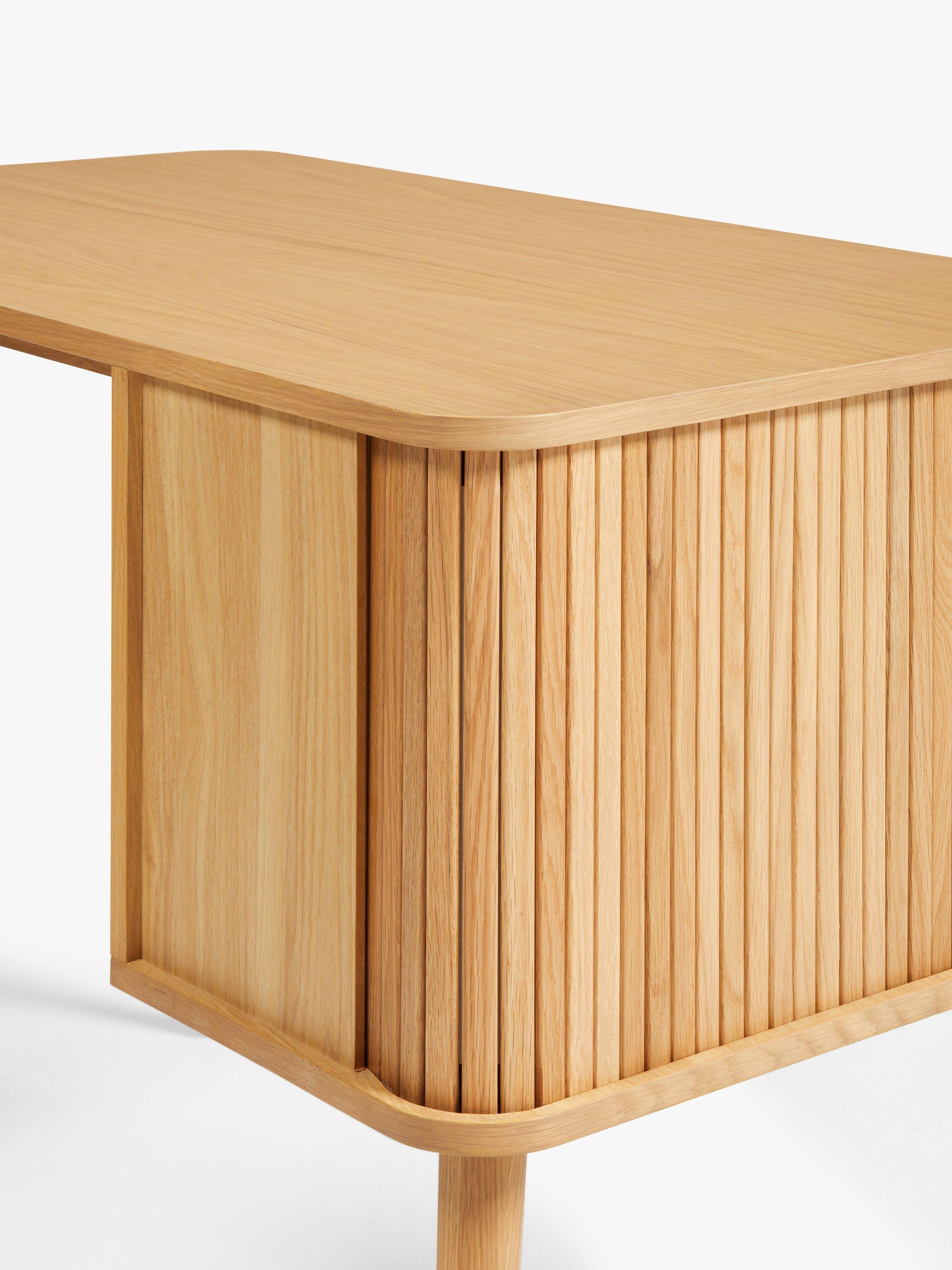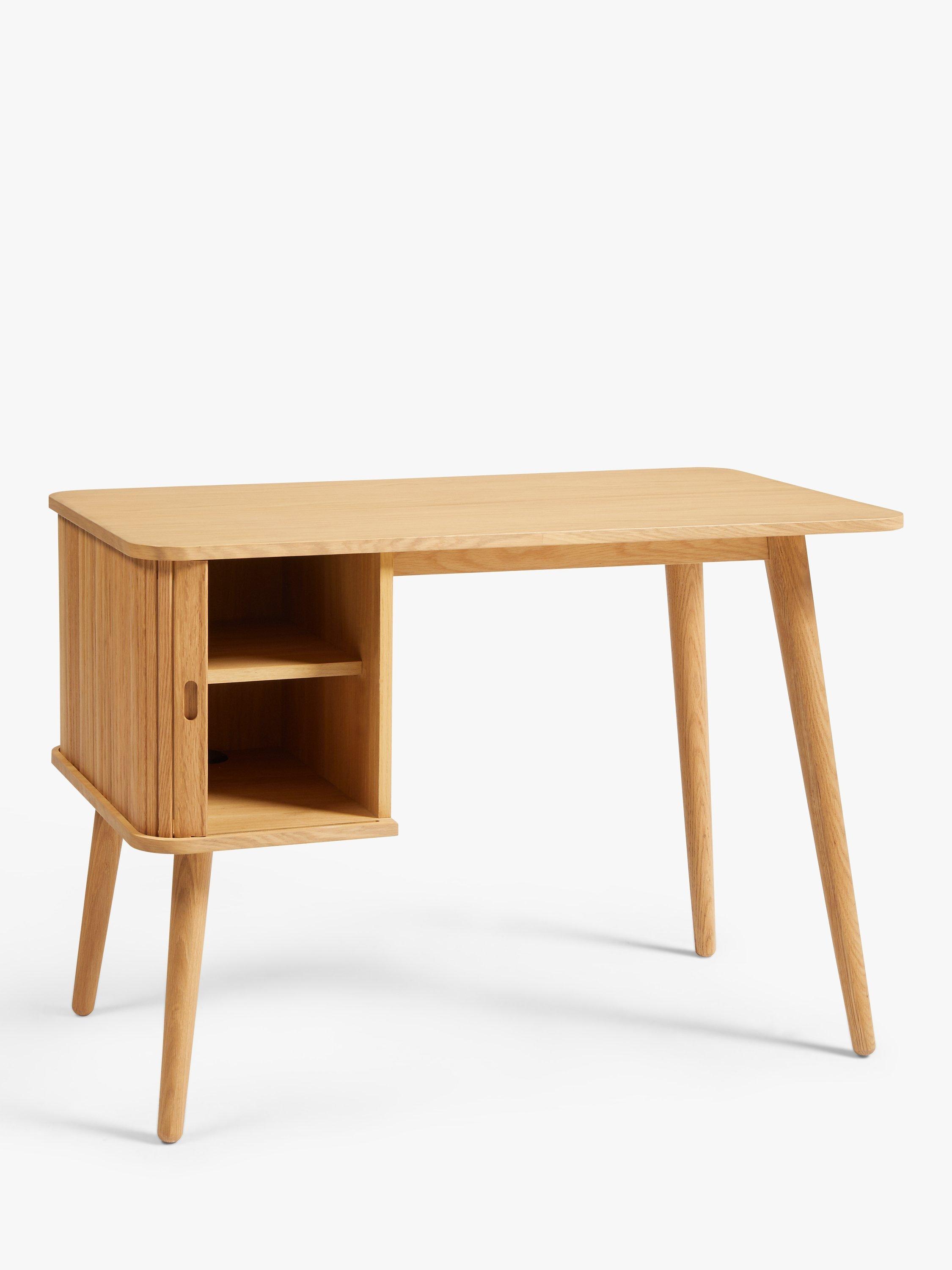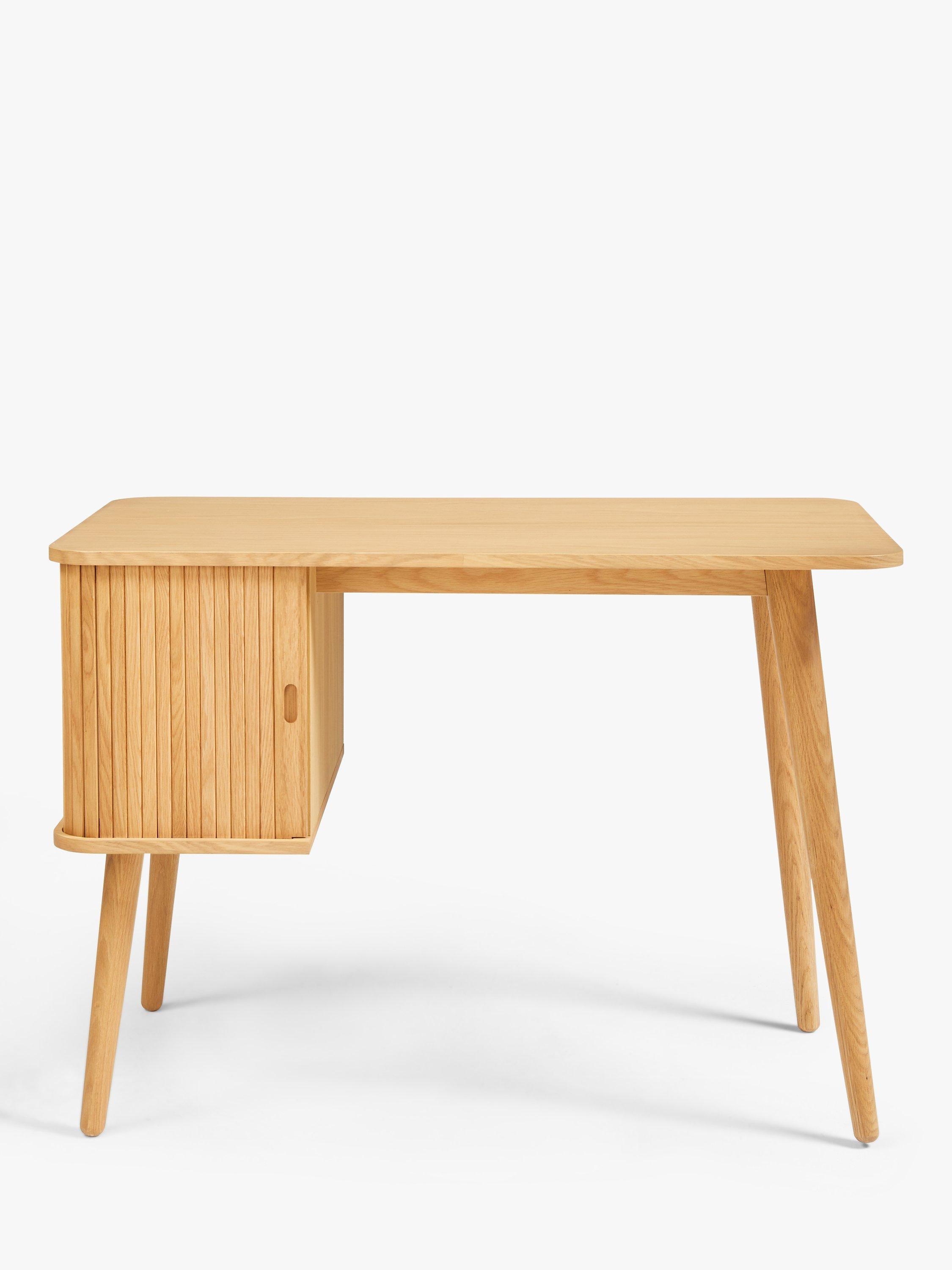 Built from high-quality wood in a veneered finish, this is a compact and functional desk for your home office. The cabinet section is designed with a slatted door that glides open for easy access and there's an adjustable shelf inside. We like the spindle-shaped, tapered legs that celebrate sleek, Scandi-inspired design.