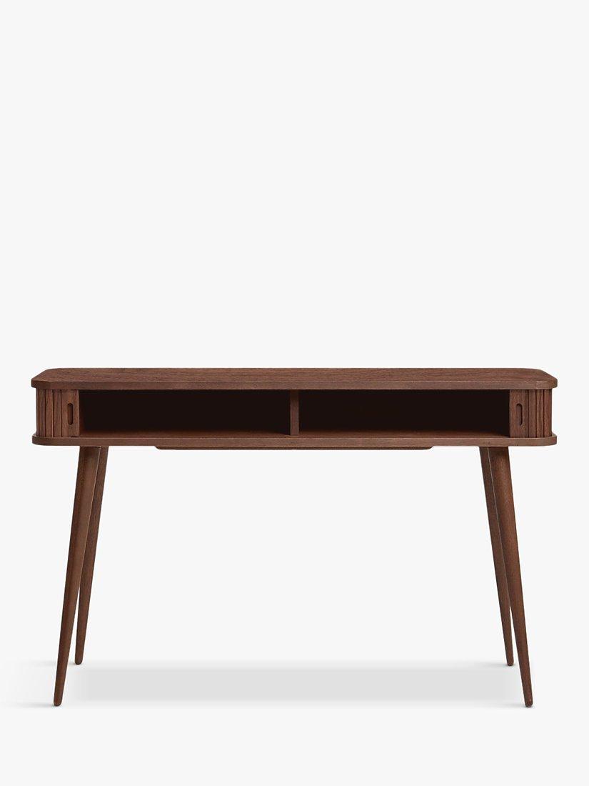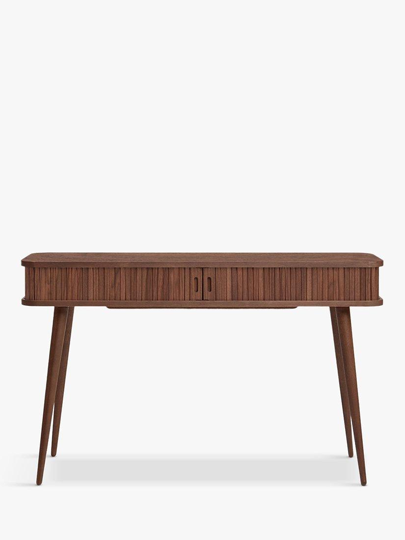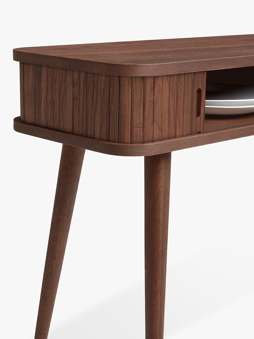 Make the most of your space and pick clever storage options for your modern home. Ideal for hallways or living rooms, our Grayson console table is designed with a slatted sliding door that opens to reveal useful internal storage space. Easy to assemble, we've made it from a combination of high-quality woods that are coated in a sleek veneer for durability. Turned legs give the Scandi-inspired design a retro edge, giving this functional table an eye-catching and stylish finish.